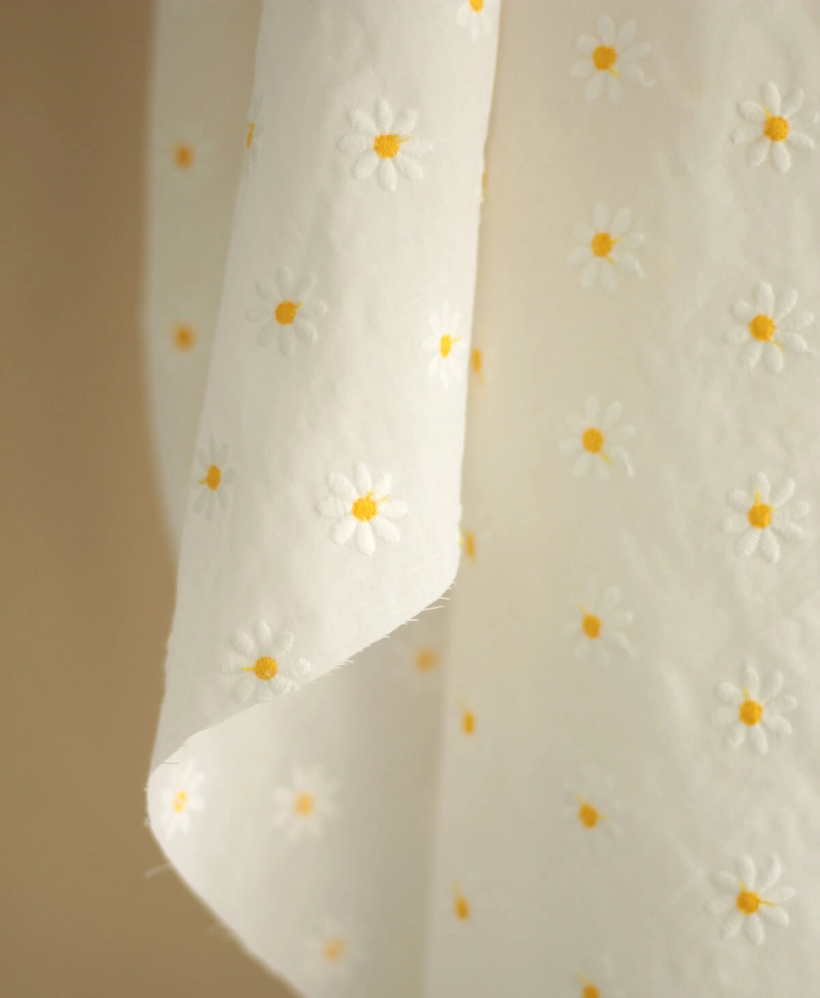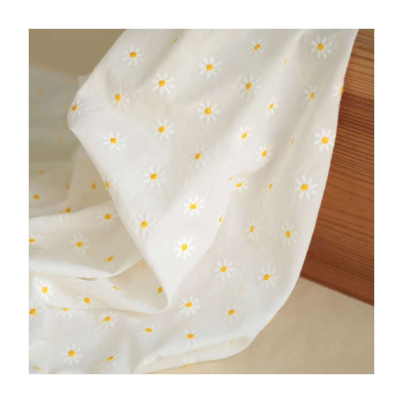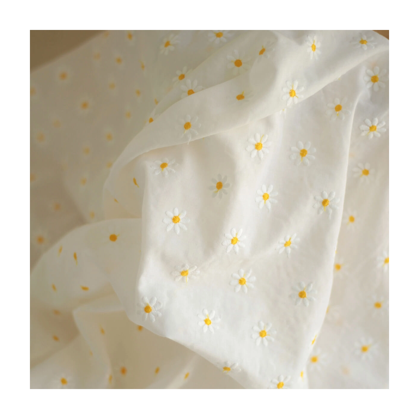 Batiste de coton blanc broderies petites pâquerettes