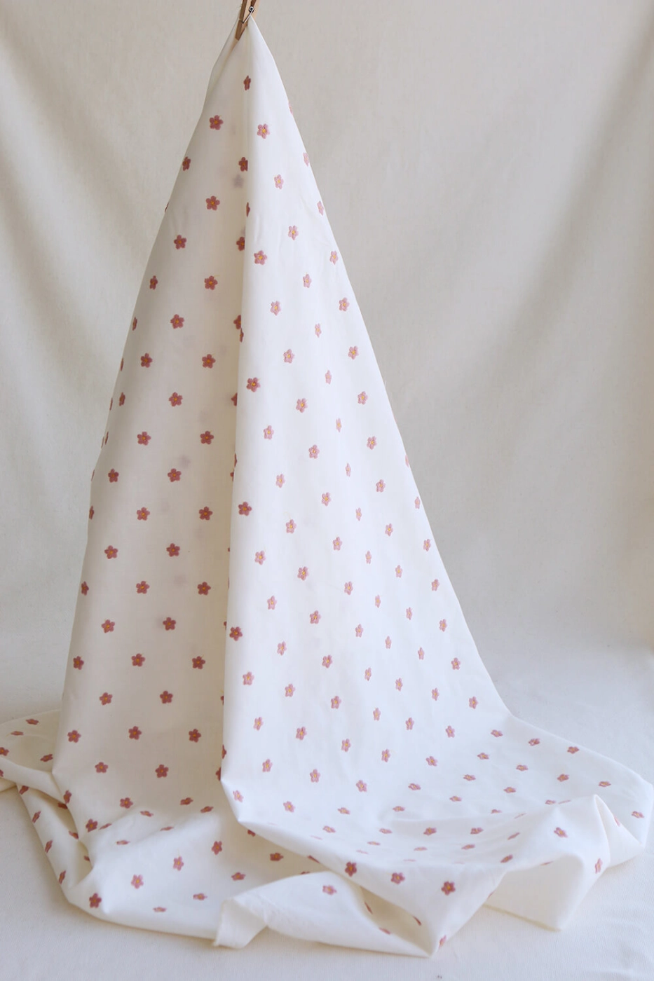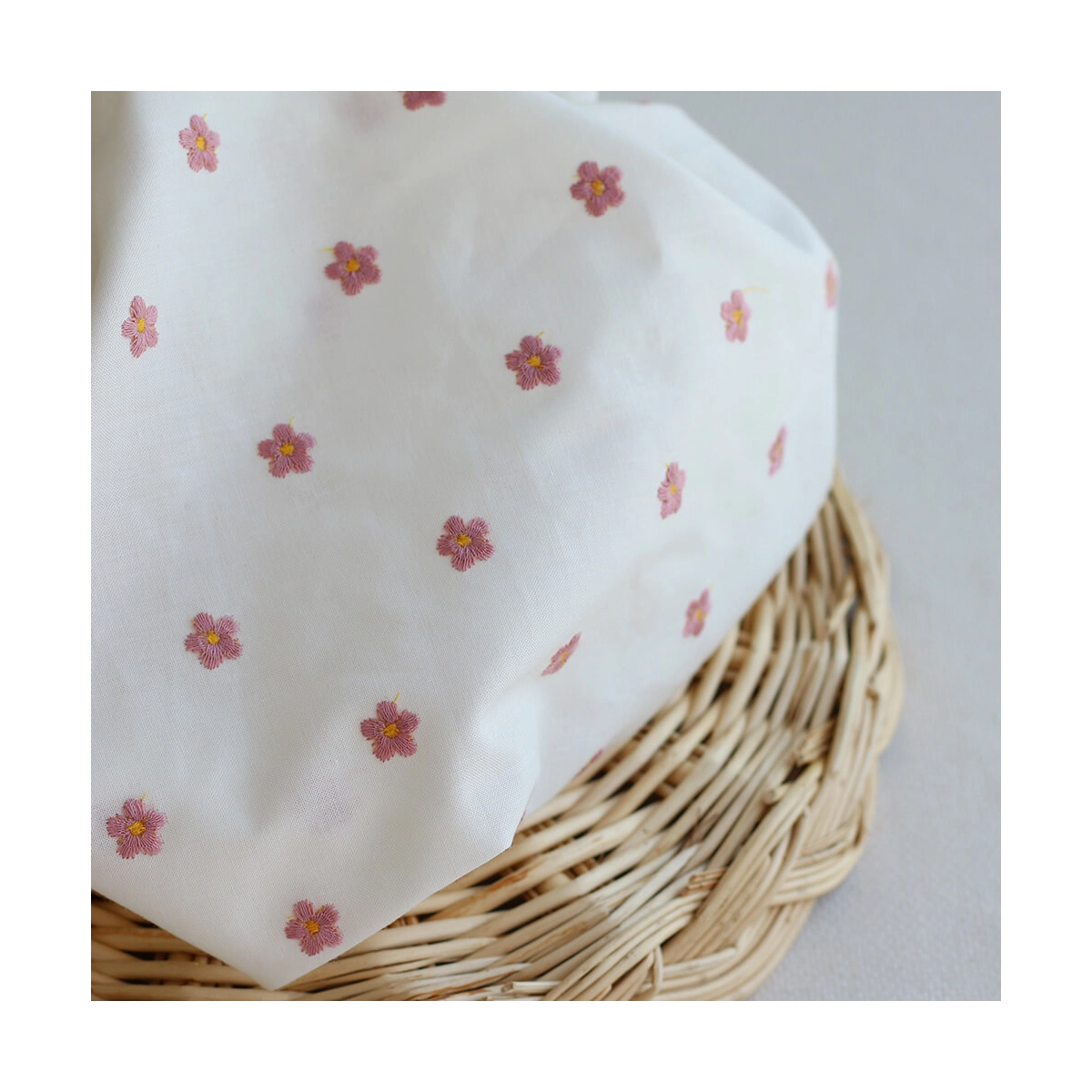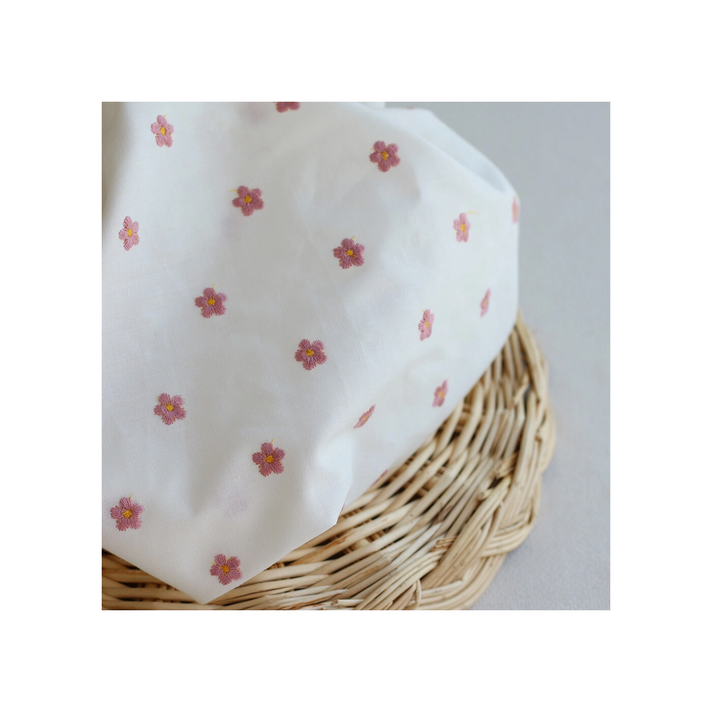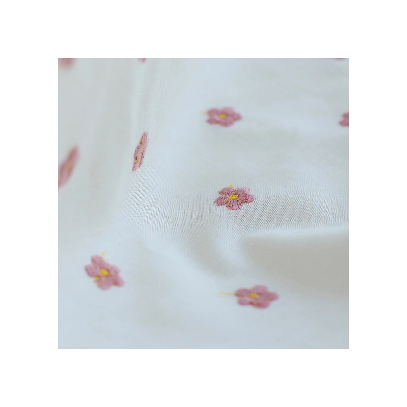 Elvina - Double gaze de coton brodée vichy mauve broderie fleur