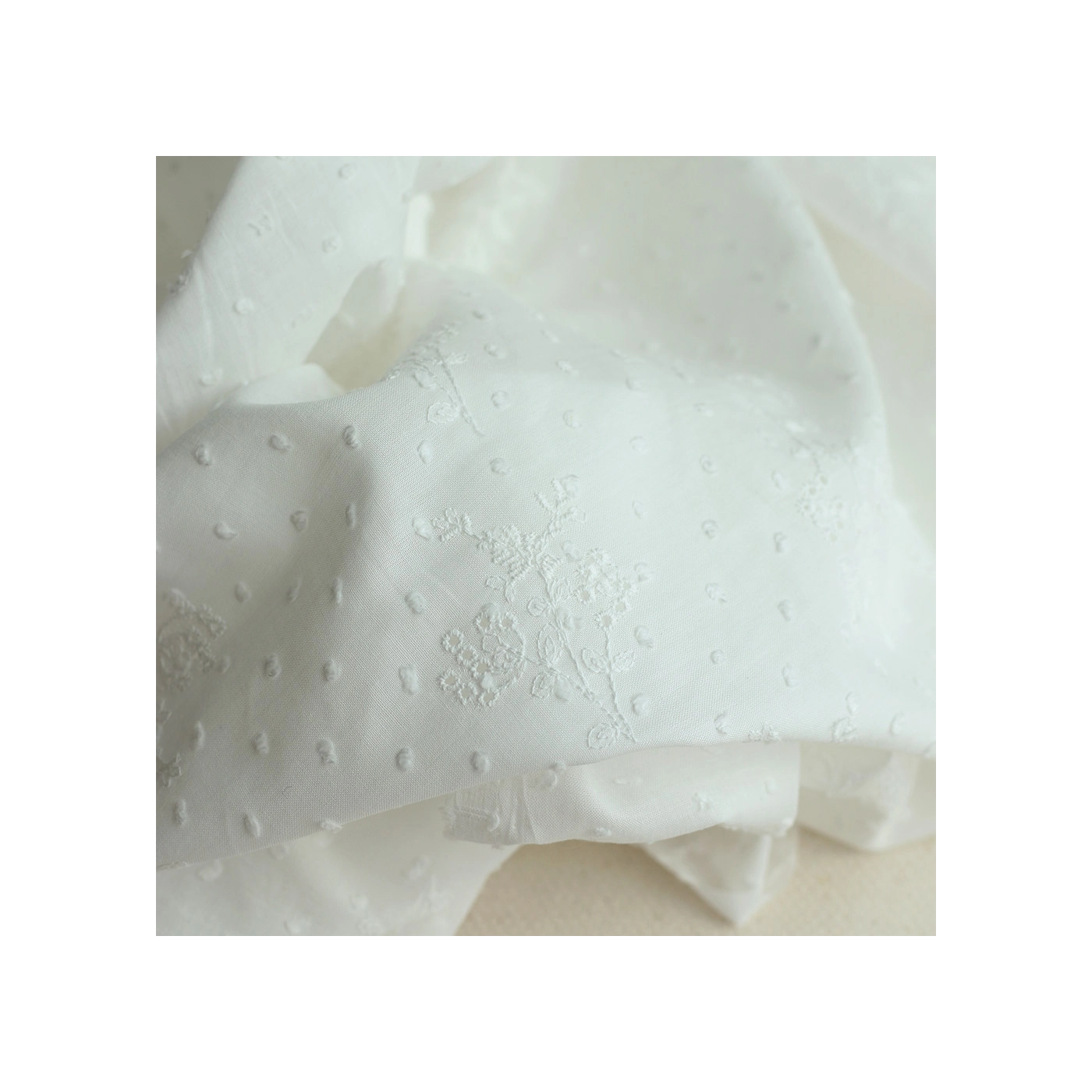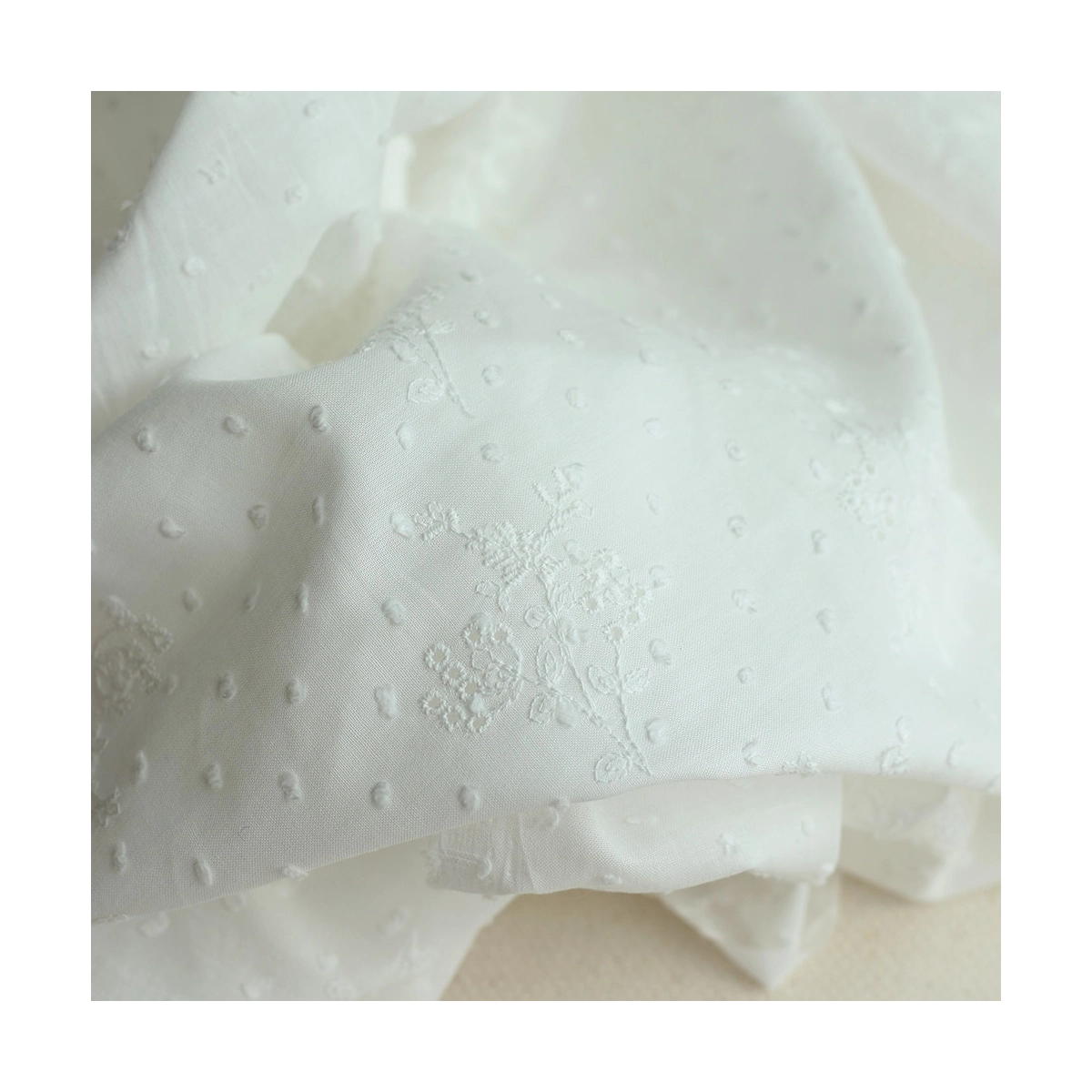 Broderie anglaise plumetis de coton coloris ivoire