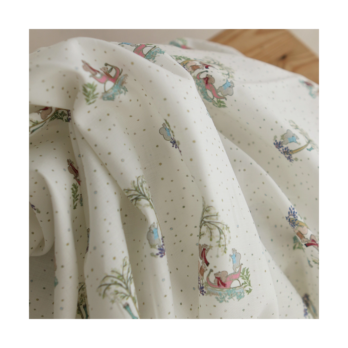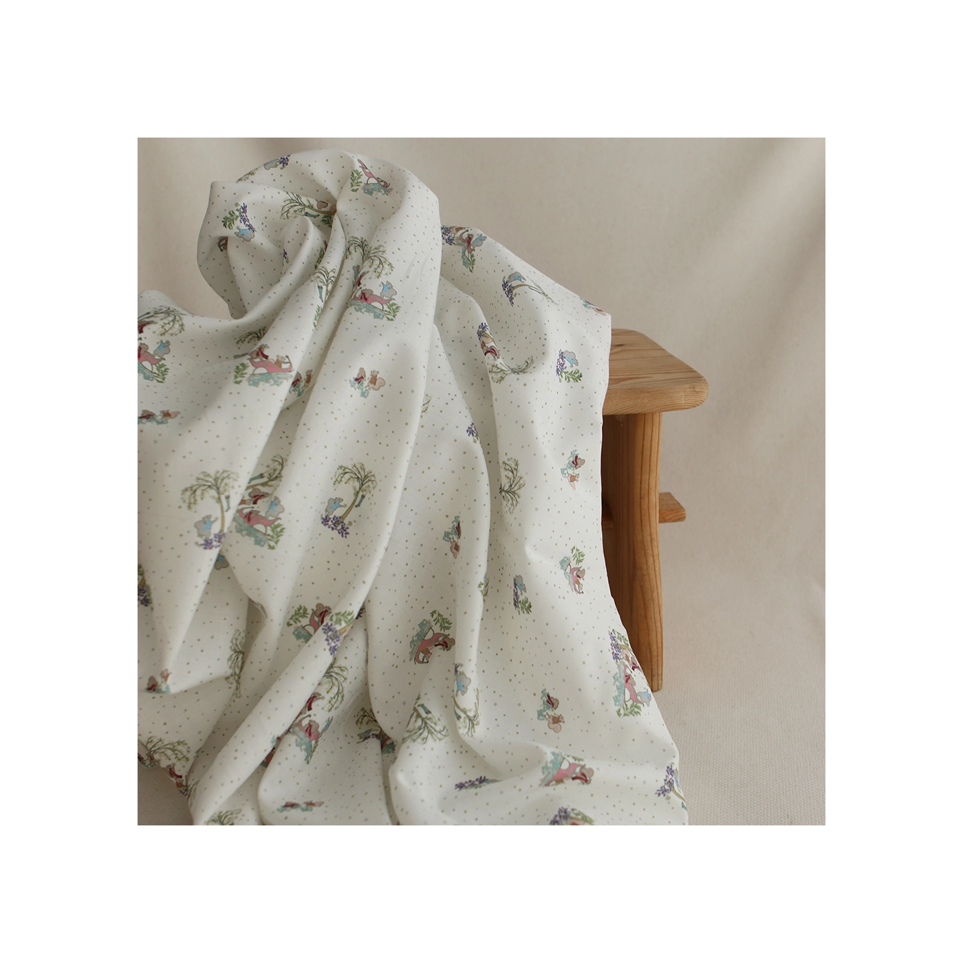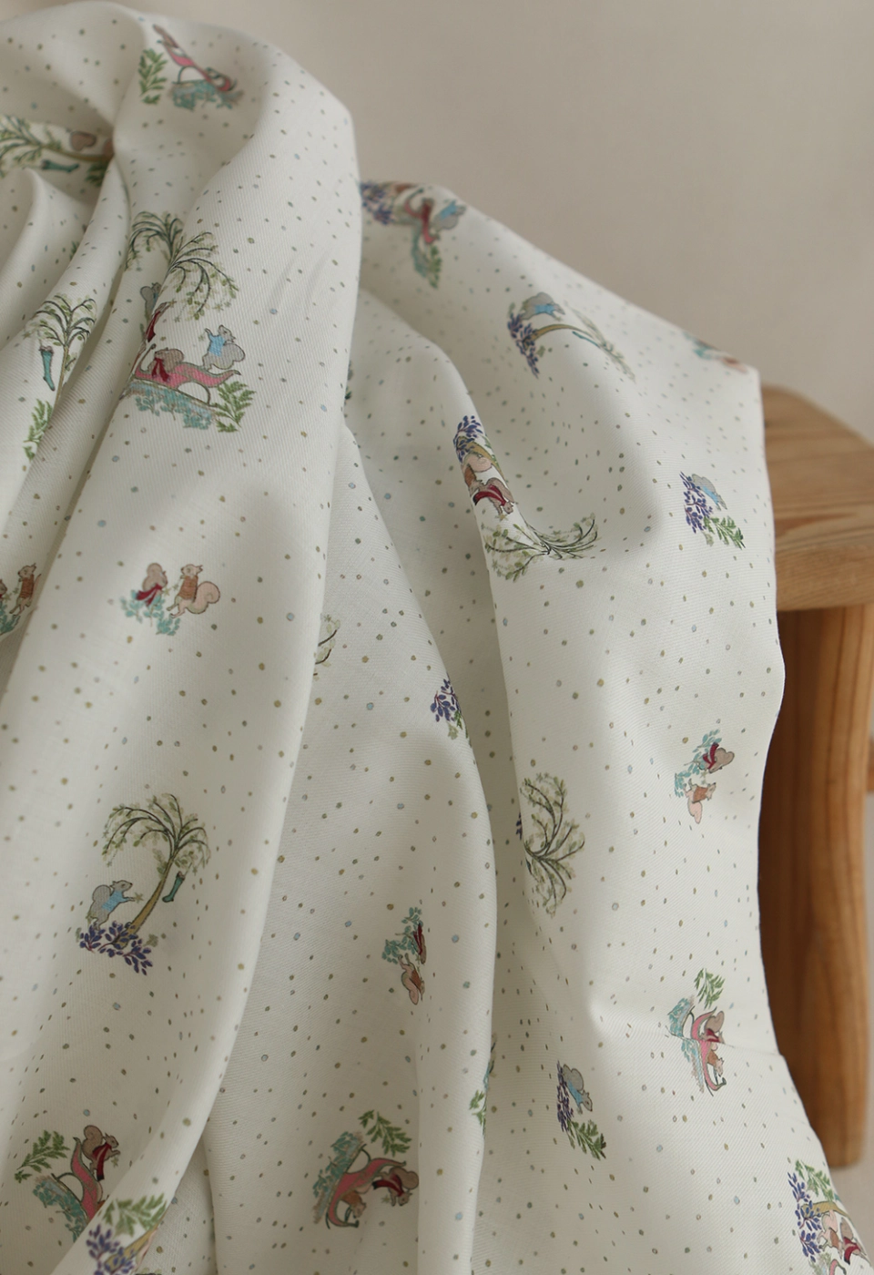 Panache - Tissu sergé de coton organique fin imprimé petits écureuils