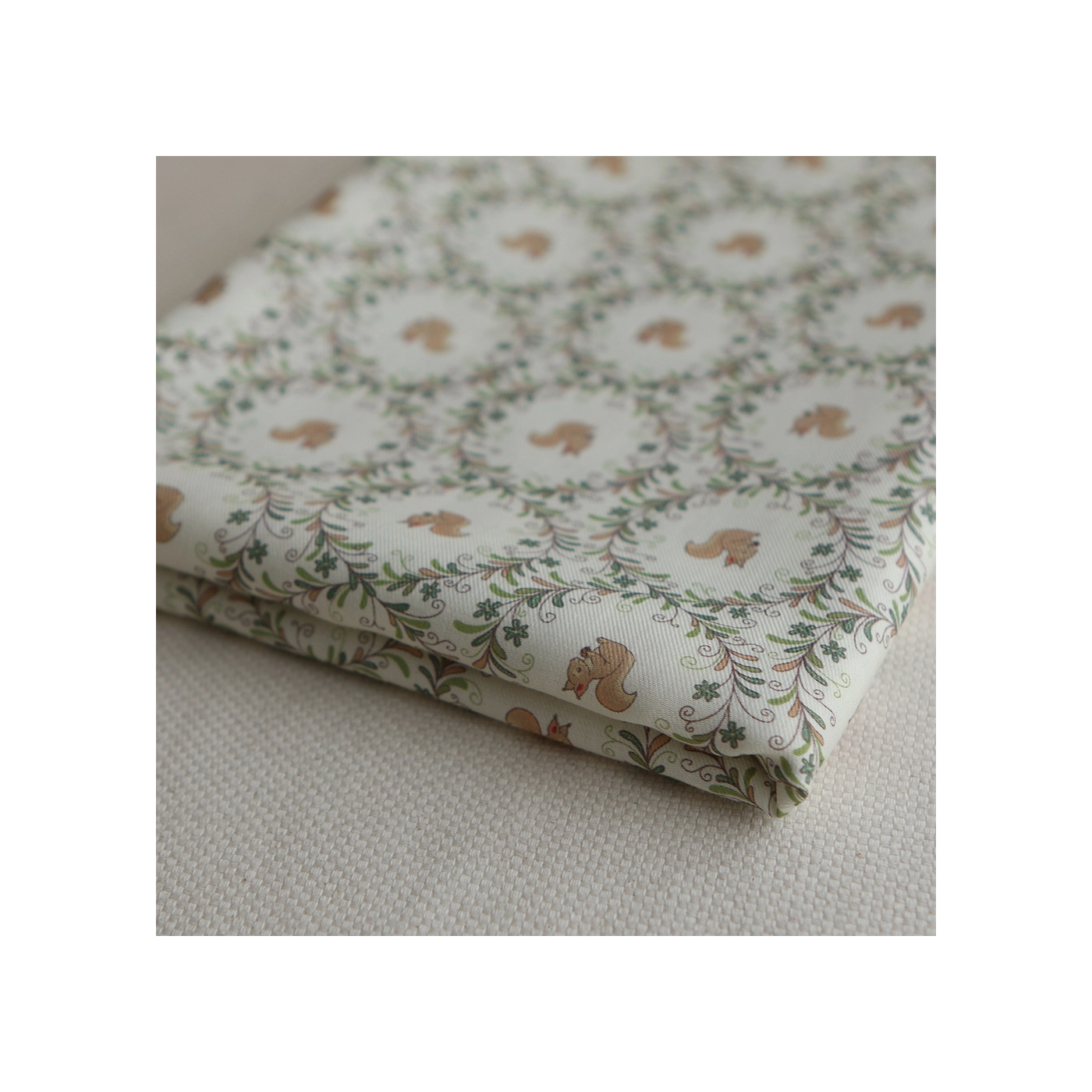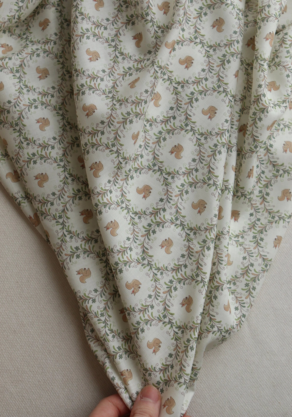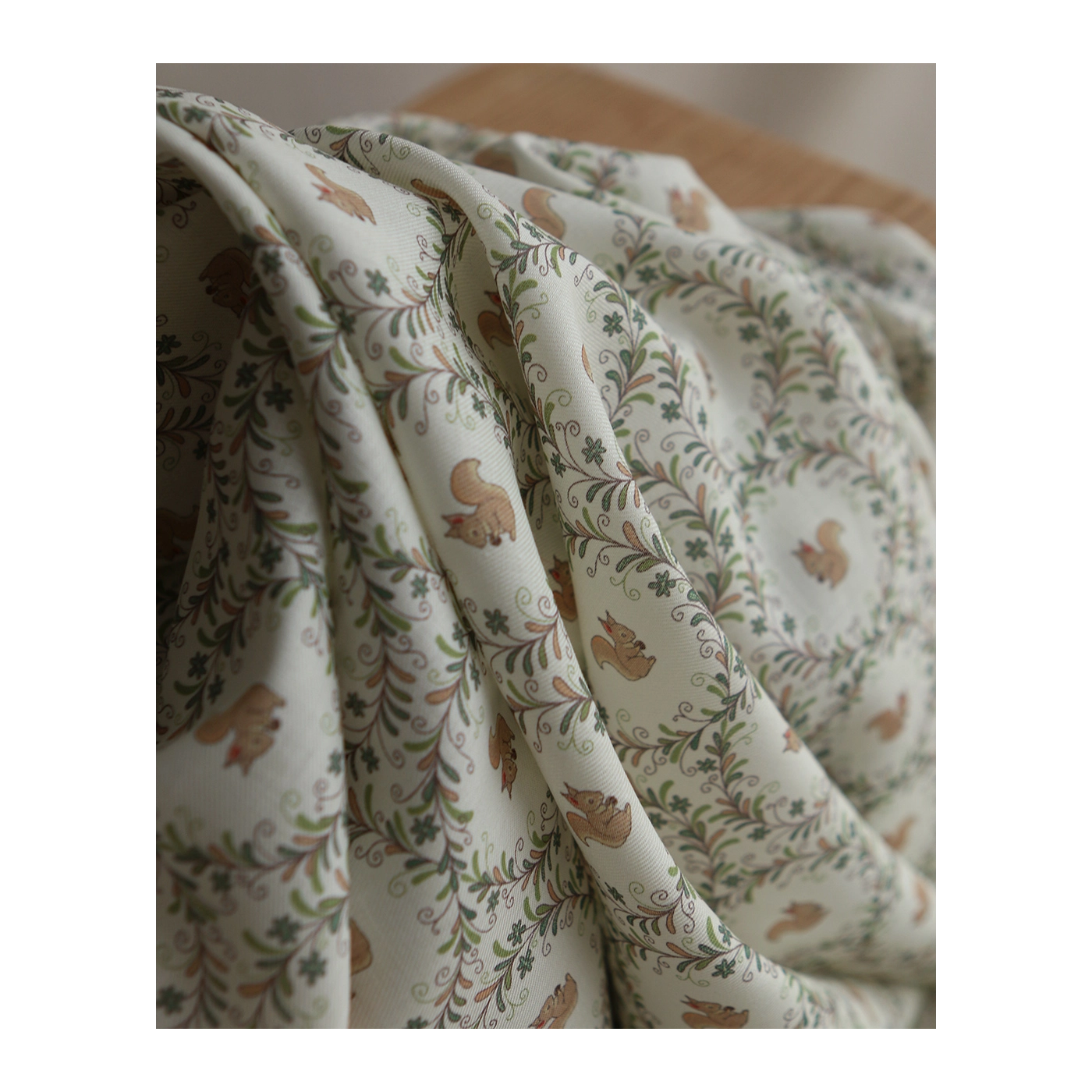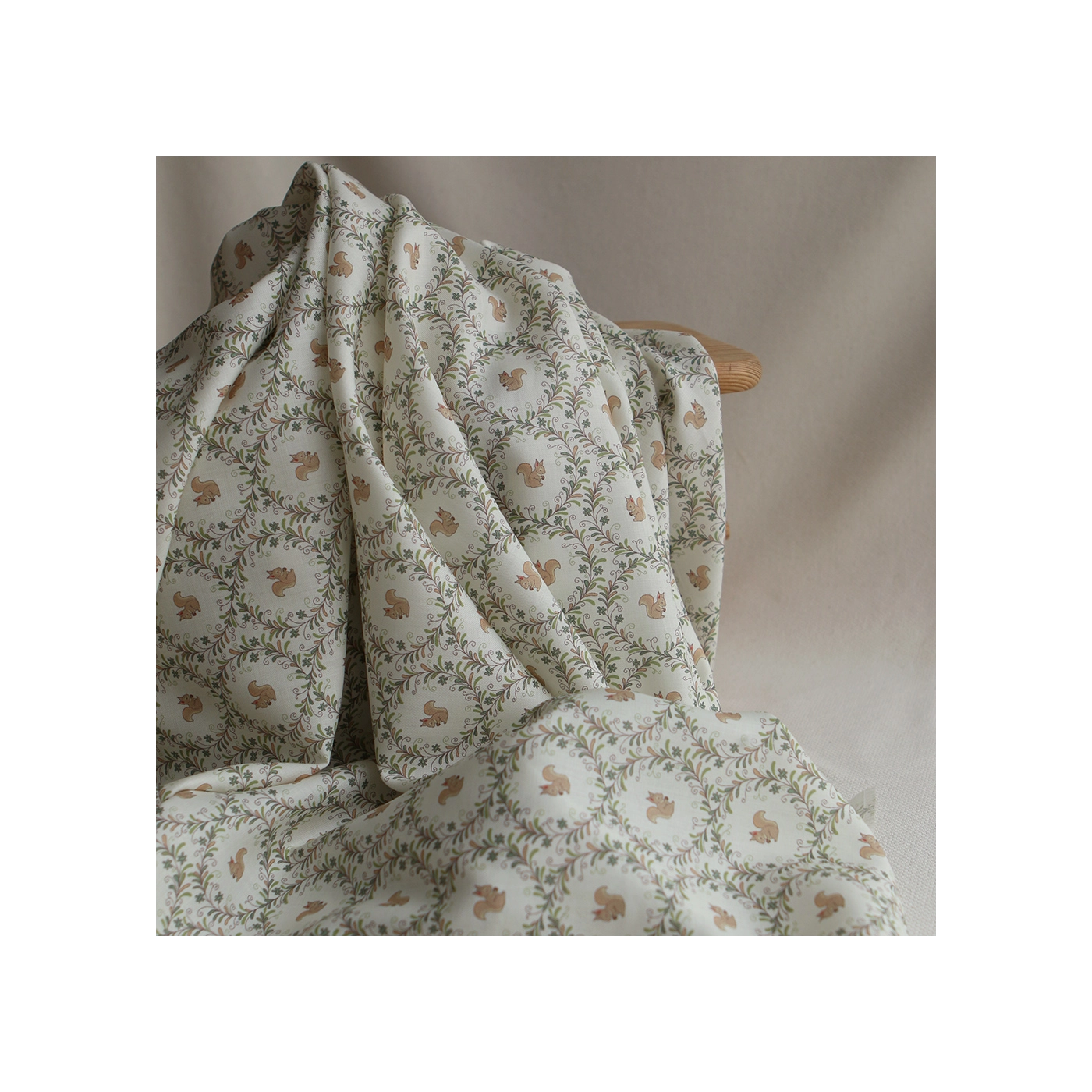 Nutkin - Tissu sergé de coton organique fin imprimé petits écureuils