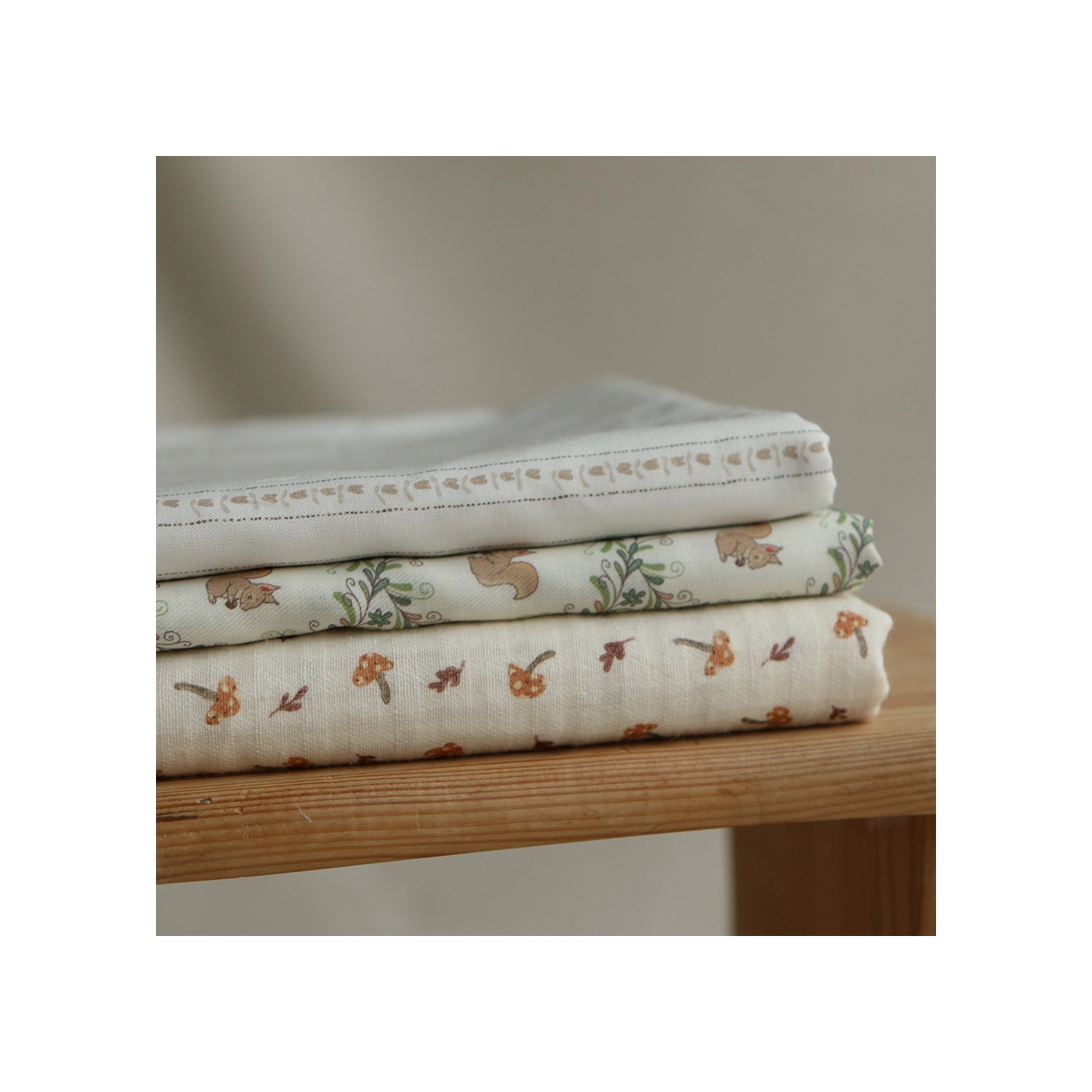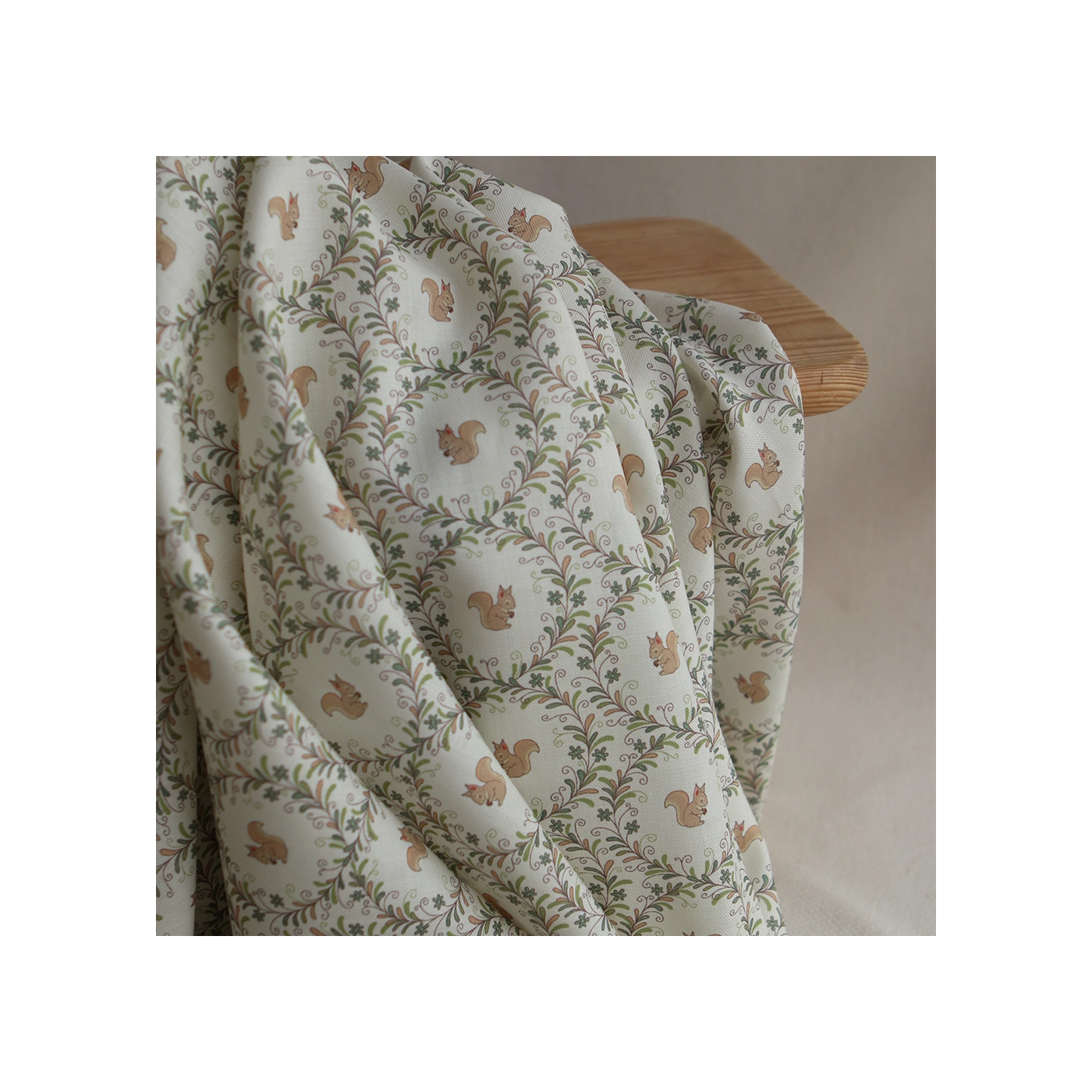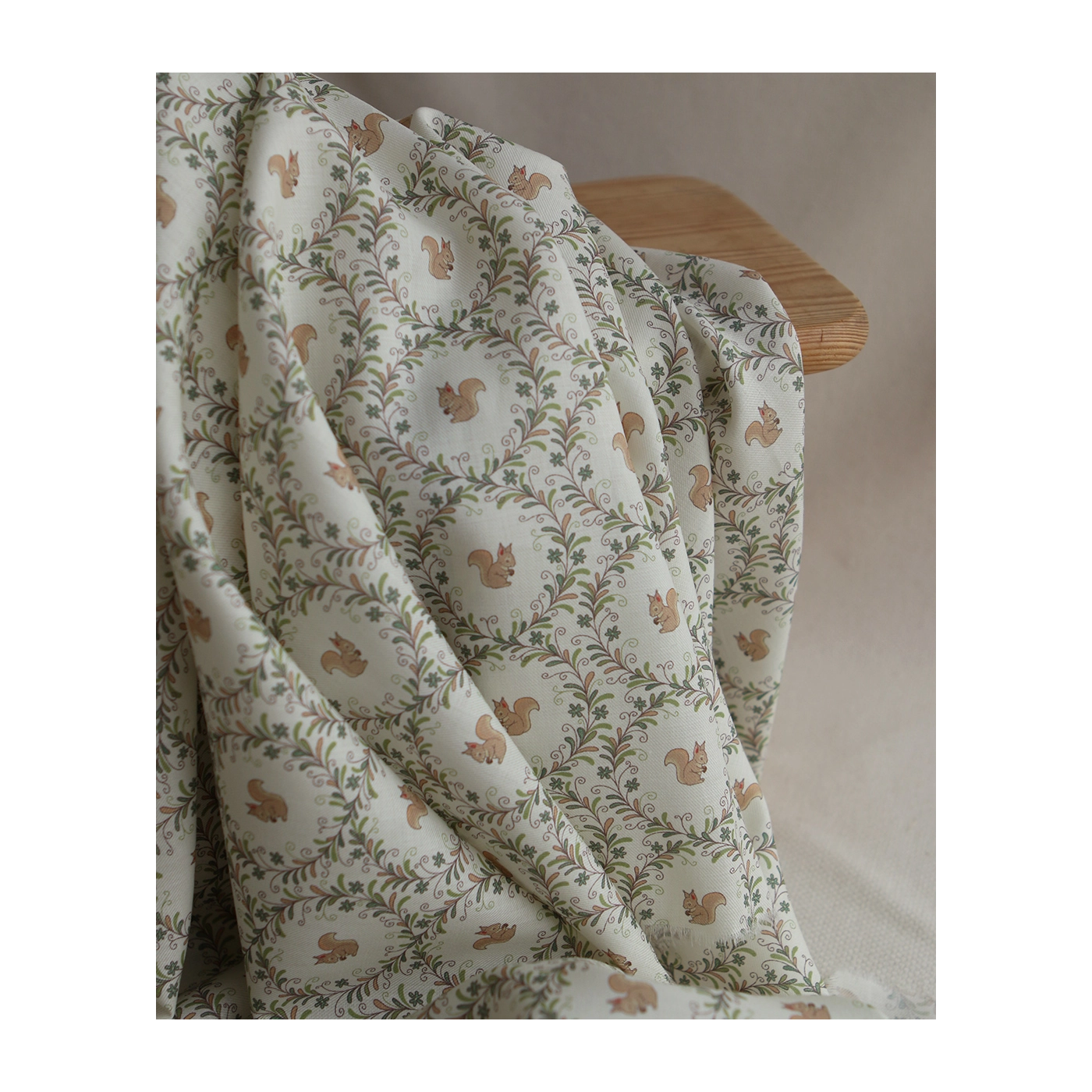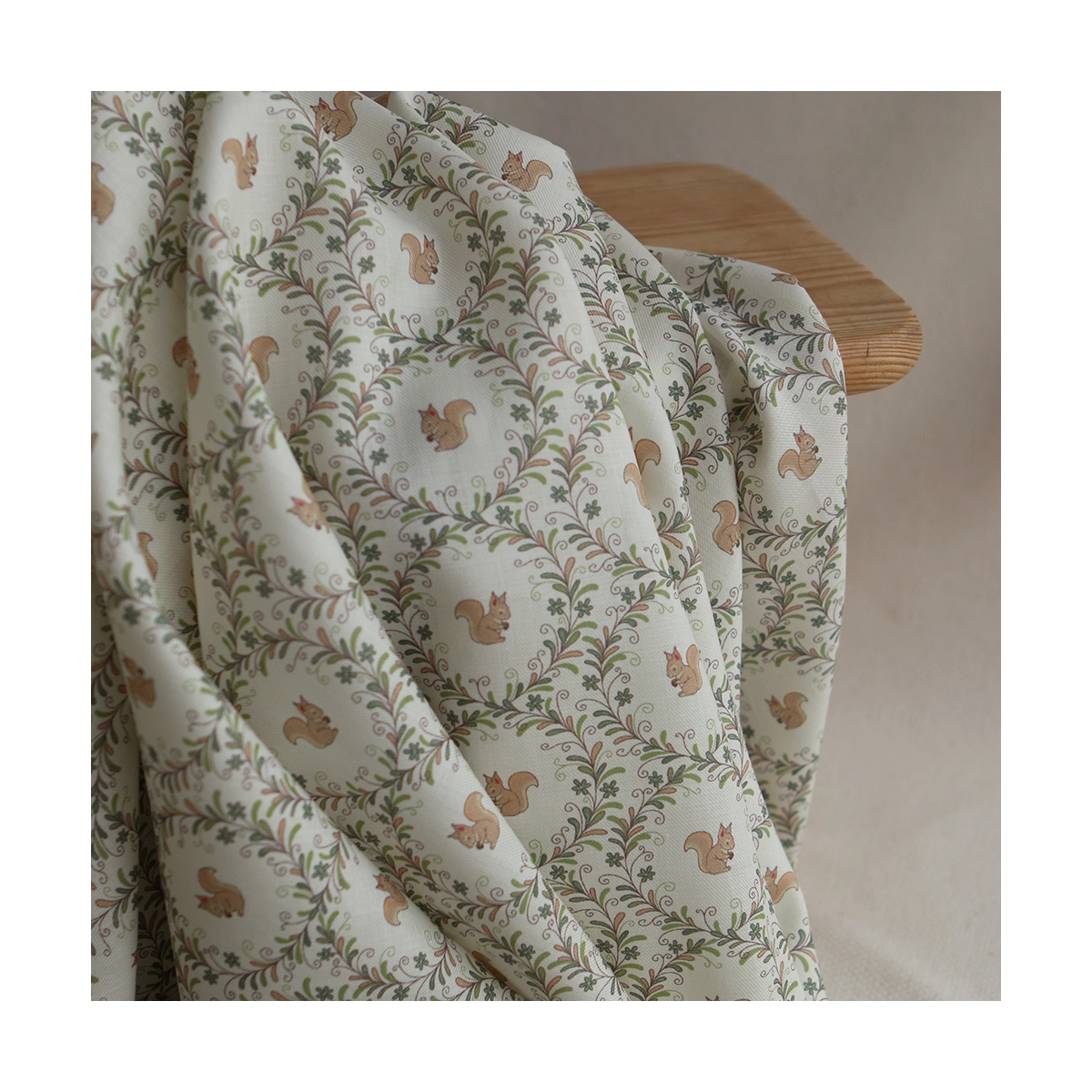 Nutkin - Tissu sergé de coton organique fin imprimé petits écureuils