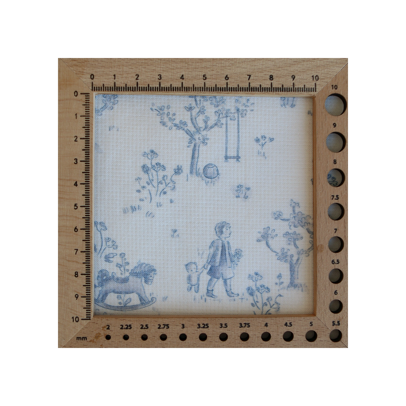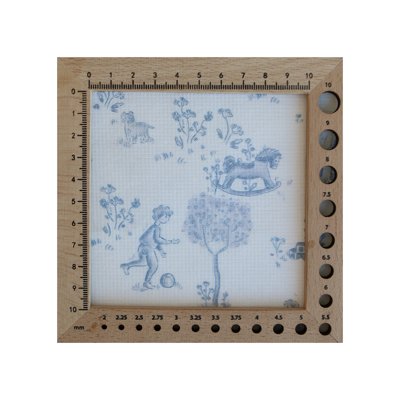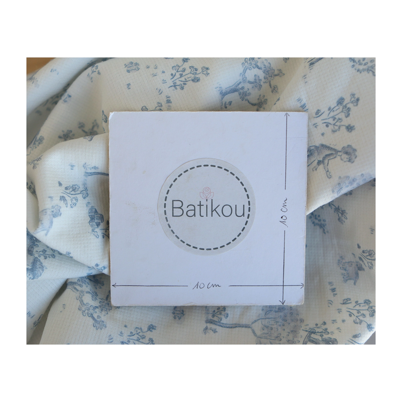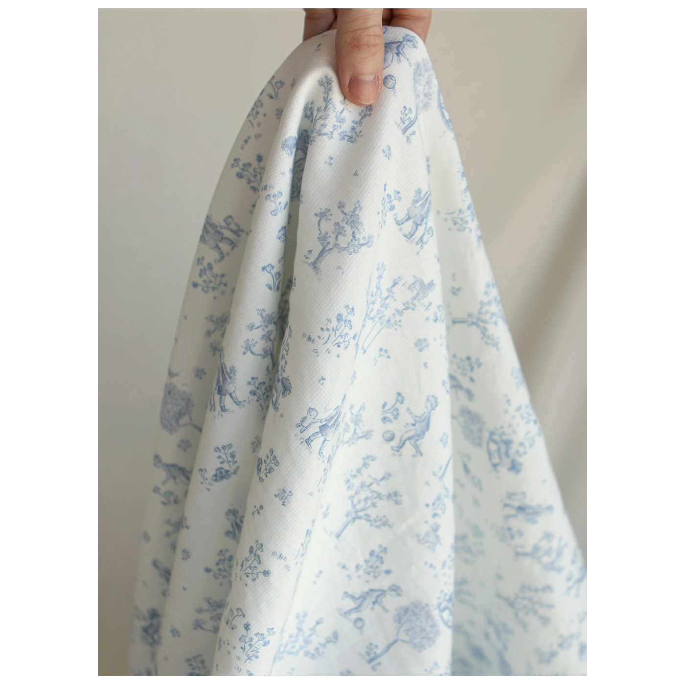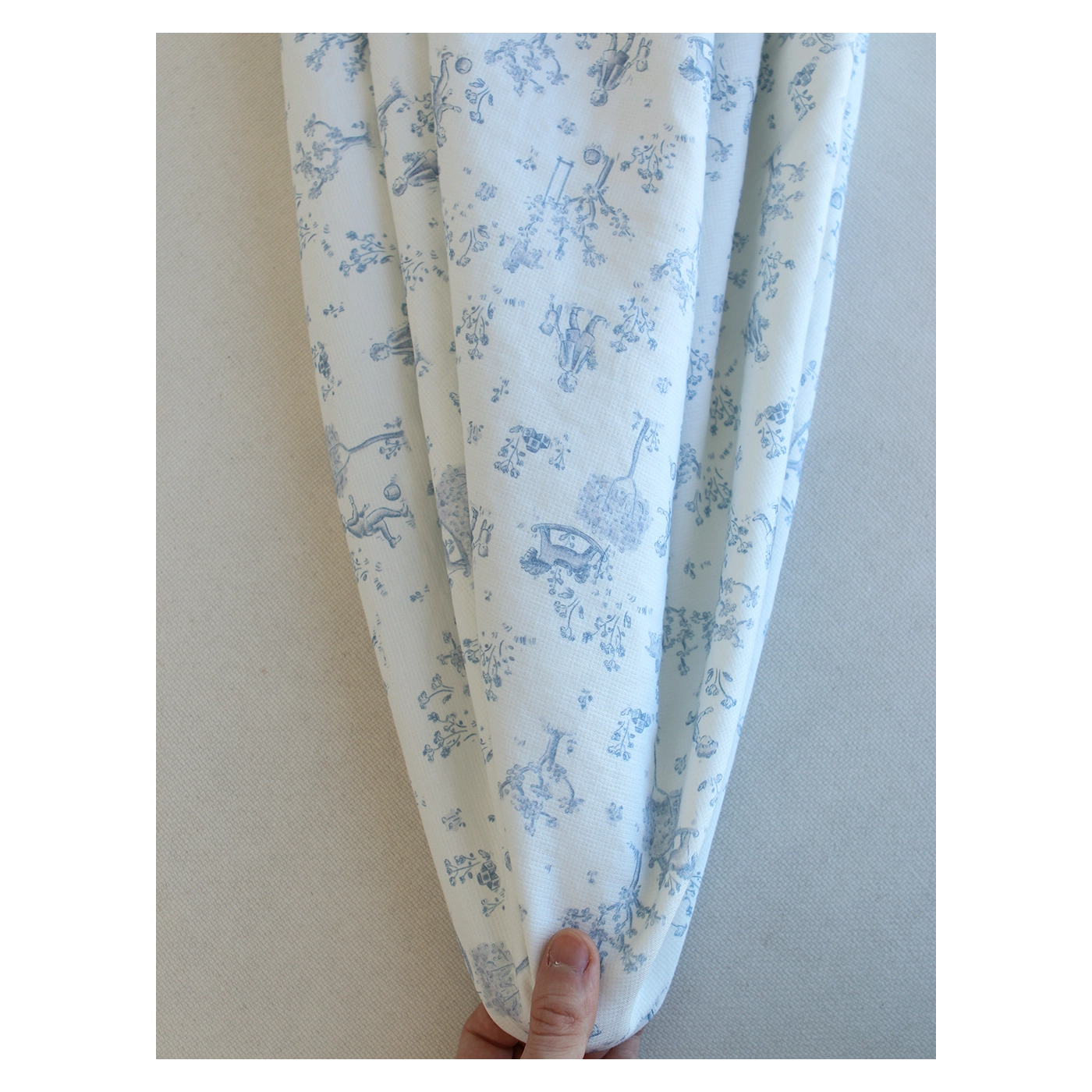 Coloris: fond blanc lait, motif toile de jouy enfantin ton bleu
