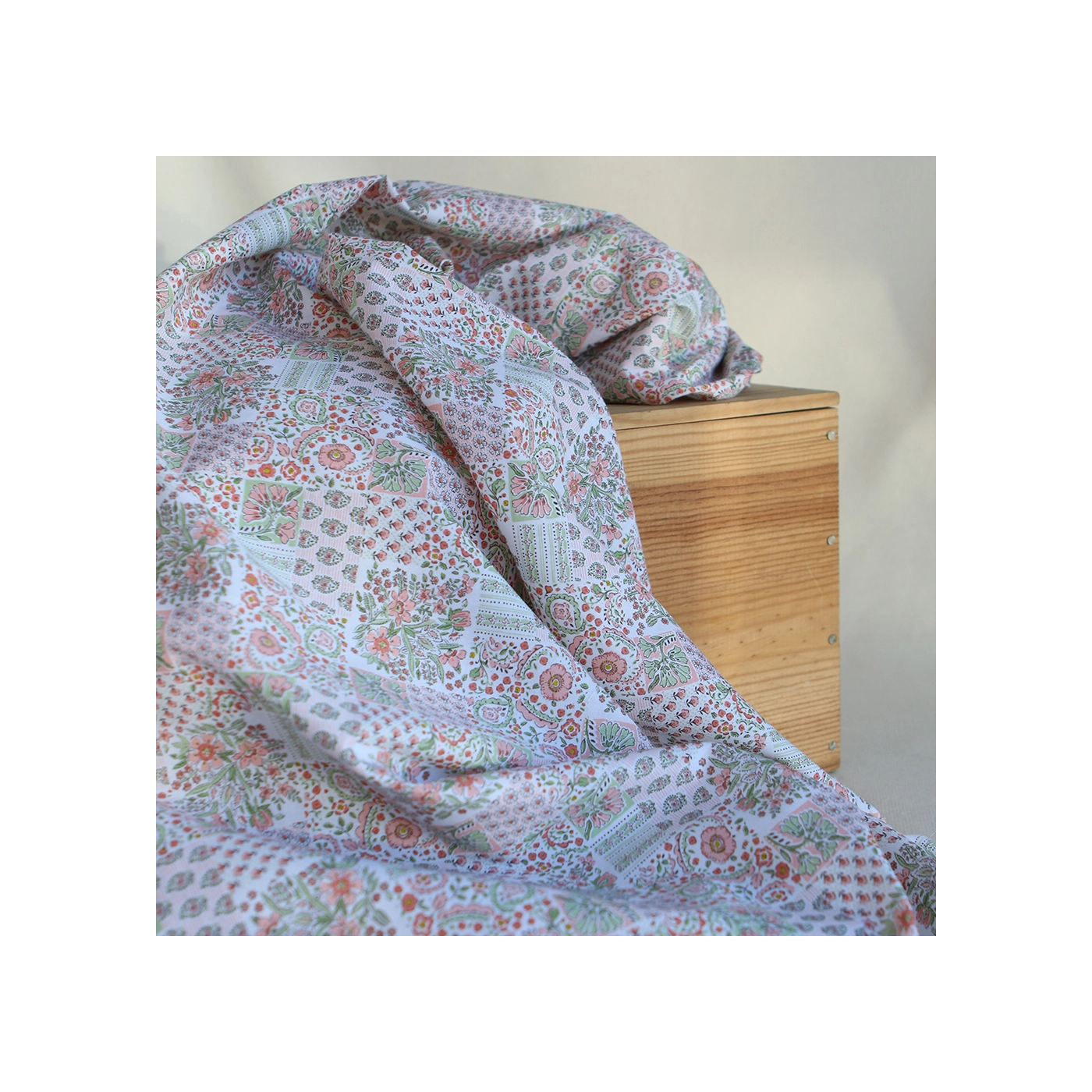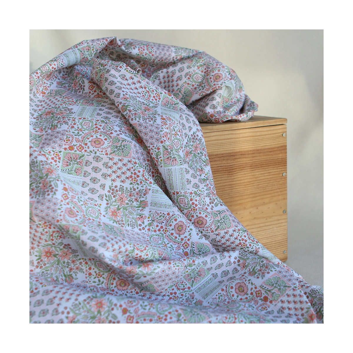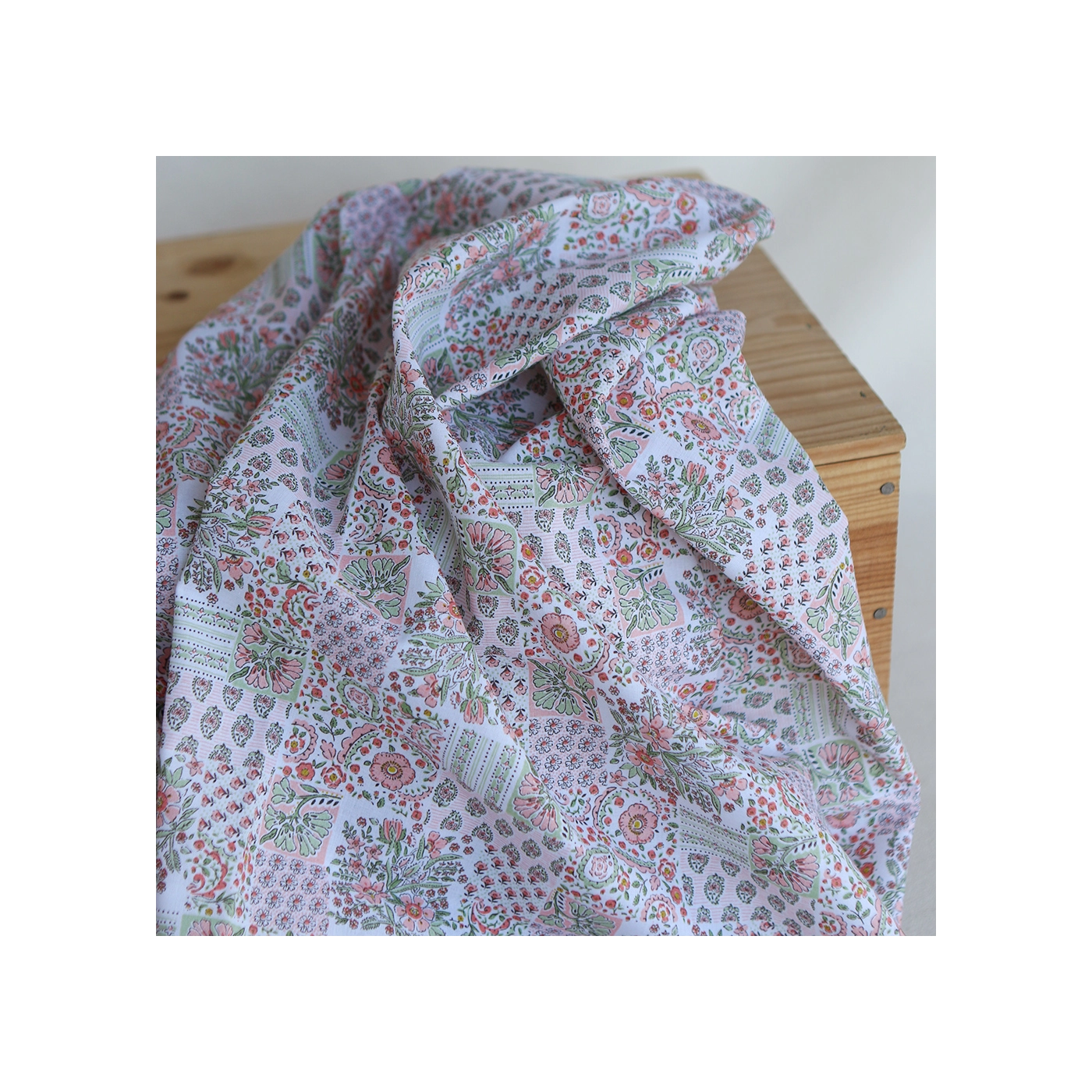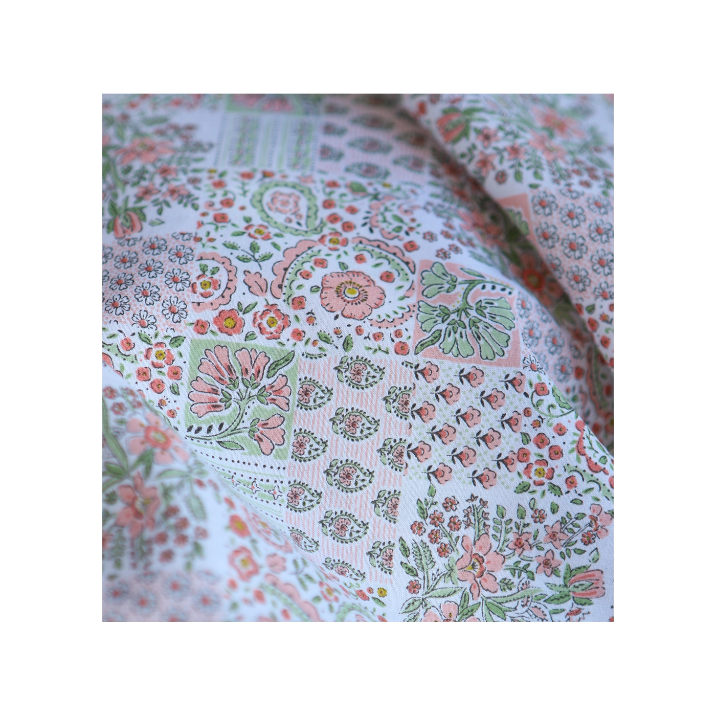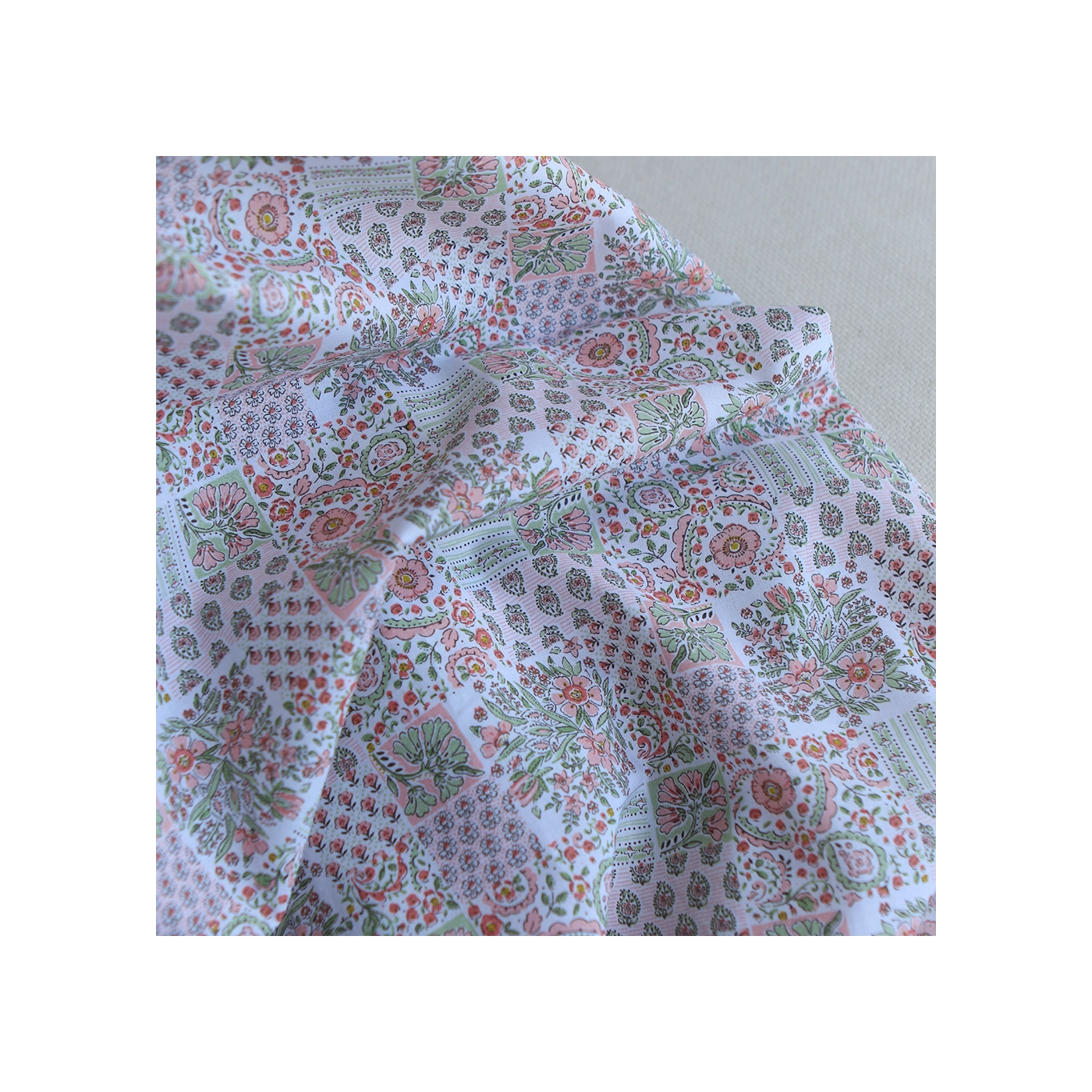 Isabelle - Batiste de coton à imprimé patchwork corail rosé