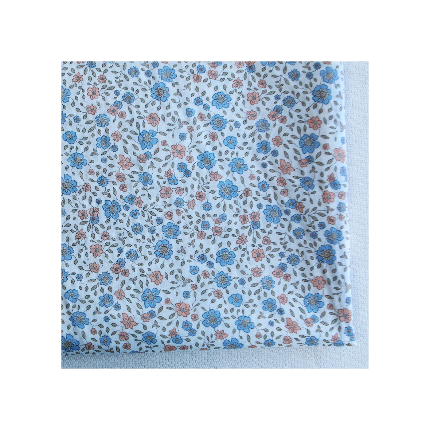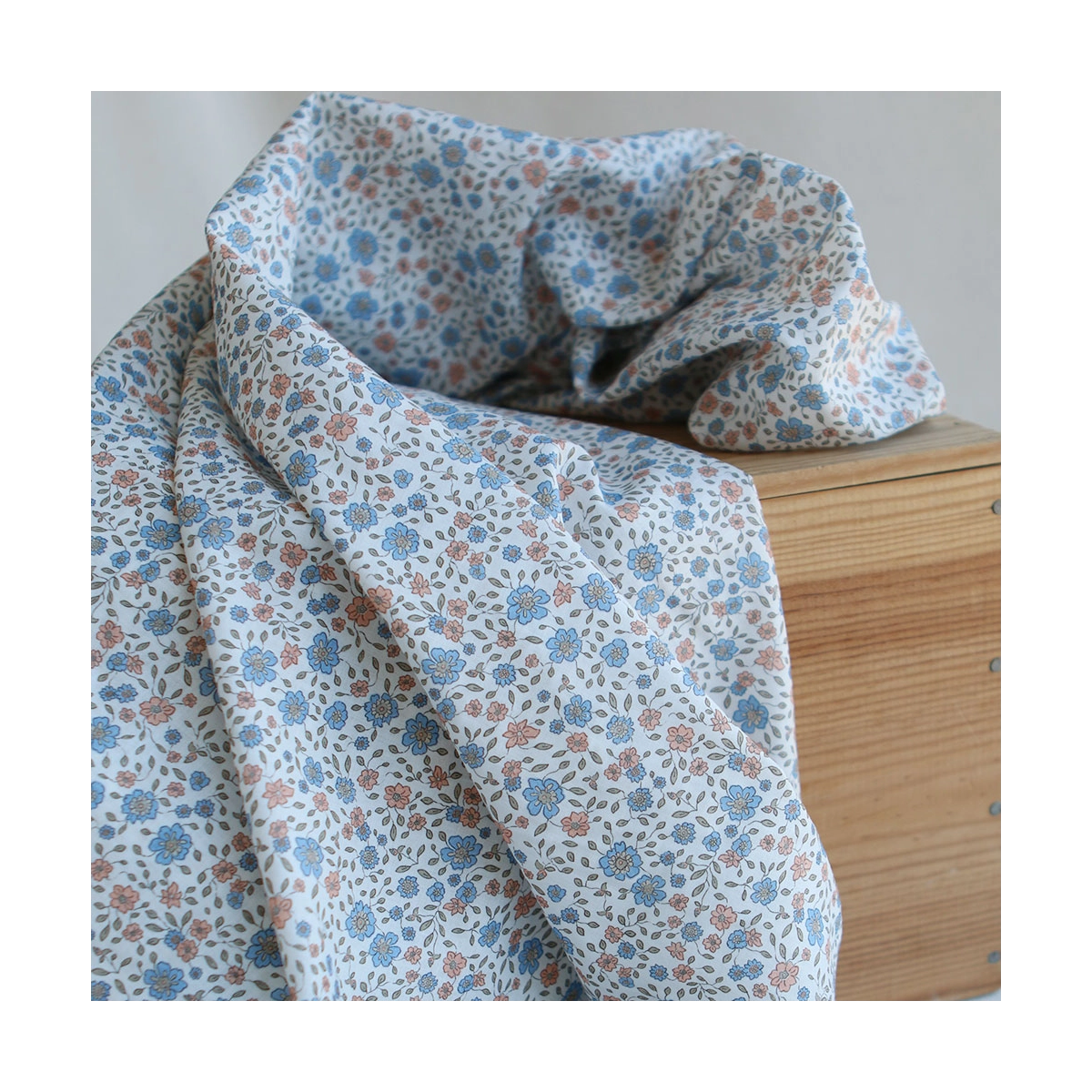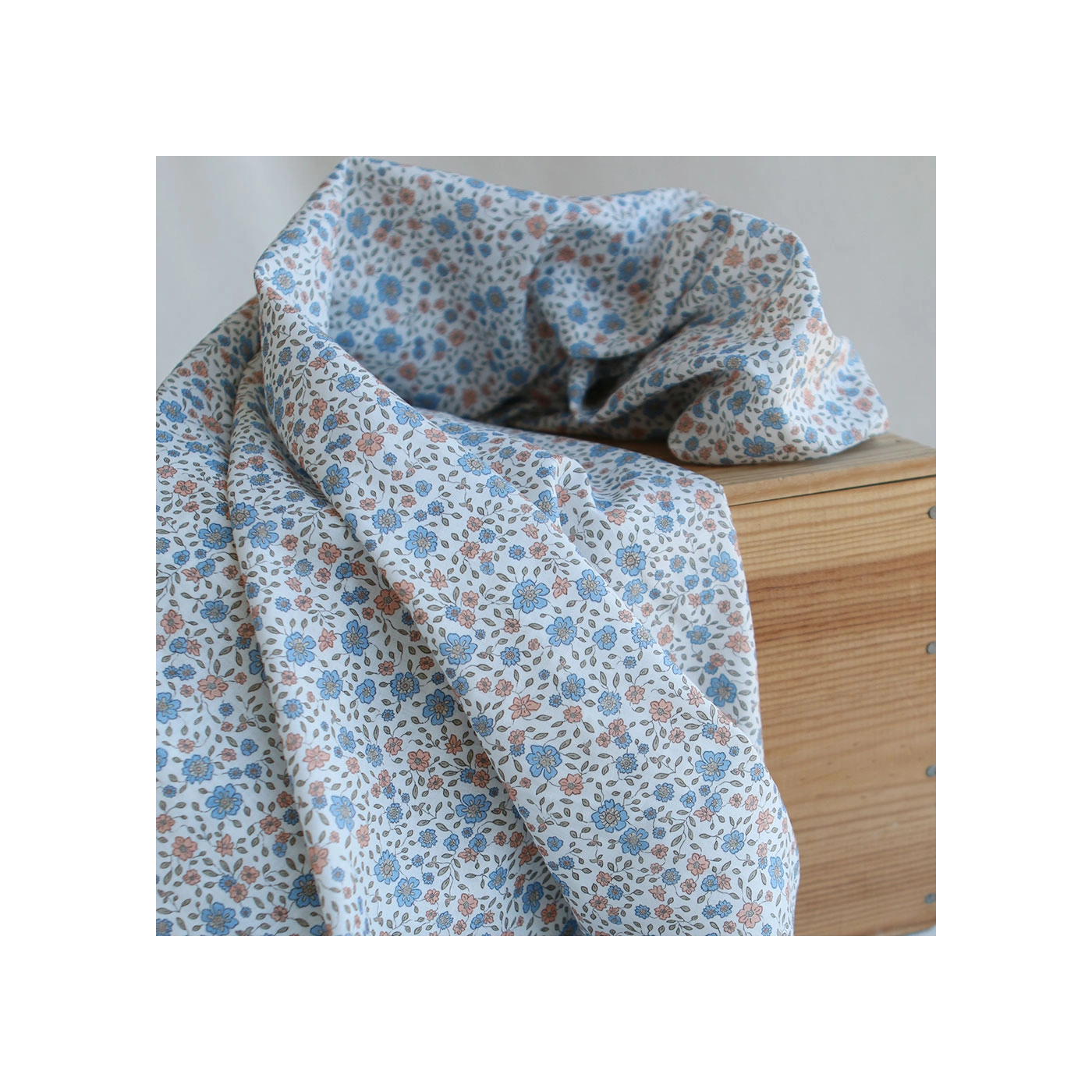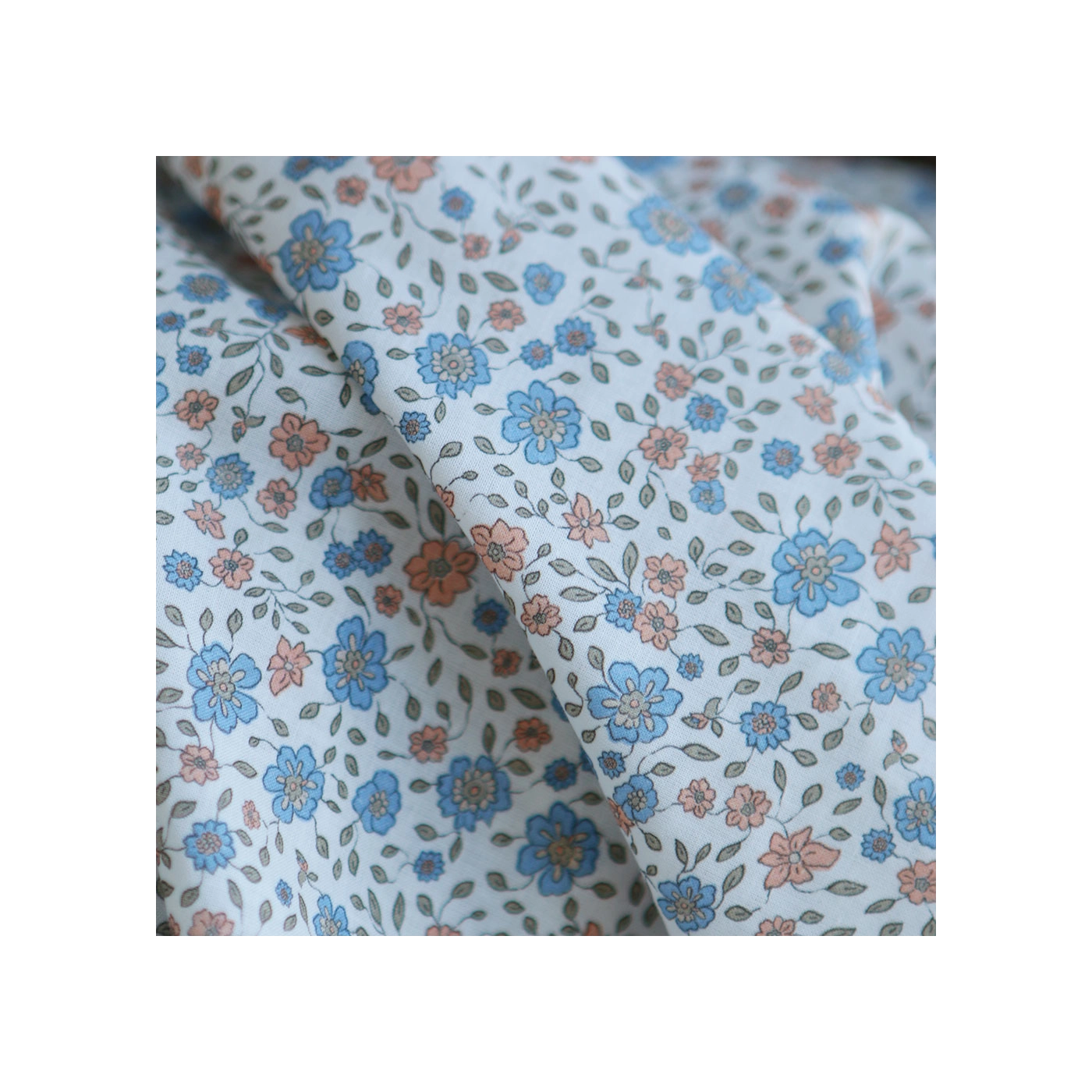 Lara - Batiste de coton SILKYNE à imprimé fleuri bleu