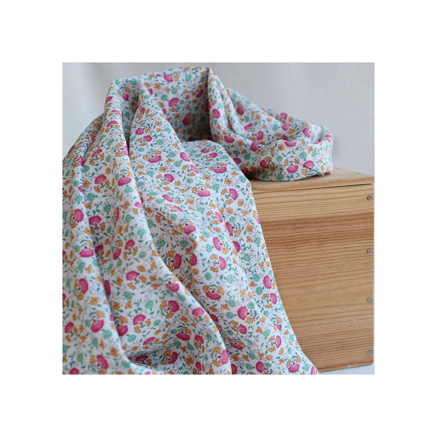 Valentine - Batiste de coton SILKYNE à imprimé fleuri rose orange