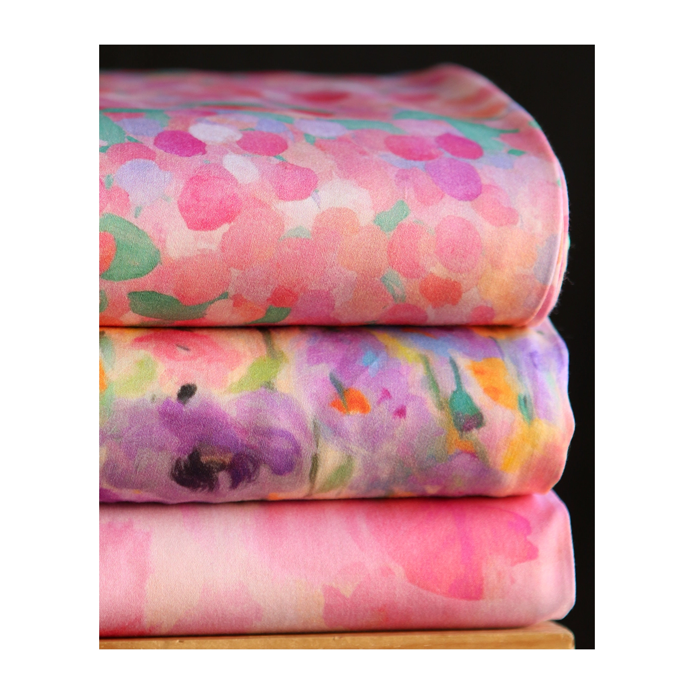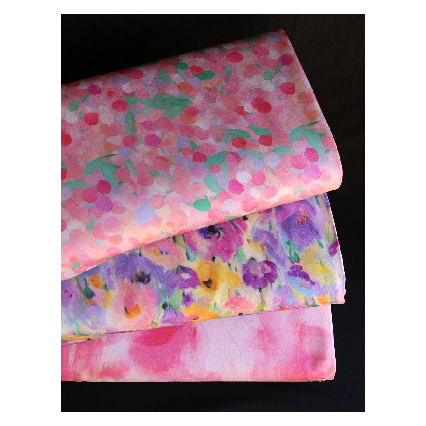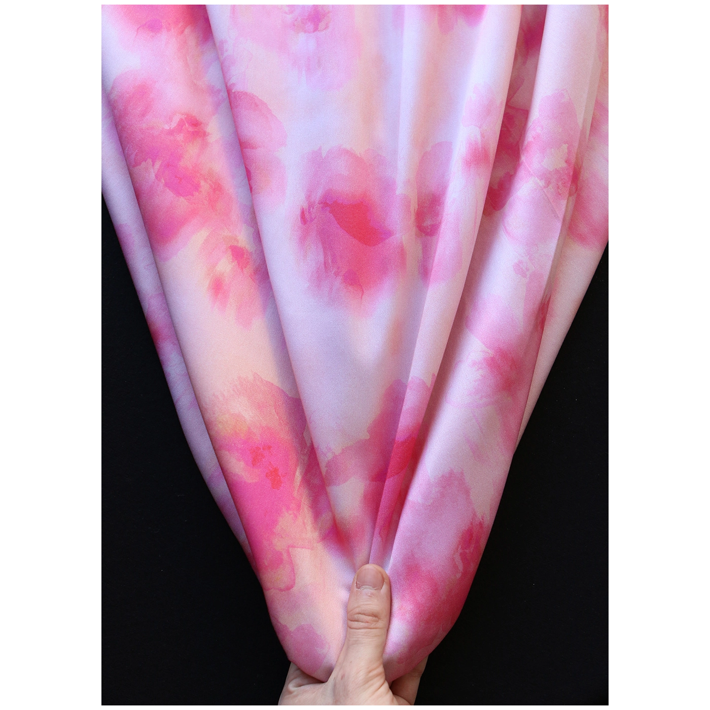 Loralie - Coton satiné à imprimé fleuri abstrait rose