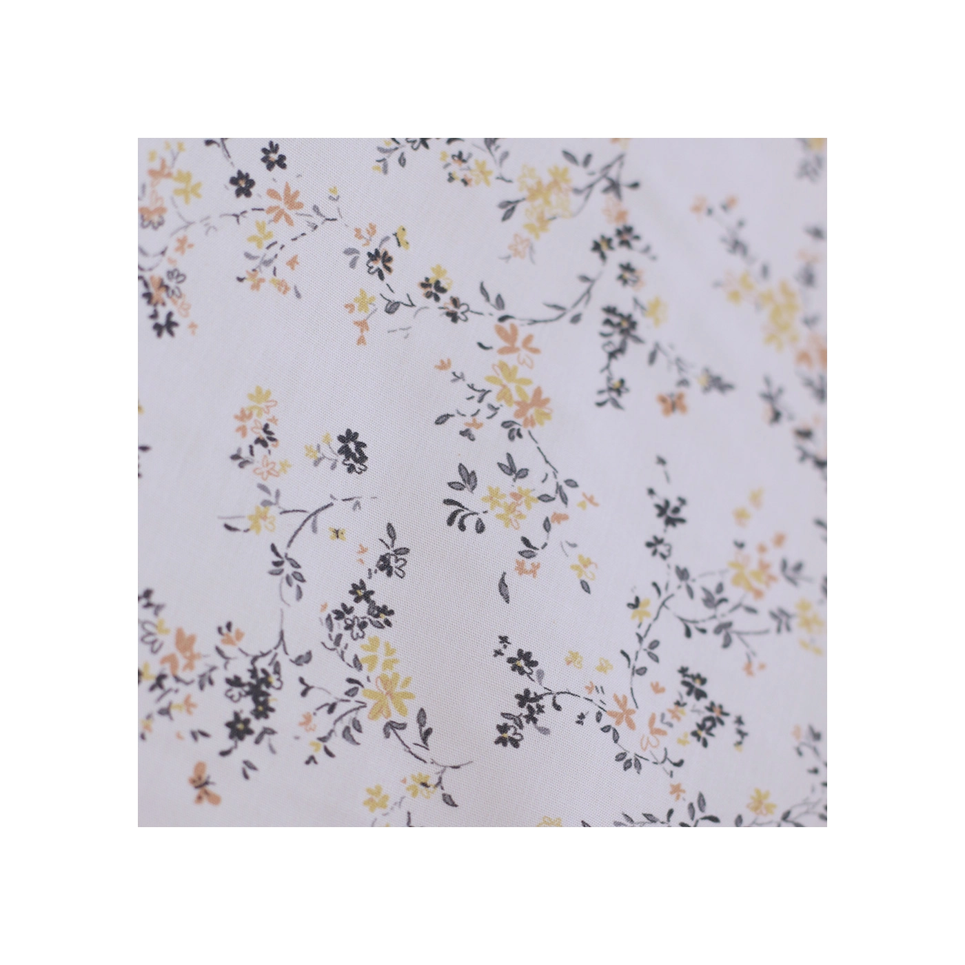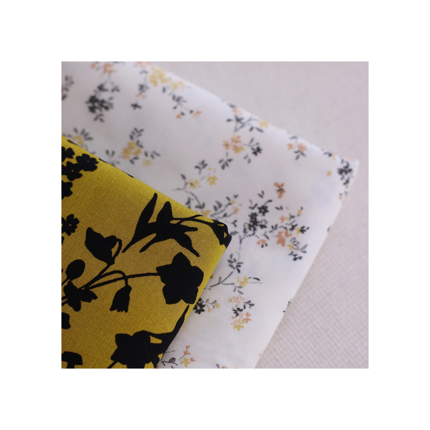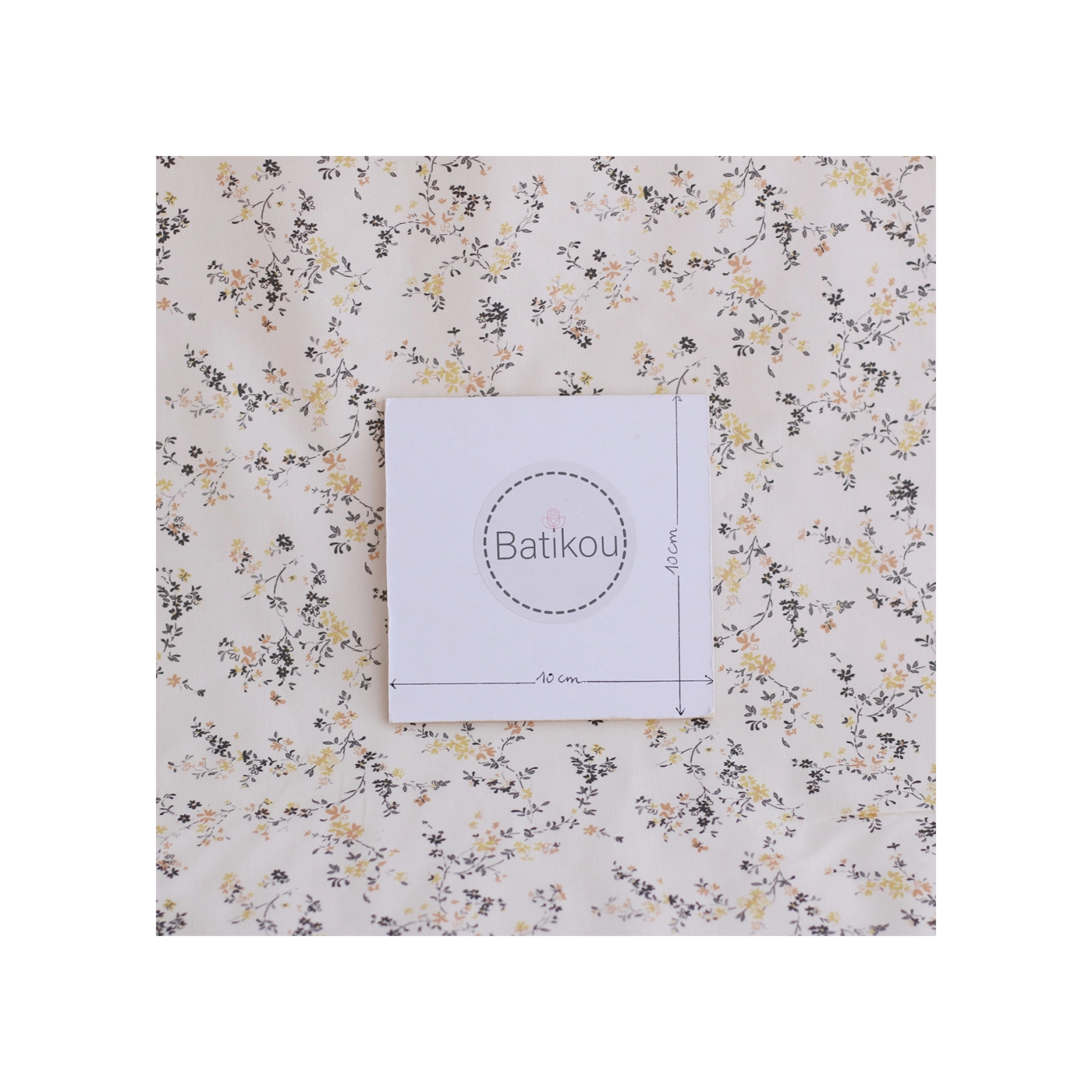Coloris fond blanc lait imprimé fleuri noir et moutarde