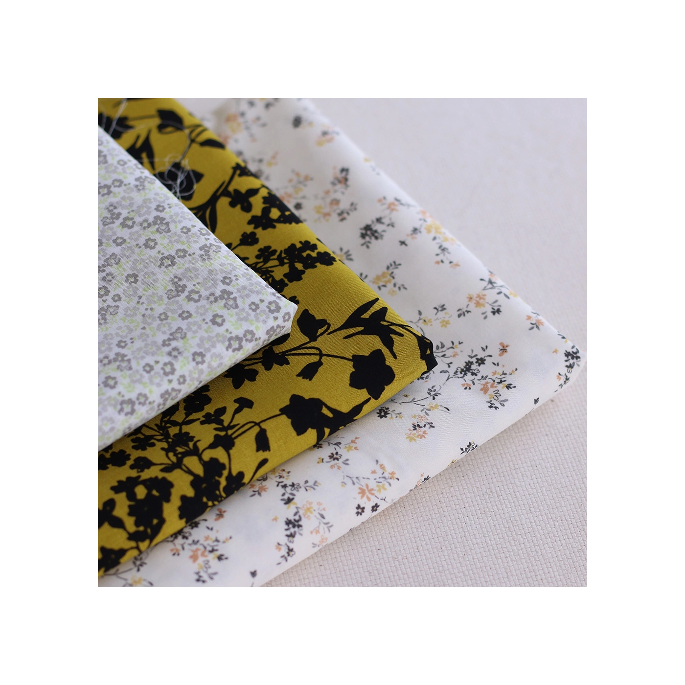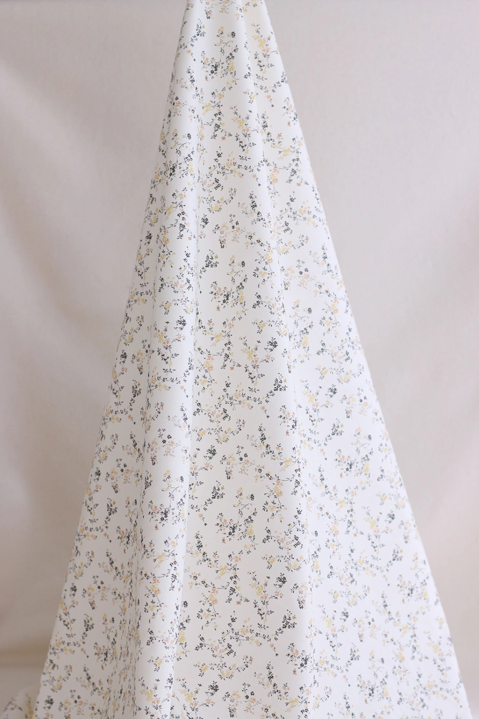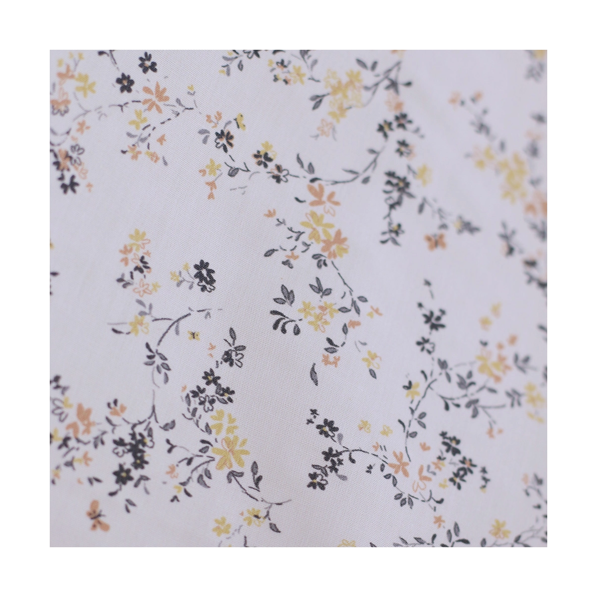 Coloris fond blanc lait imprimé fleuri noir et moutarde