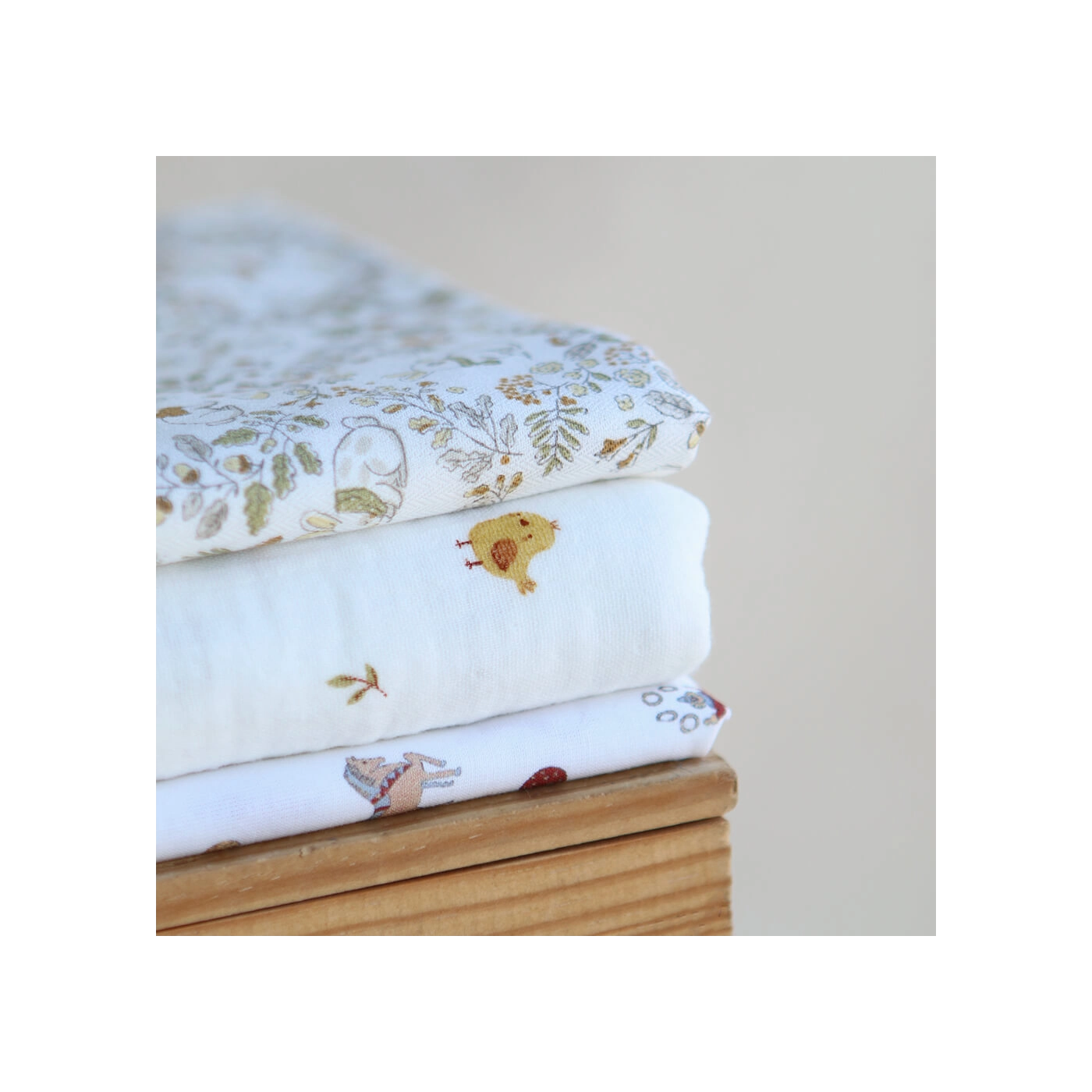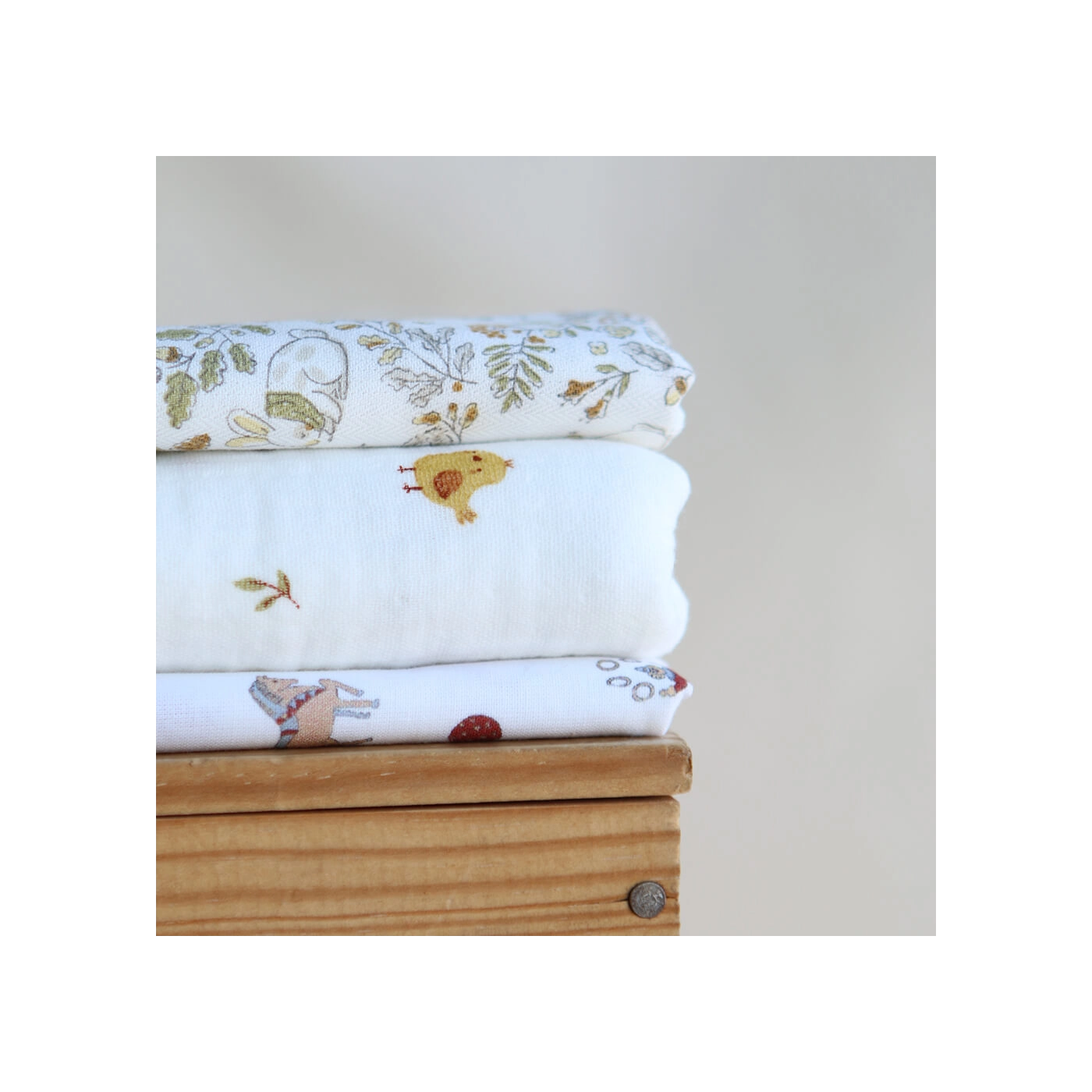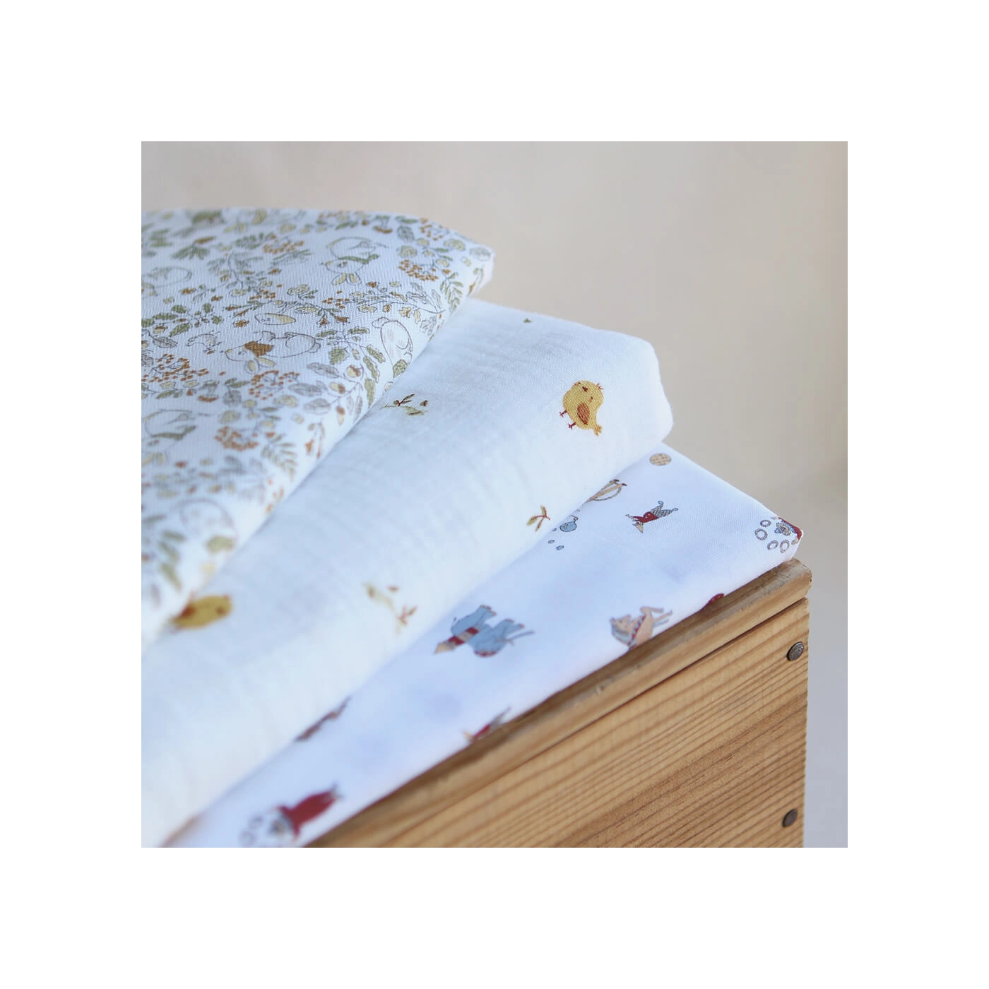Coloris: fond blanc lait, motif petits lapins