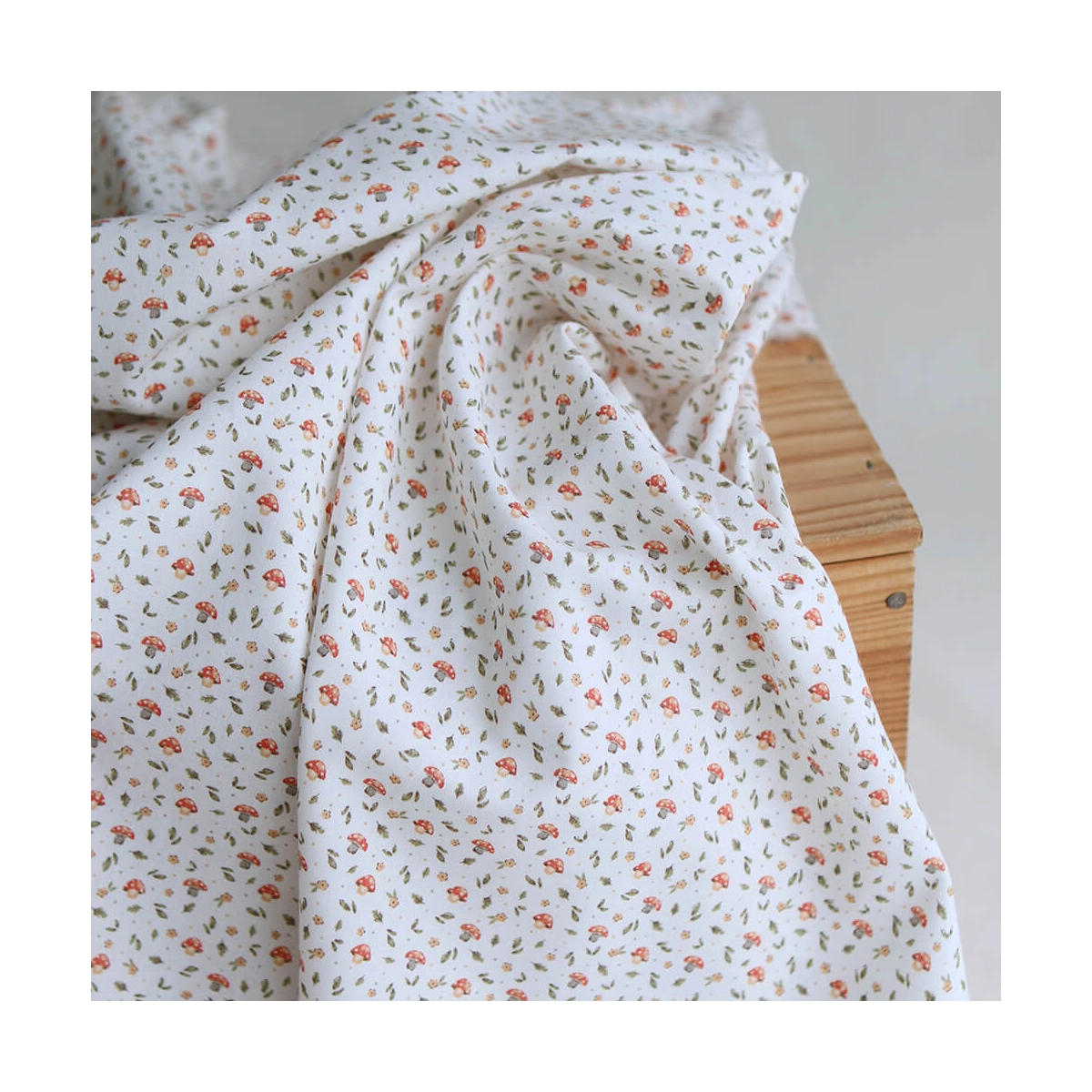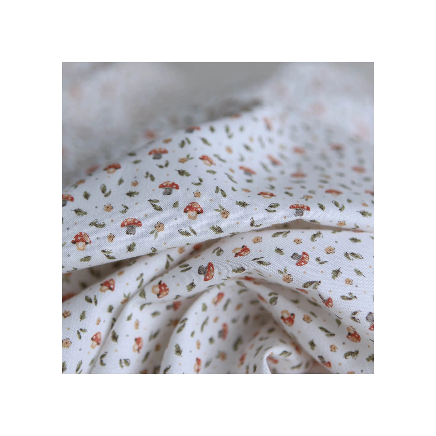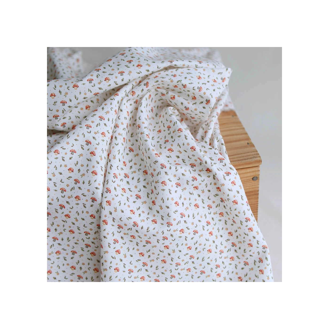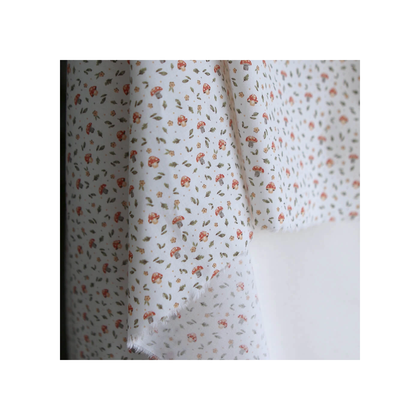 Amanite - Popeline de coton BIO imprimé champignon rouge orangé et vert