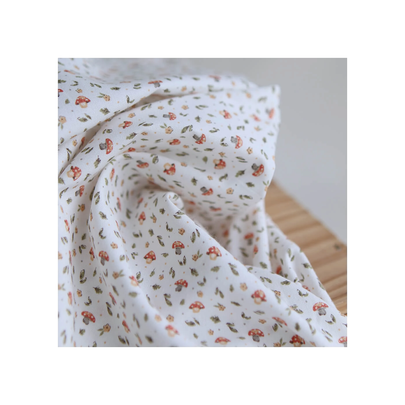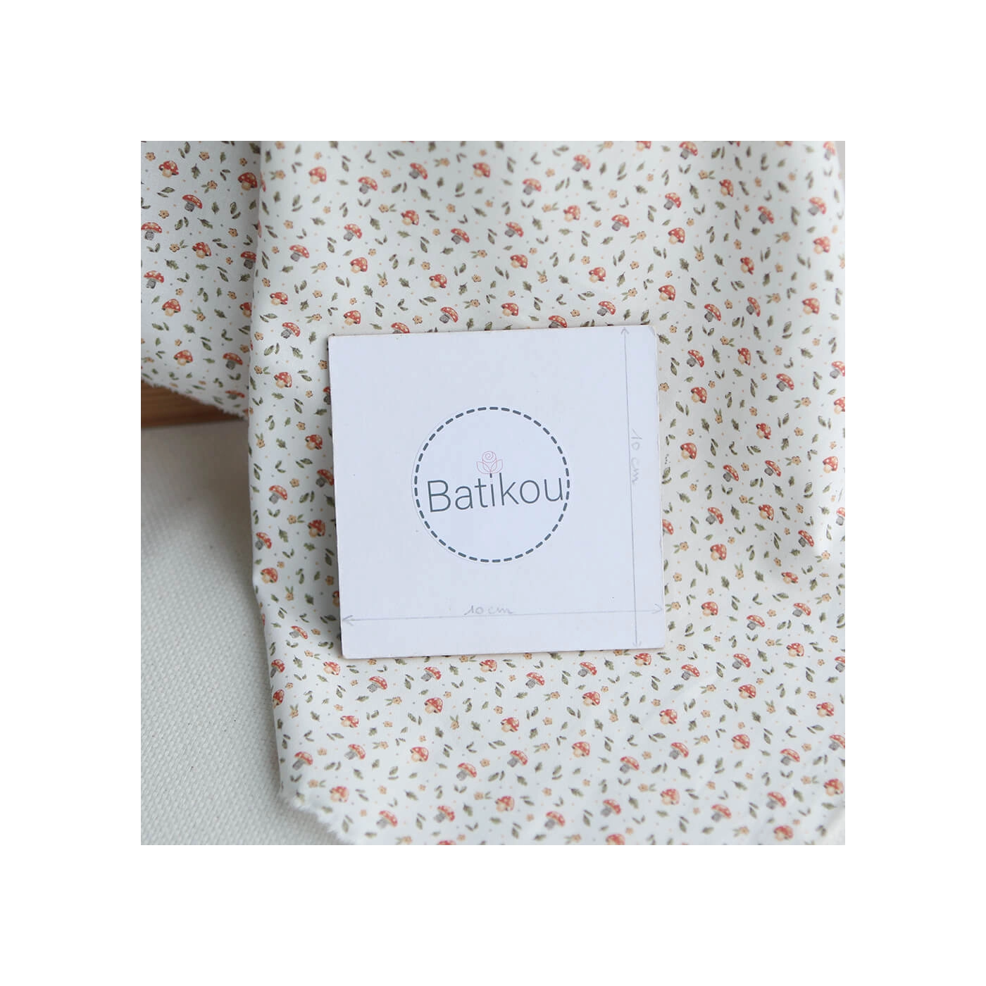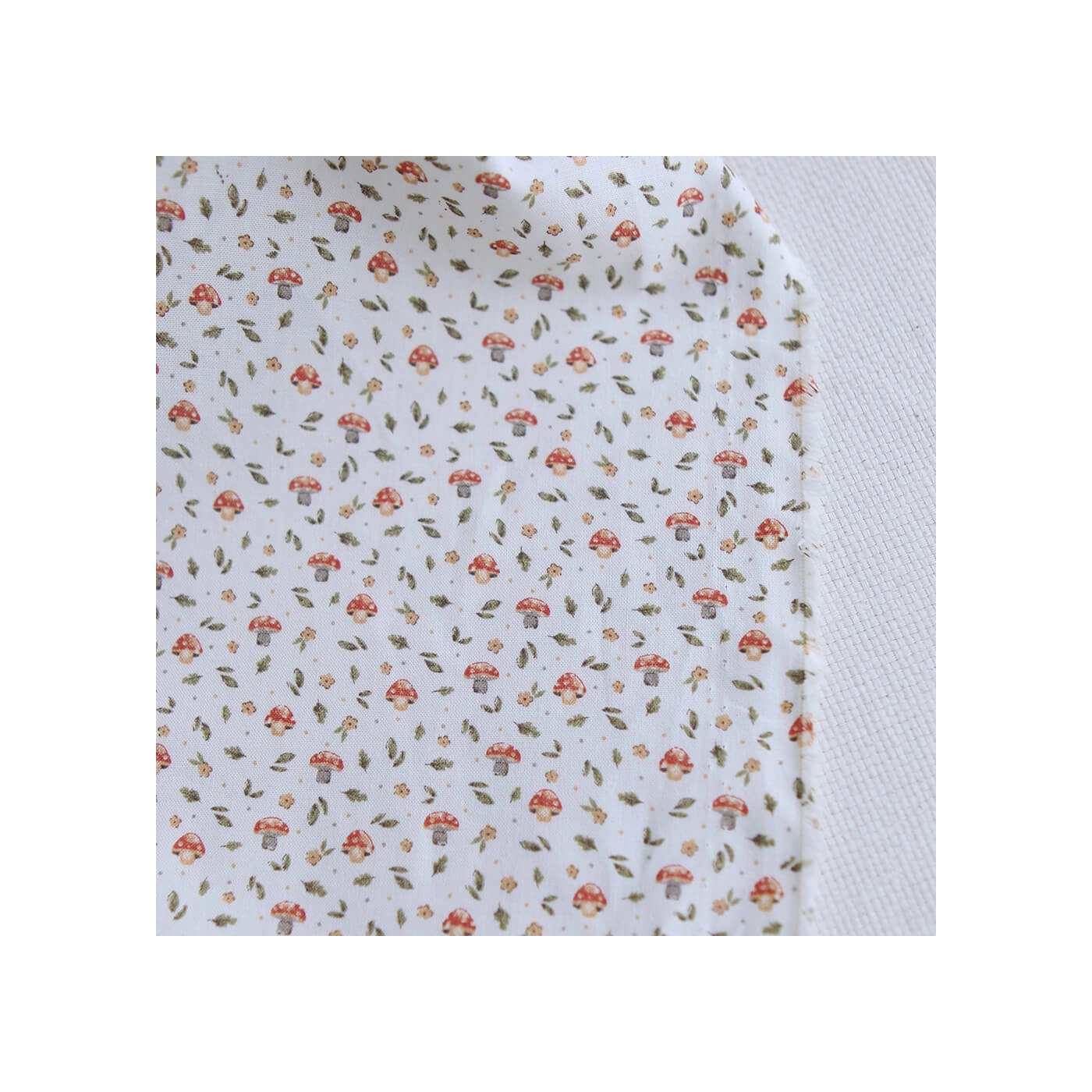 Amanite - Popeline de coton BIO imprimé champignon rouge orangé et vert