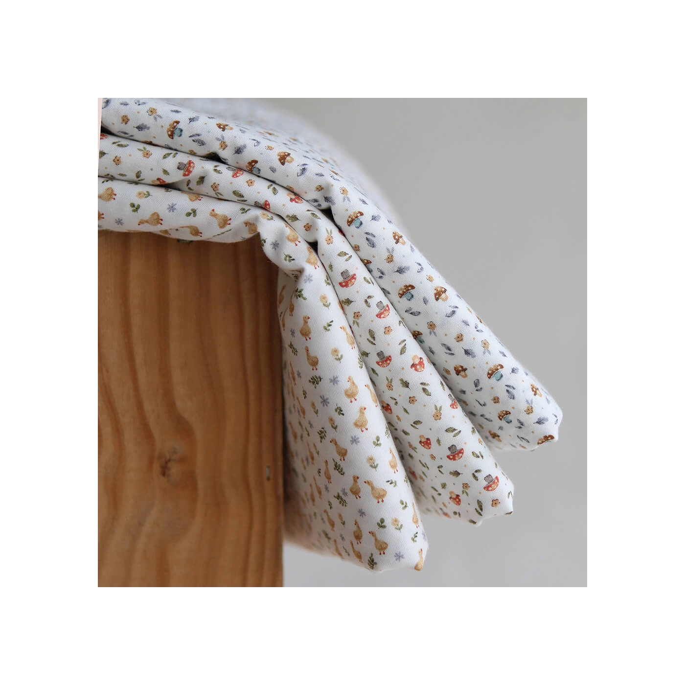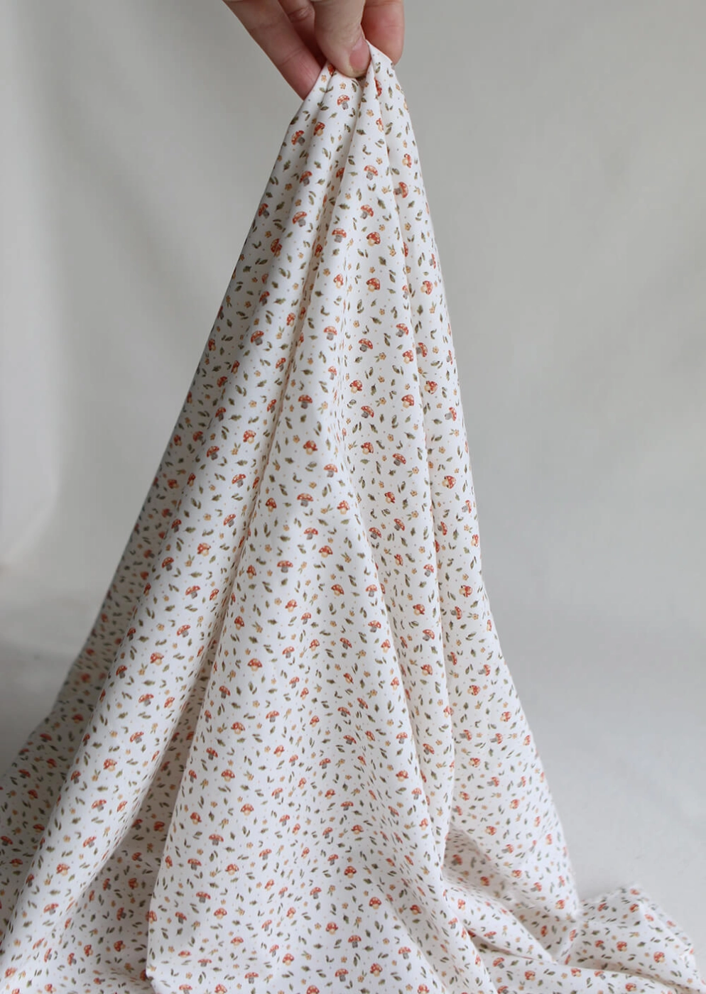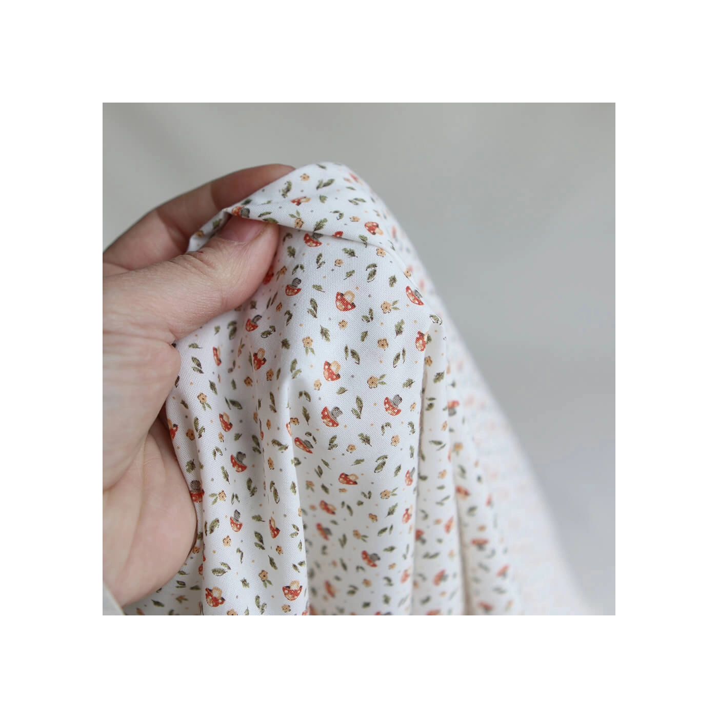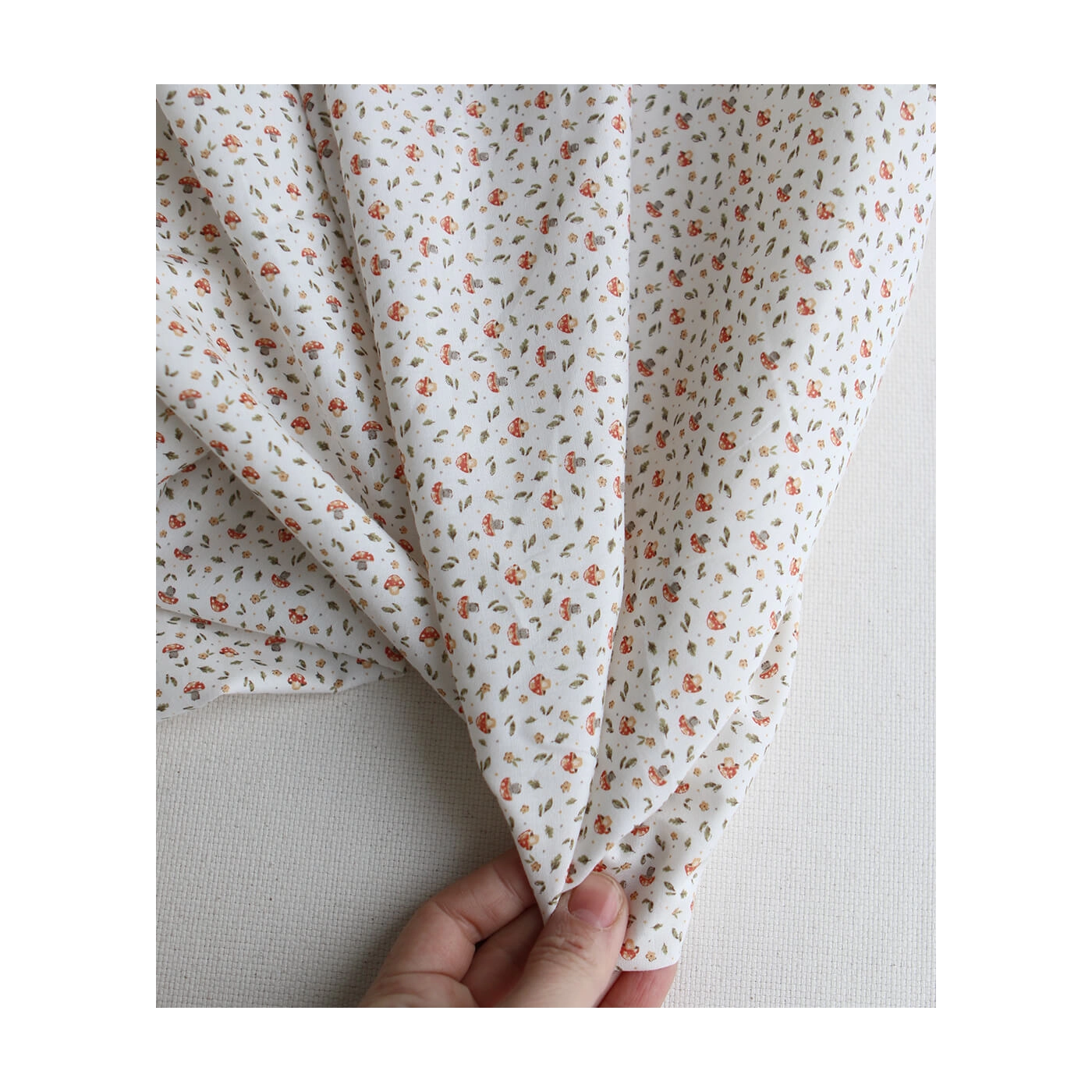 Amanite - Popeline de coton BIO imprimé champignon rouge orangé et vert
