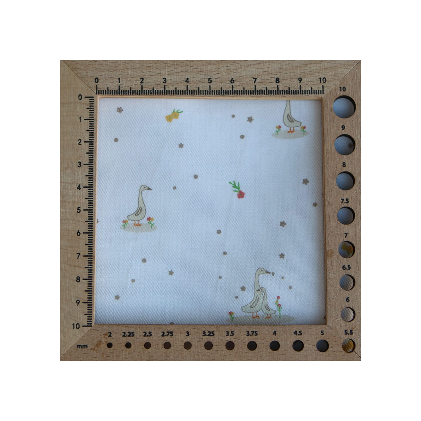 La photo avec le carré blanc permet d'avoir un repère de mesure (le carré fait 10cm de côté) et de couleur, en effet il est blanc optique. Cette indication peut vous permettre de mieux percevoir le rendu du tissu.