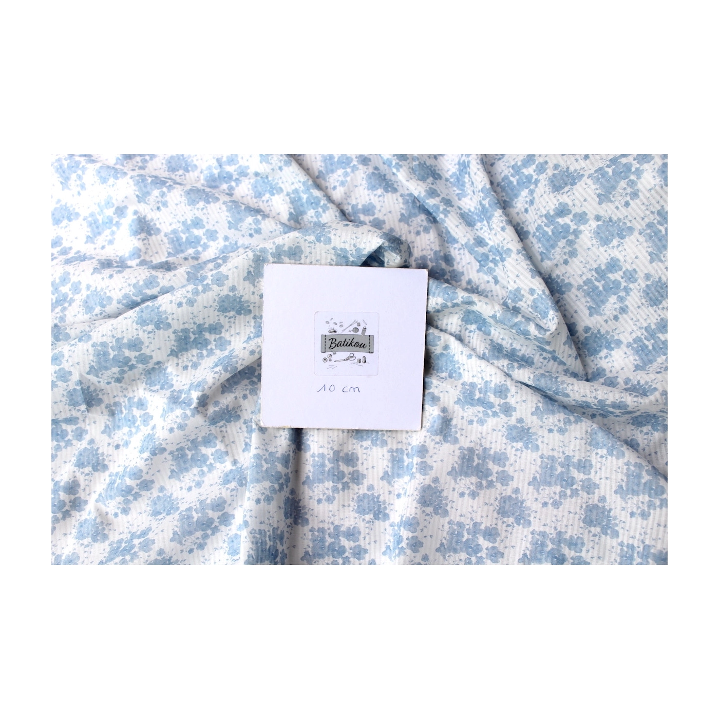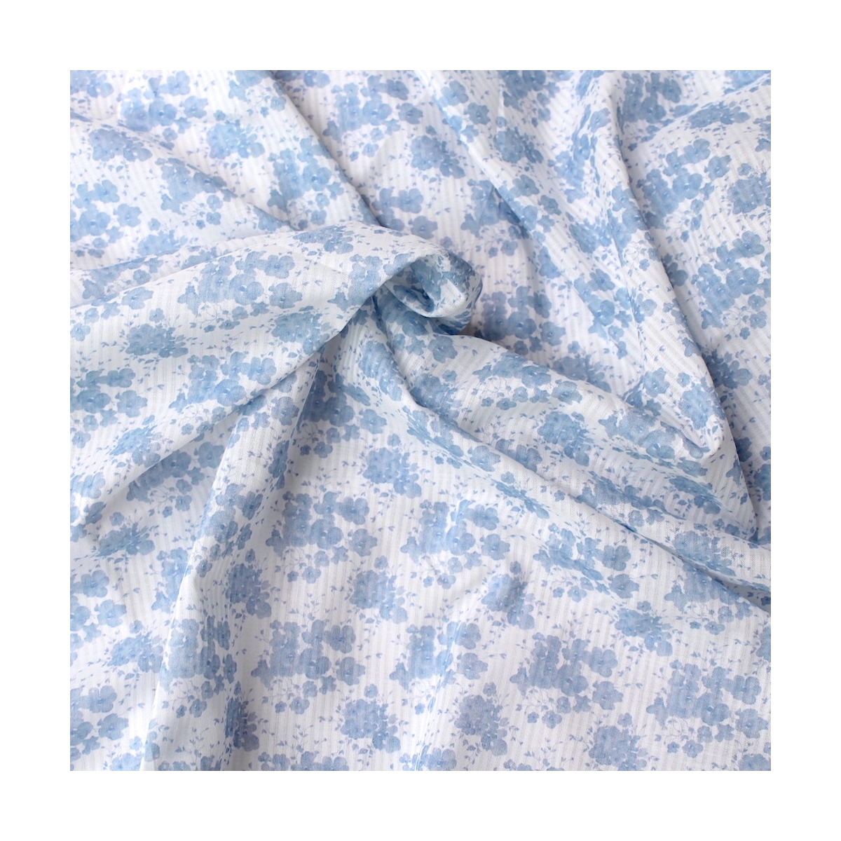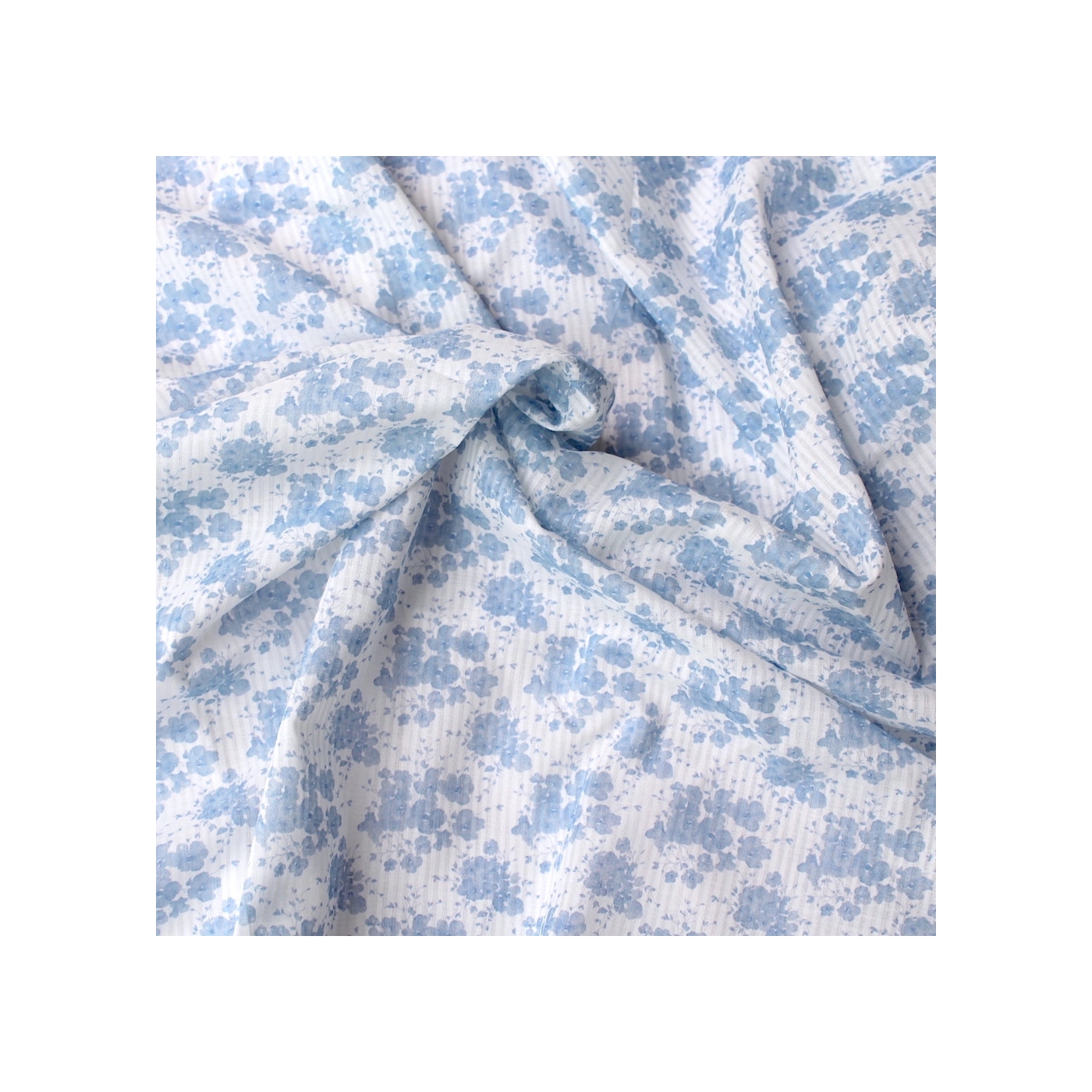 - Coloris fond blanc imprimé fleuri bleu faïence