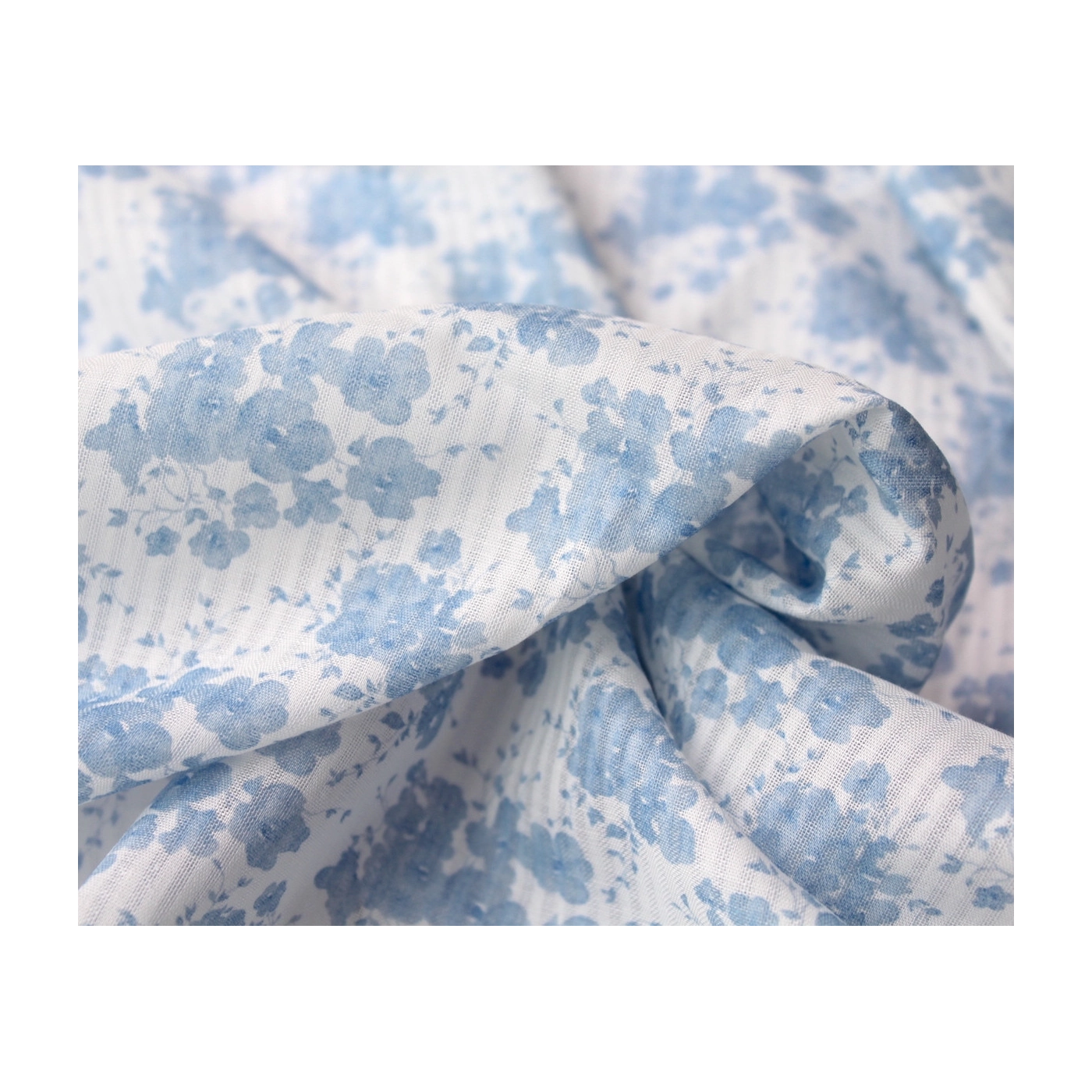 Voile de coton organique rayé imprimé fleuri bleu faïence