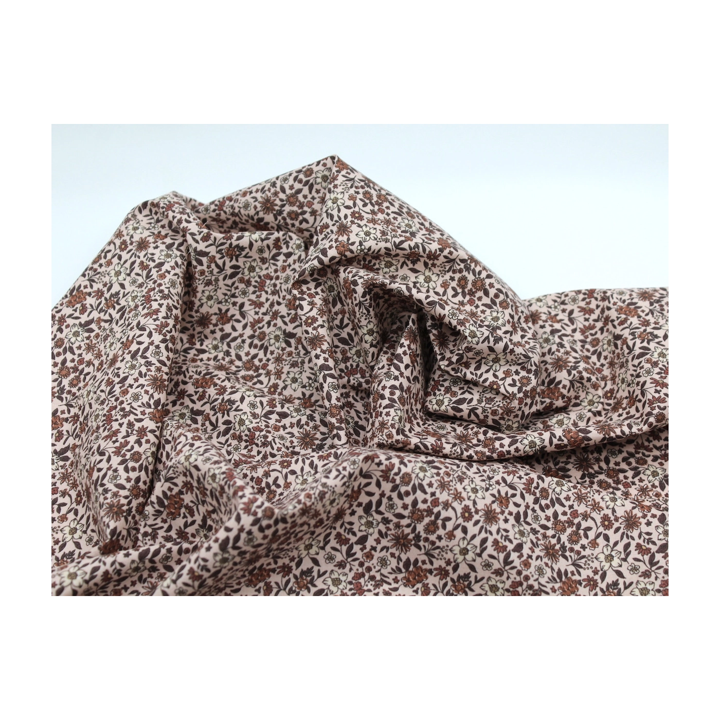 Noémie - Popeline de coton douce qualité SWEET lait fleuri vert et bois de rose
