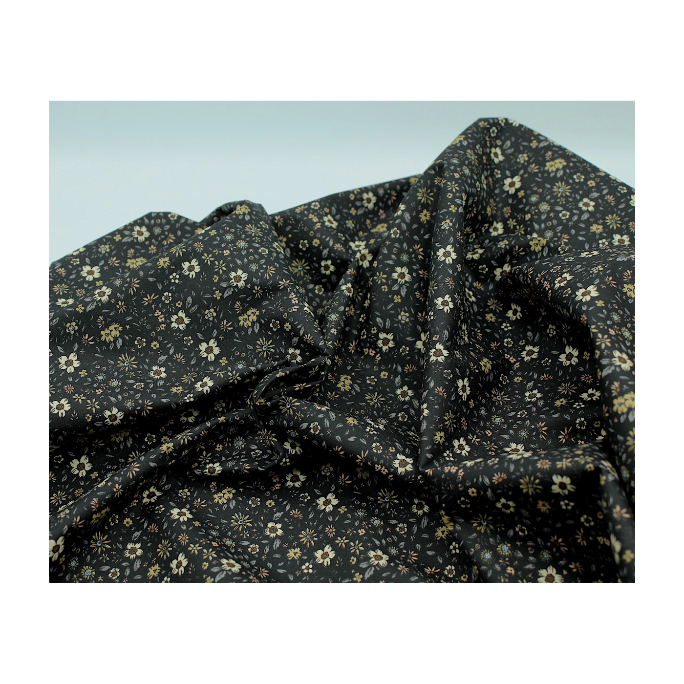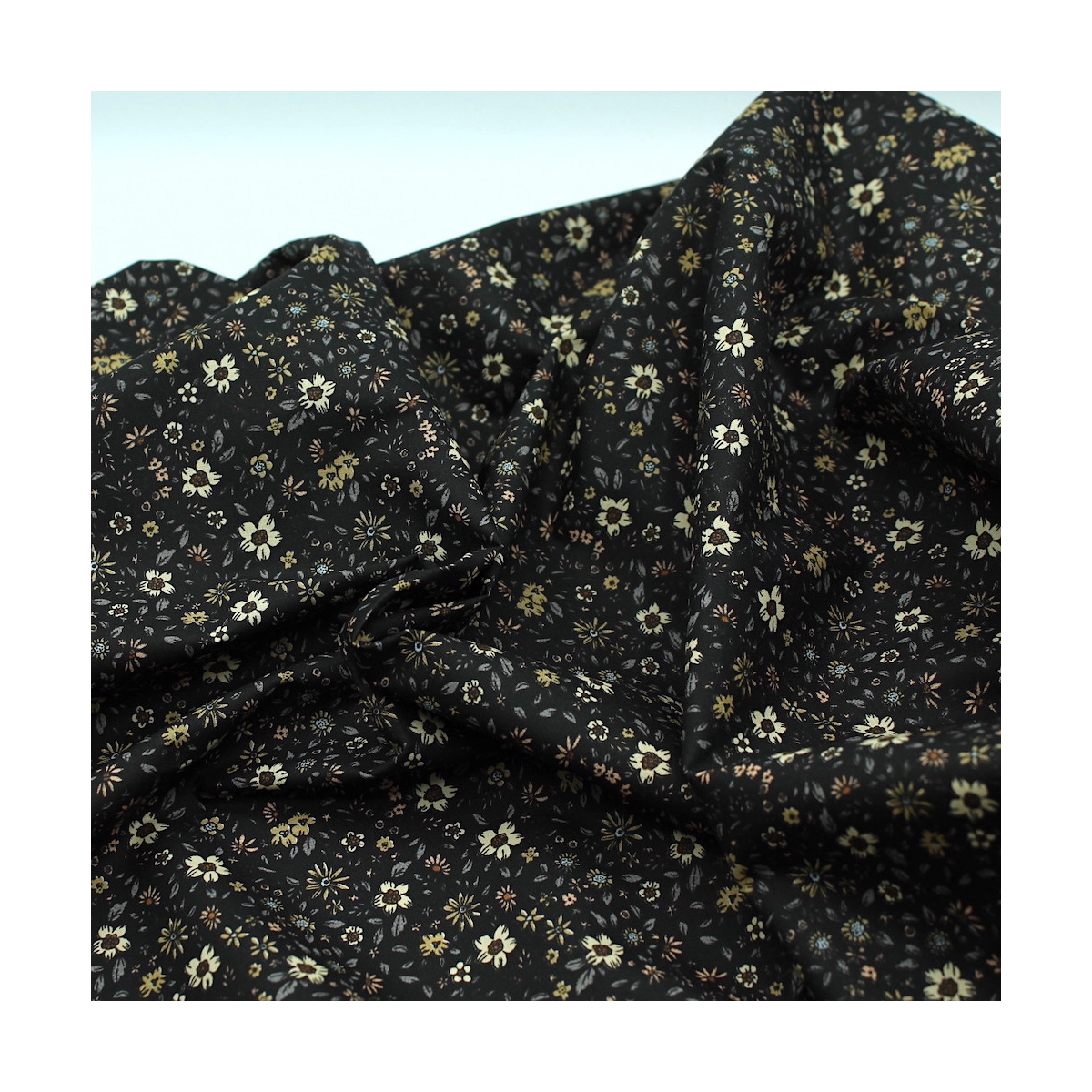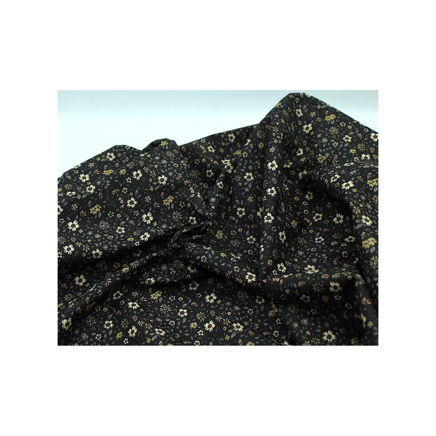 Eulalie - Batiste de coton bio SILKYNE à imprimé fleuri noir Tissus issus de l'agriculture biologique  - 1