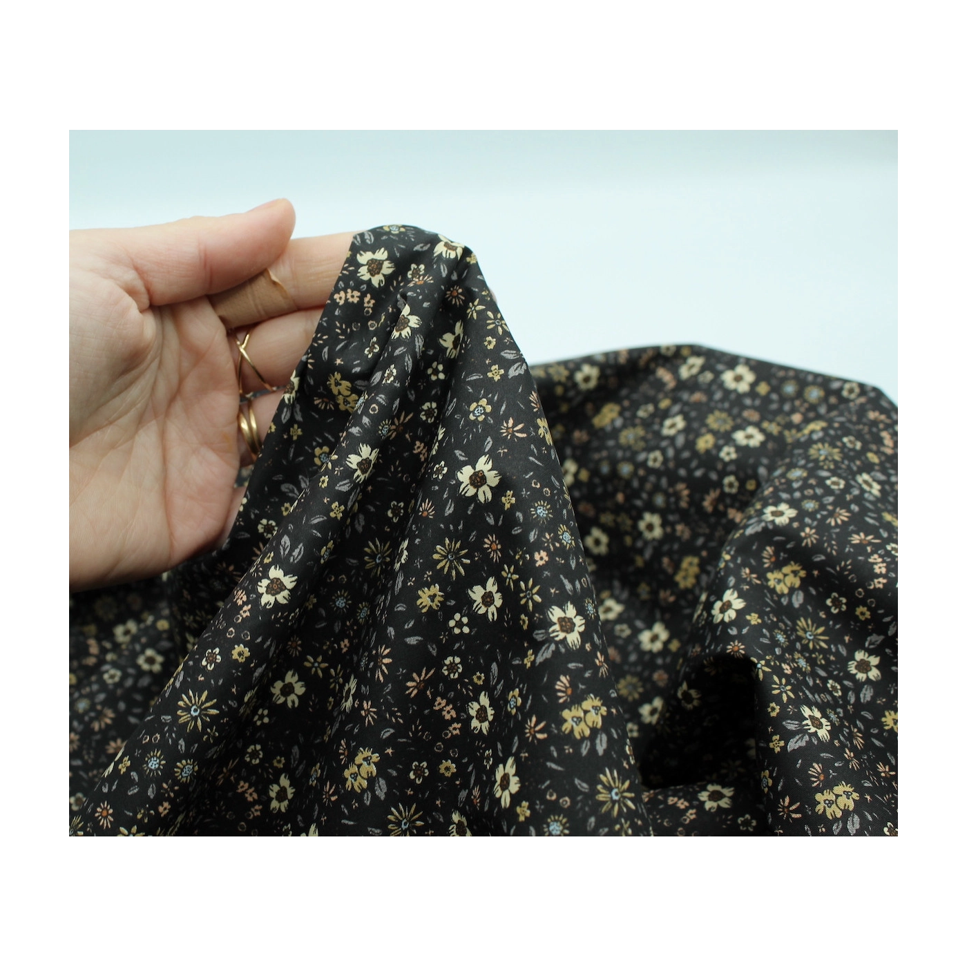 Eulalie - Batiste de coton bio SILKYNE à imprimé fleuri noir Tissus issus de l'agriculture biologique  - 6