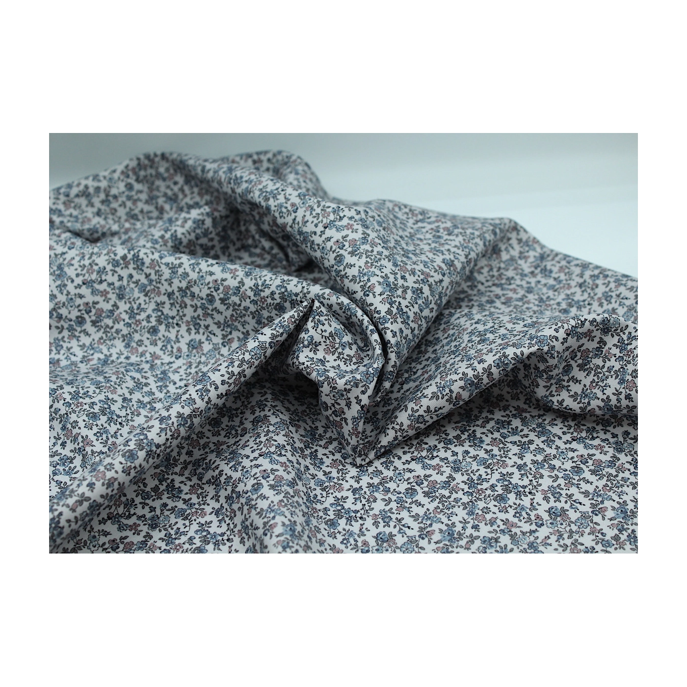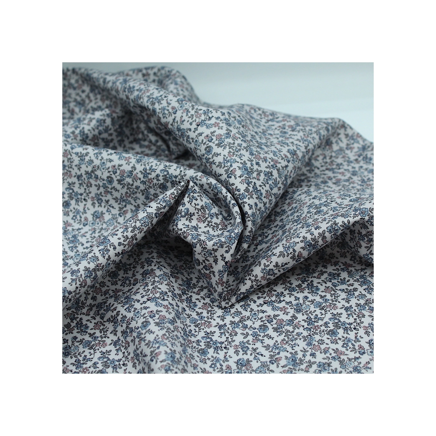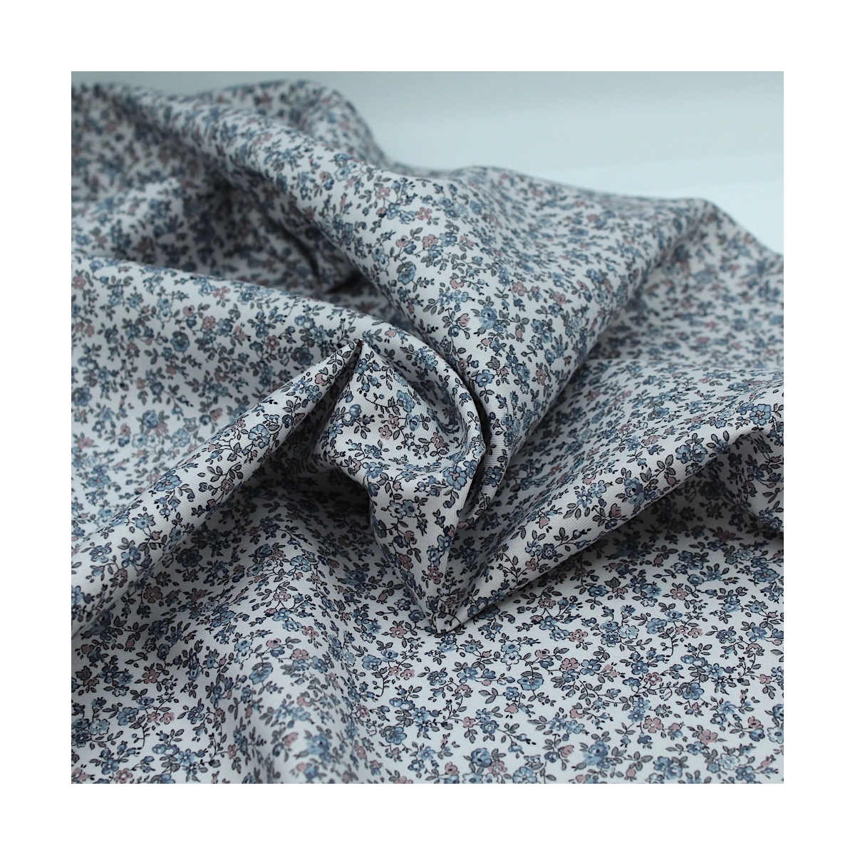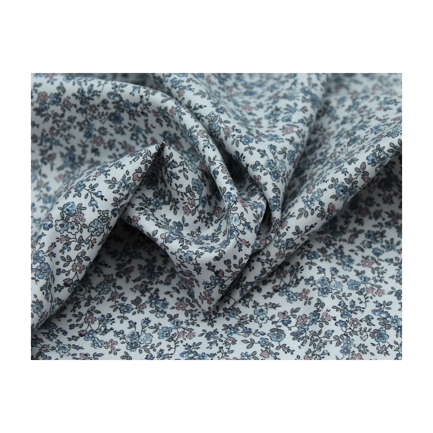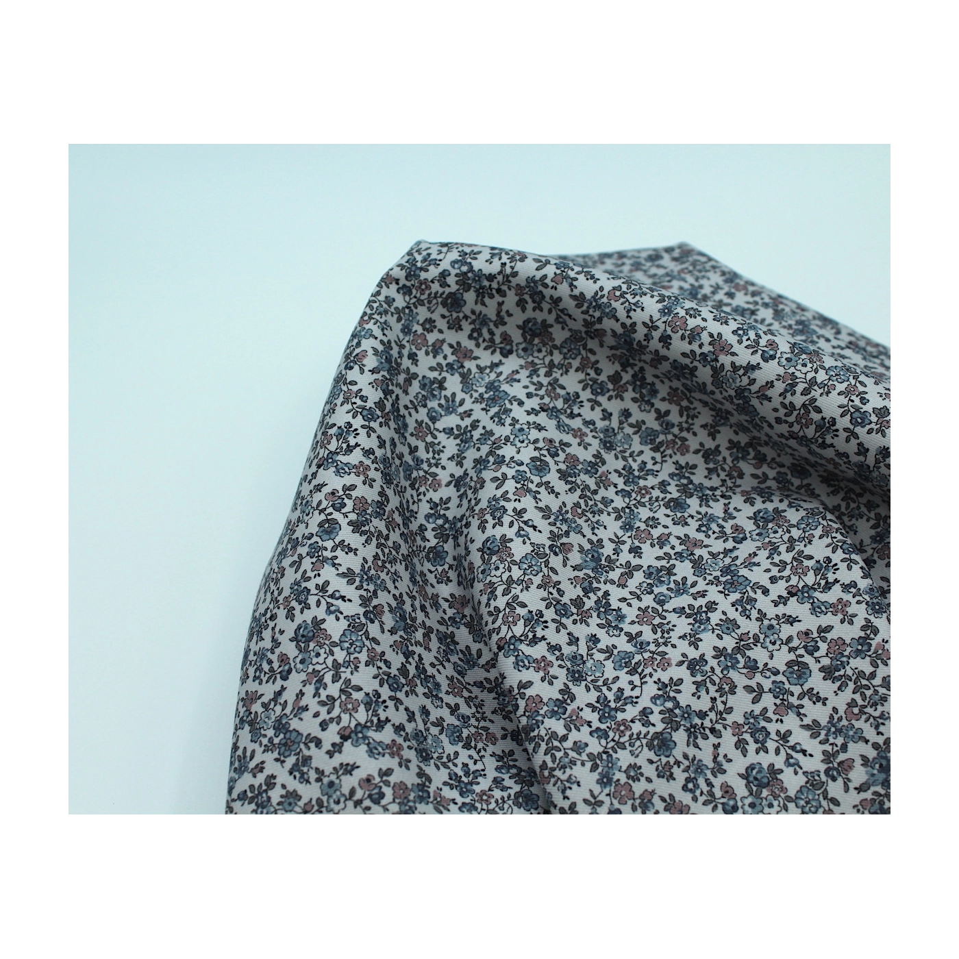 Tissu twill de coton organique imprimé fleuri fond gris clair