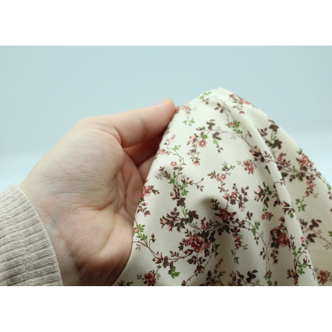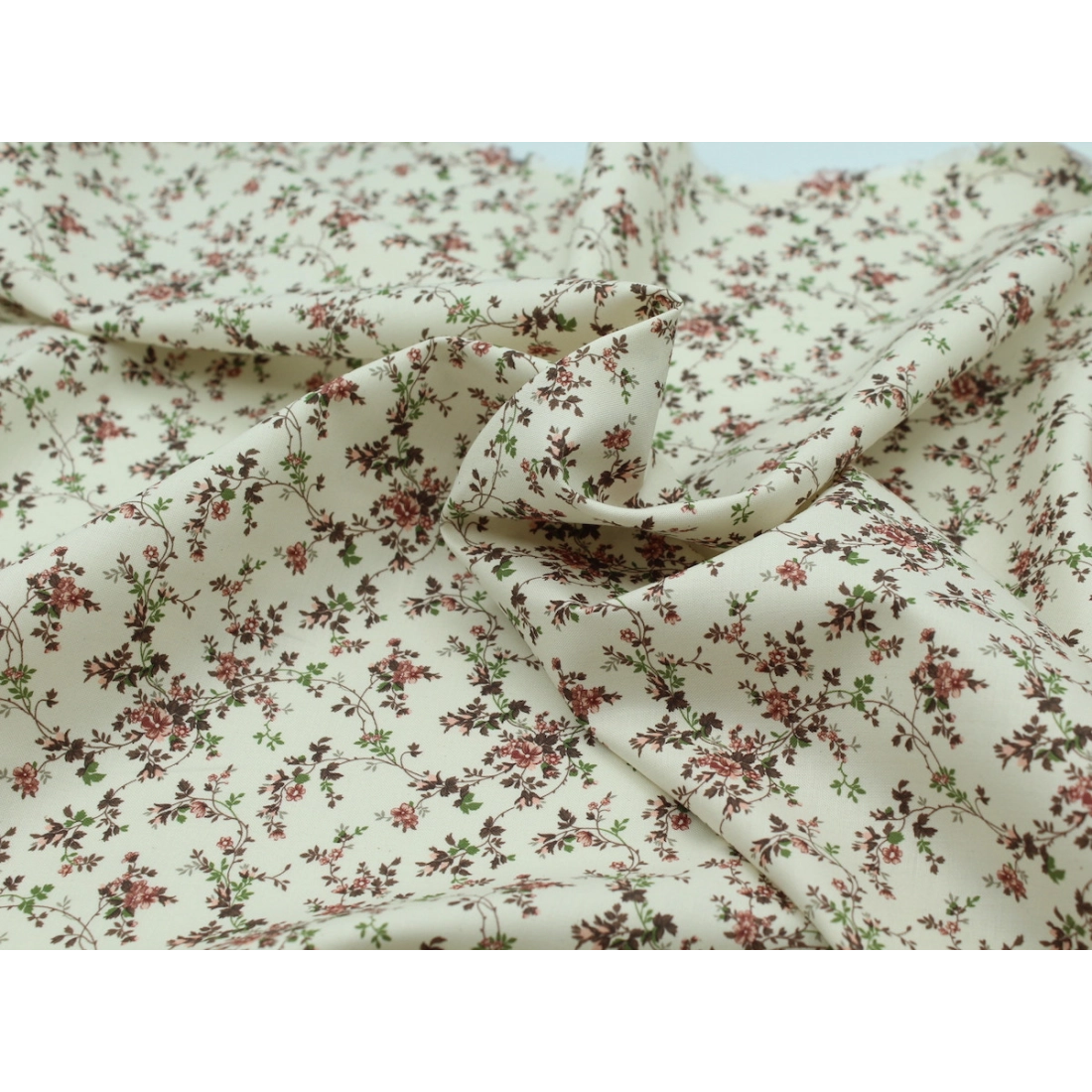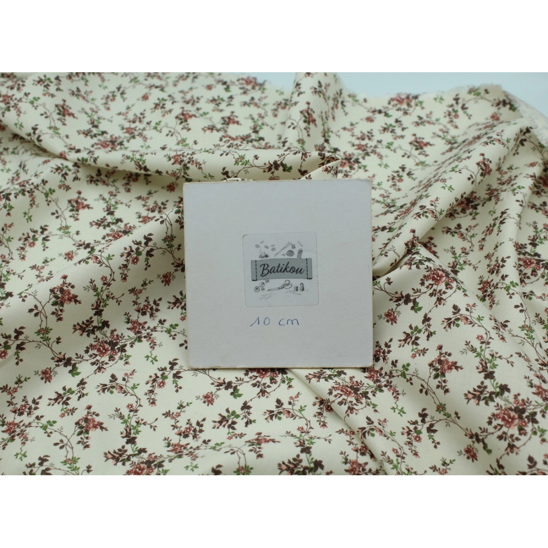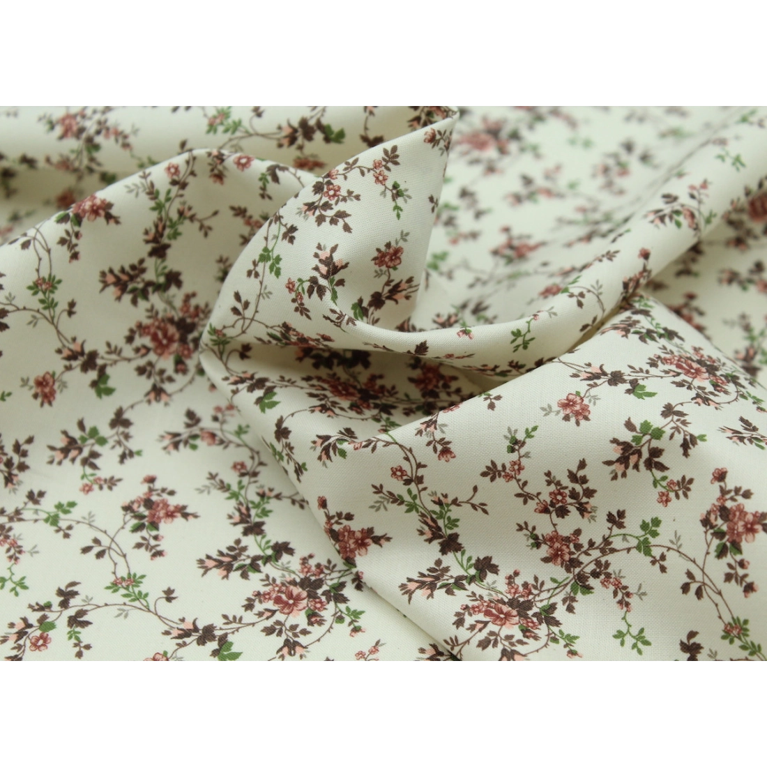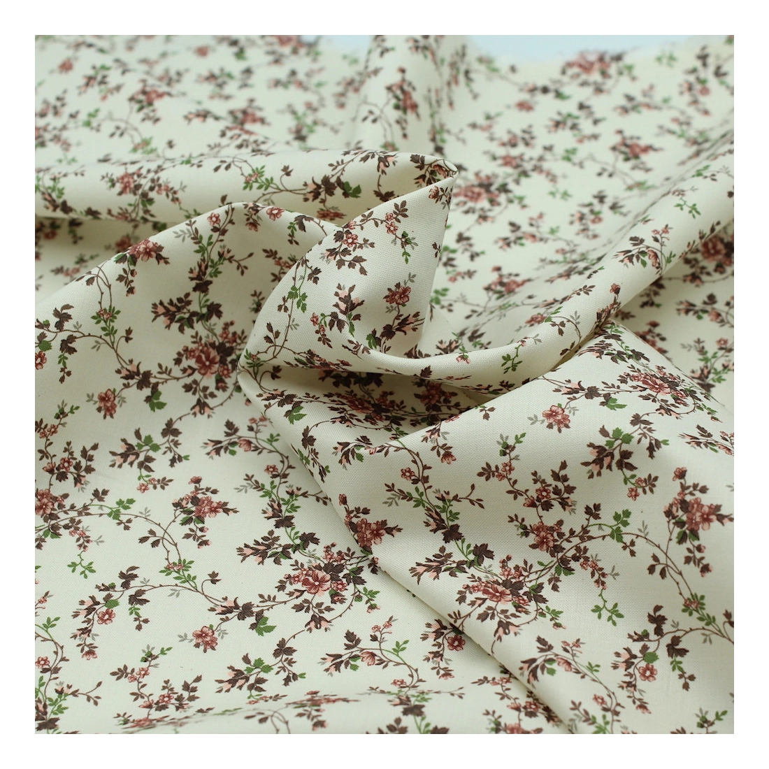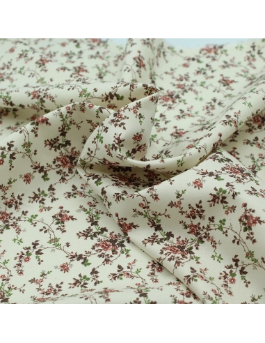 Popeline fine et douce coton organique fond ivoire imprimé fleuri vieux rose