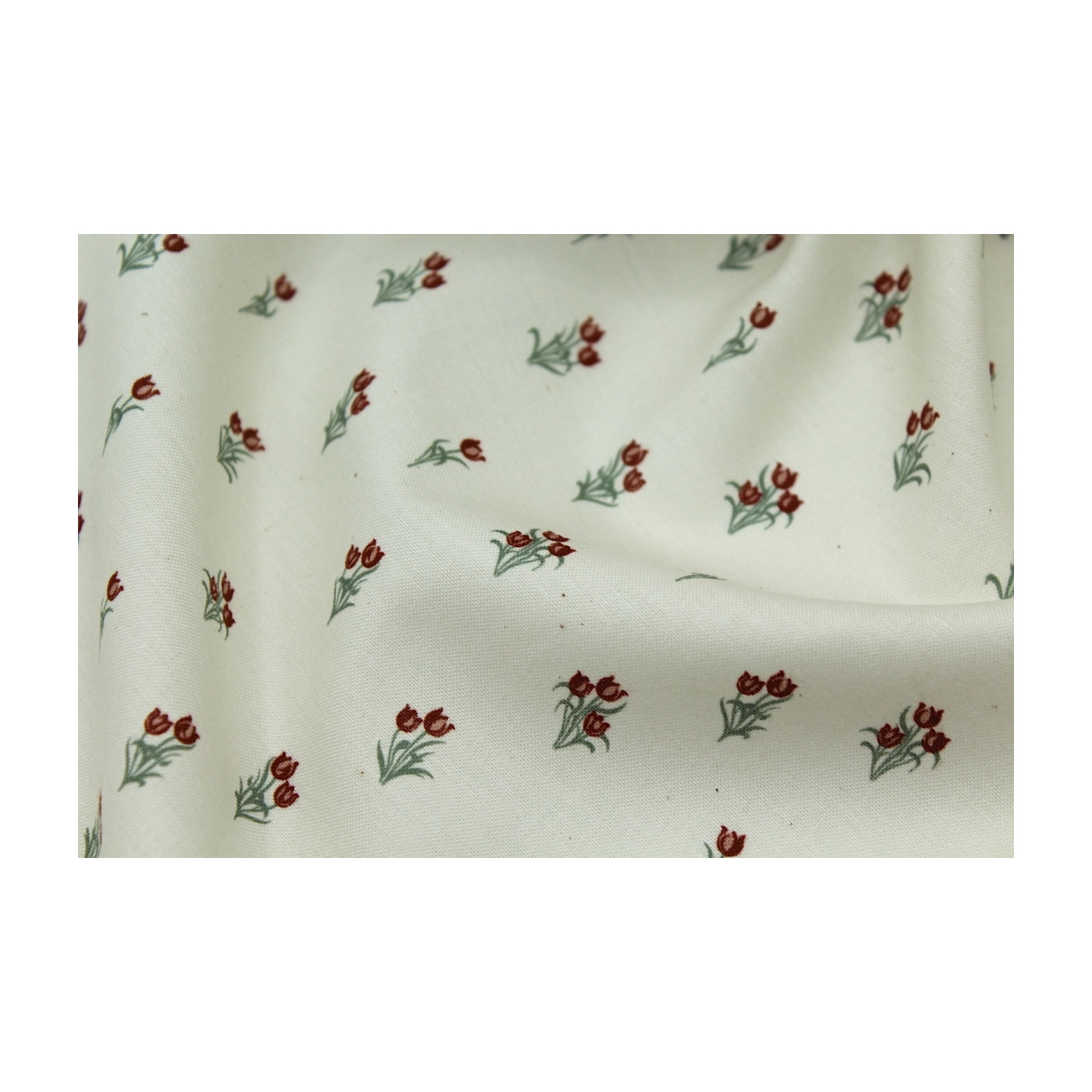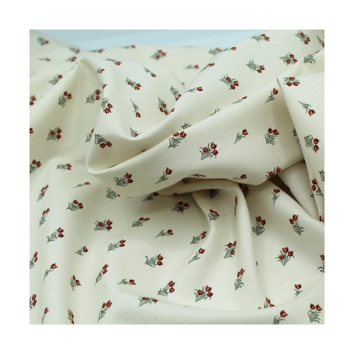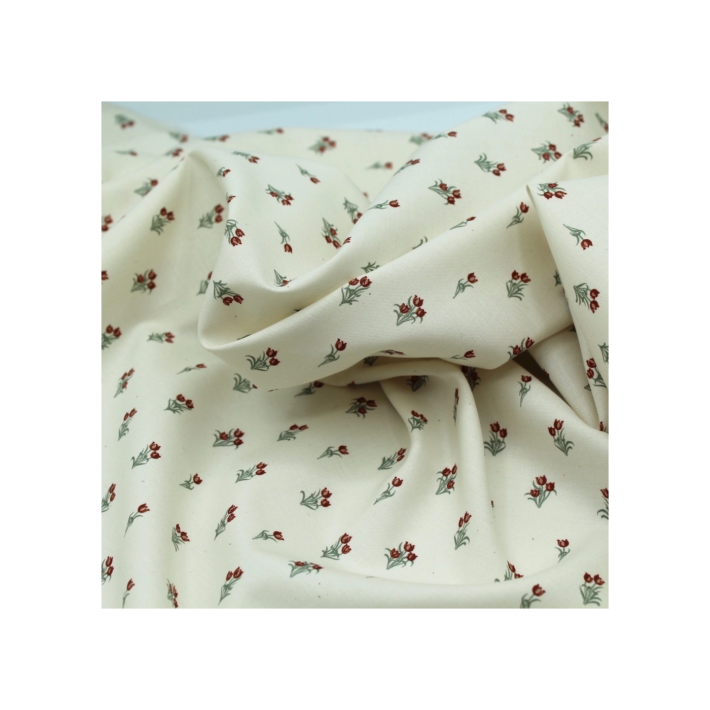 Popeline fine et douce coton organique fond ivoire imprimé tulipes bordeaux
