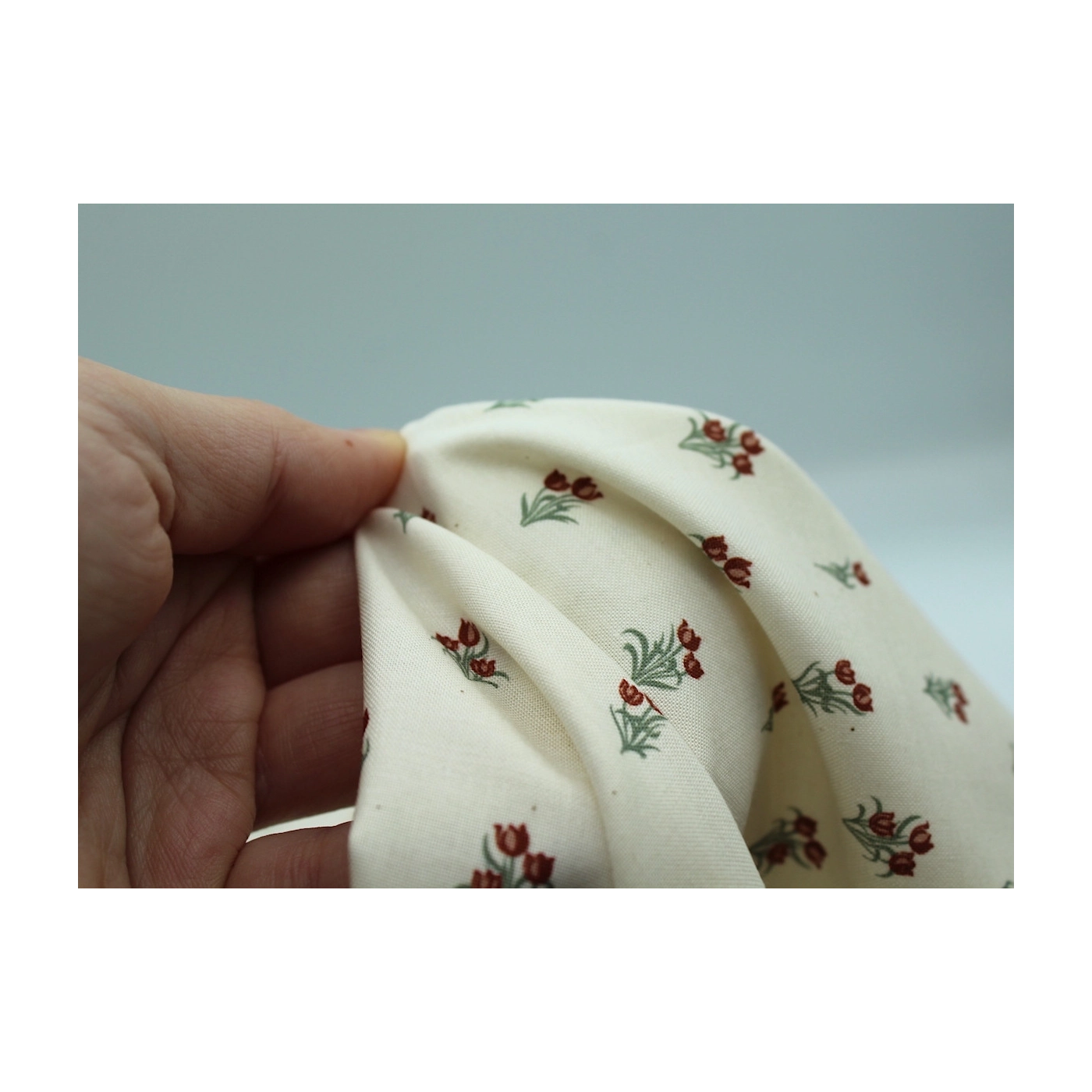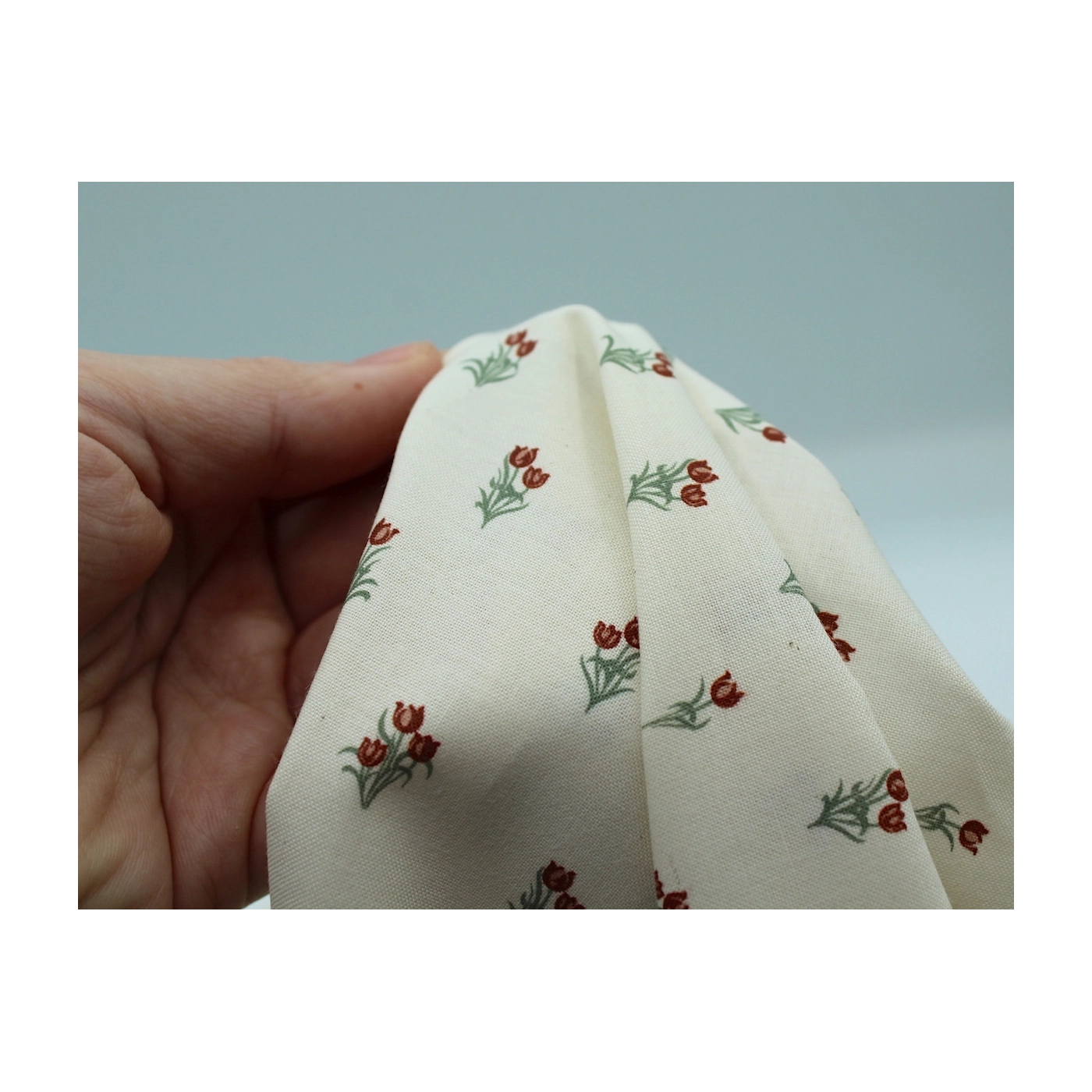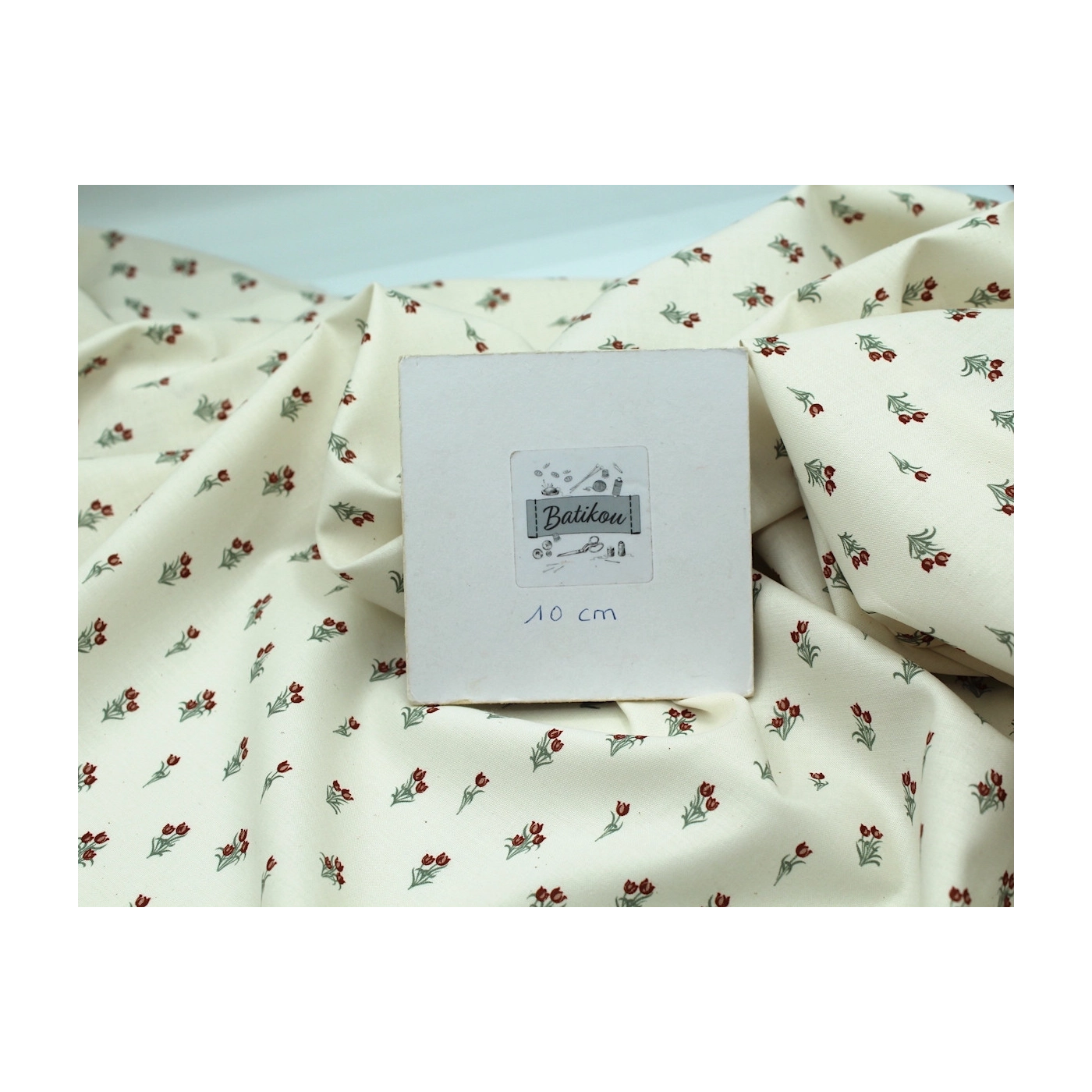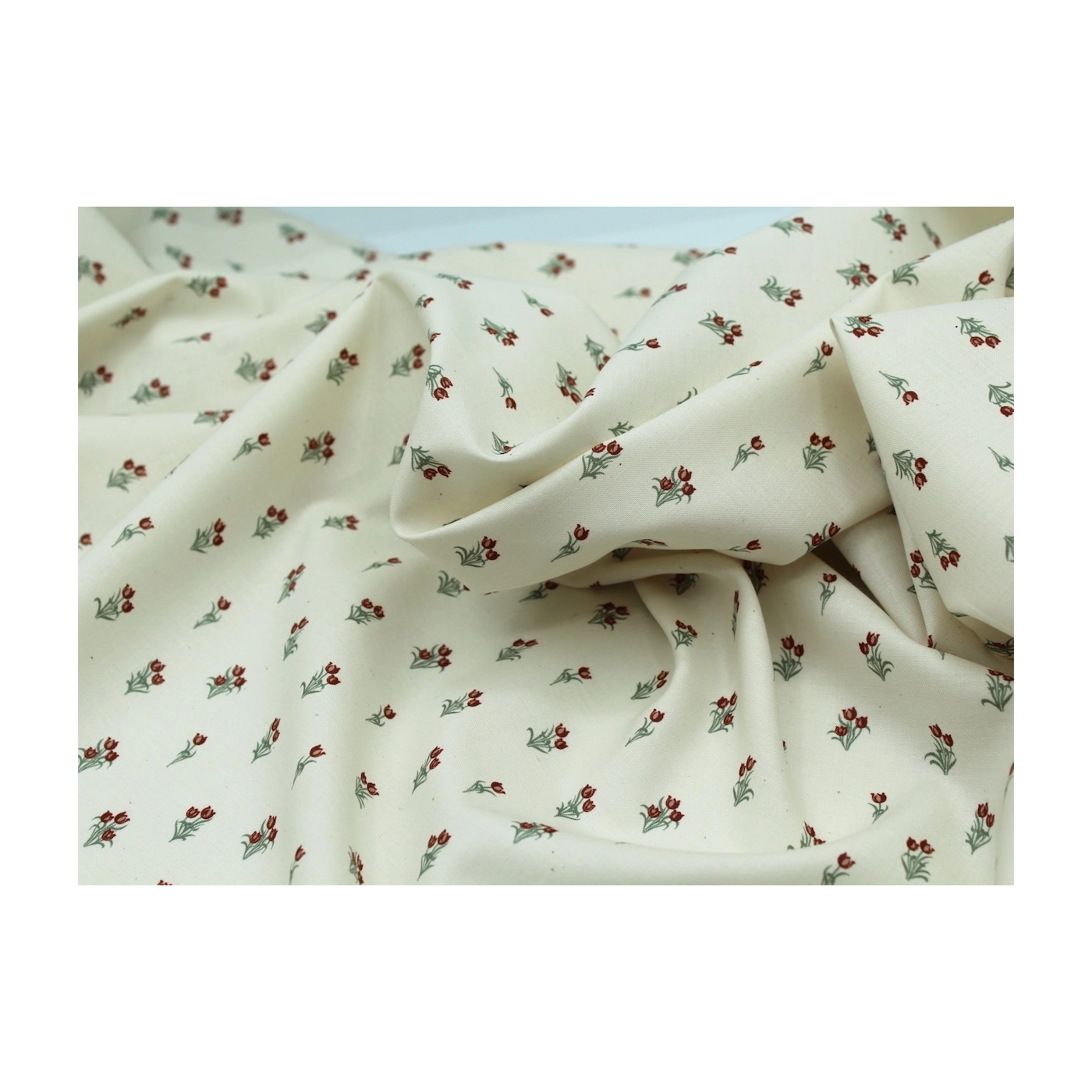Popeline fine et douce coton organique fond ivoire imprimé tulipes bordeaux
