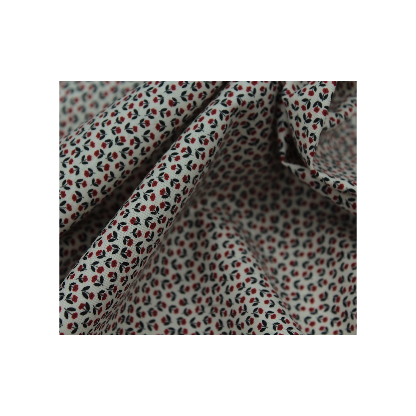 Popeline fine et douce coton organique fond ivoire imprimé mini fleurs