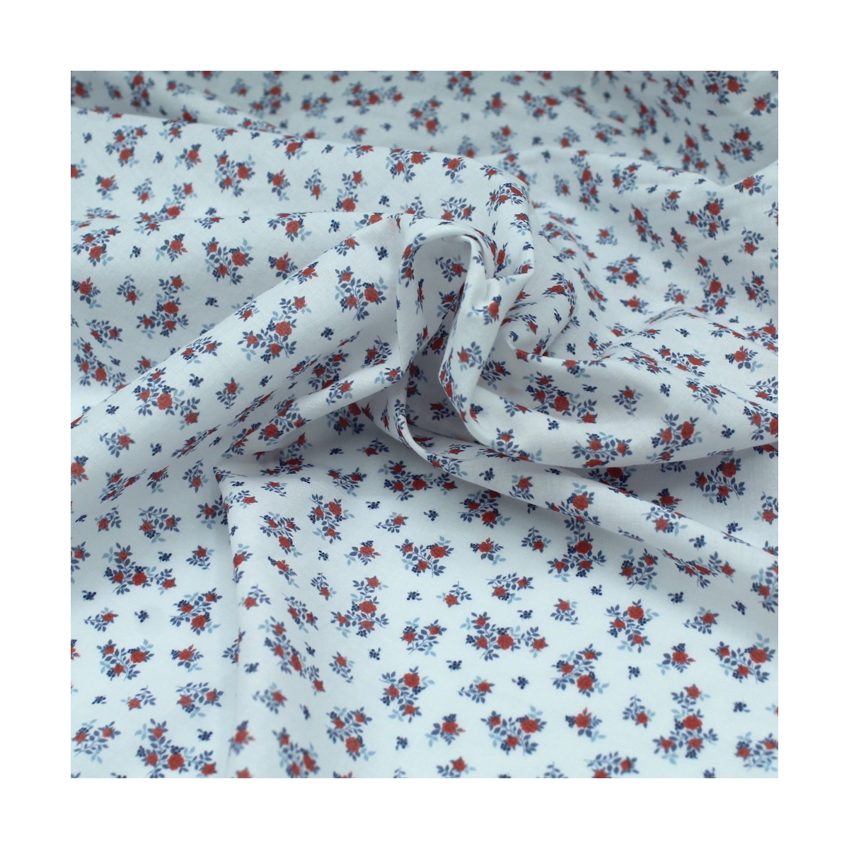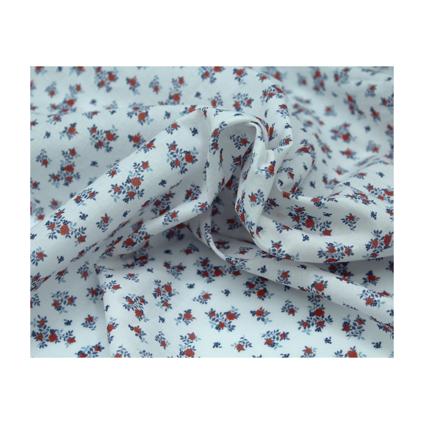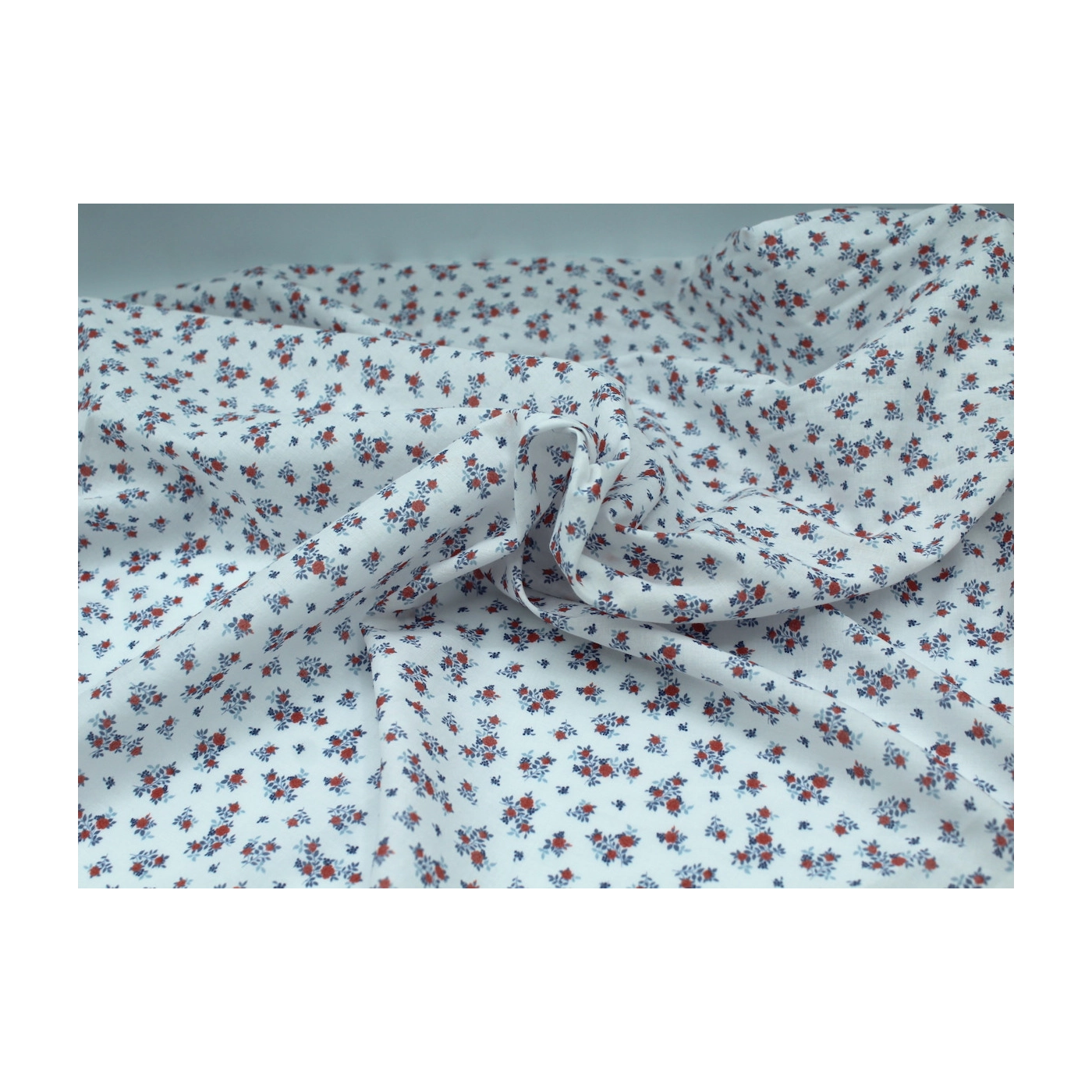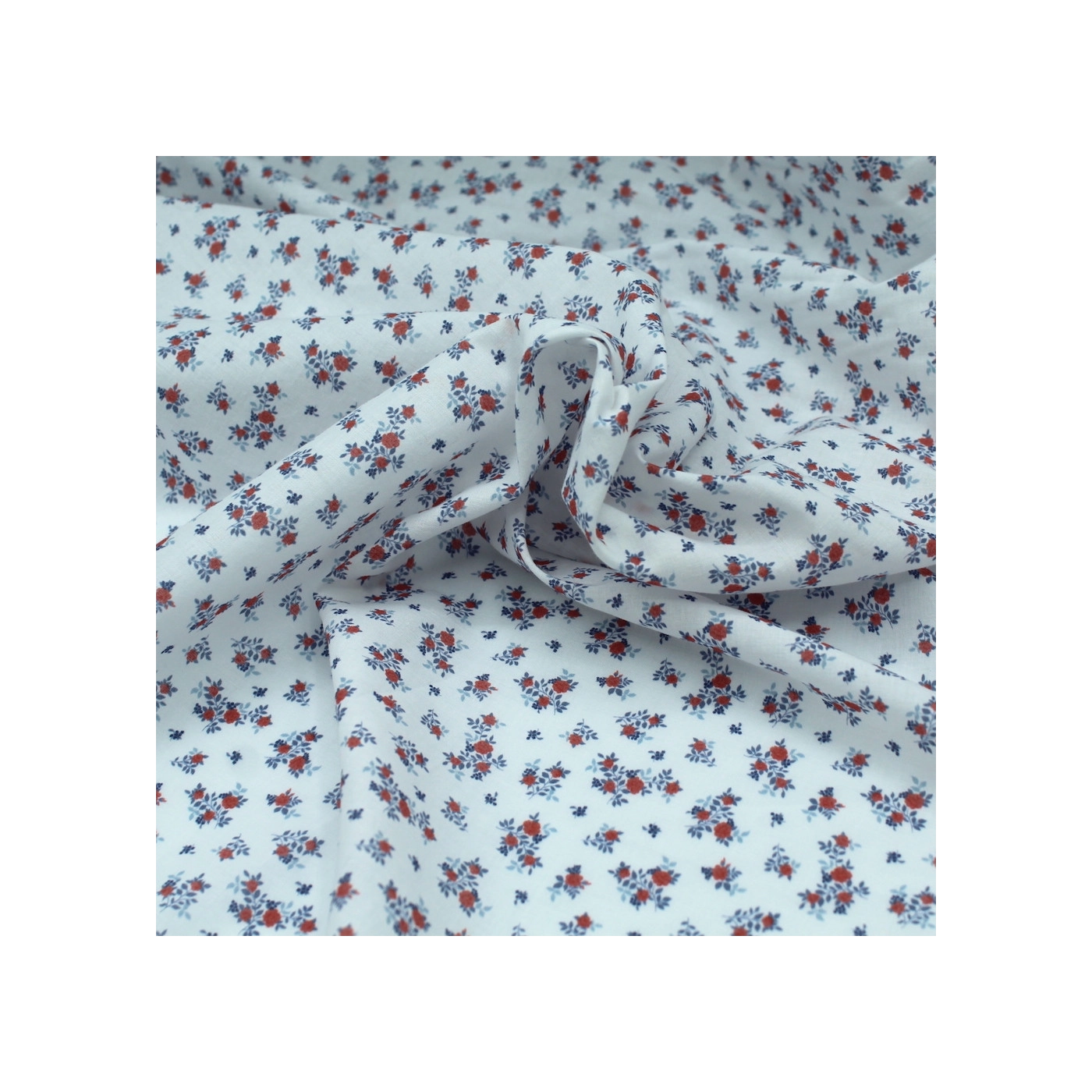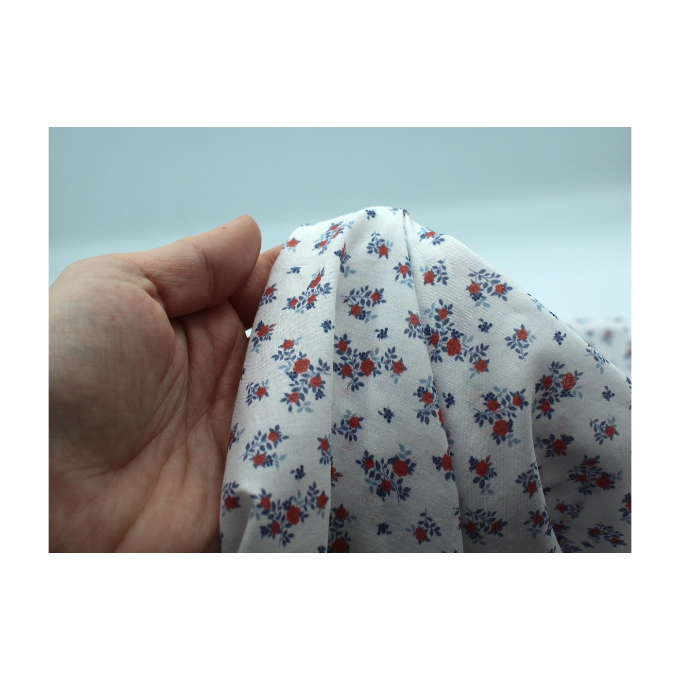 Batiste de coton imprimé fleuri bleu / rouge
