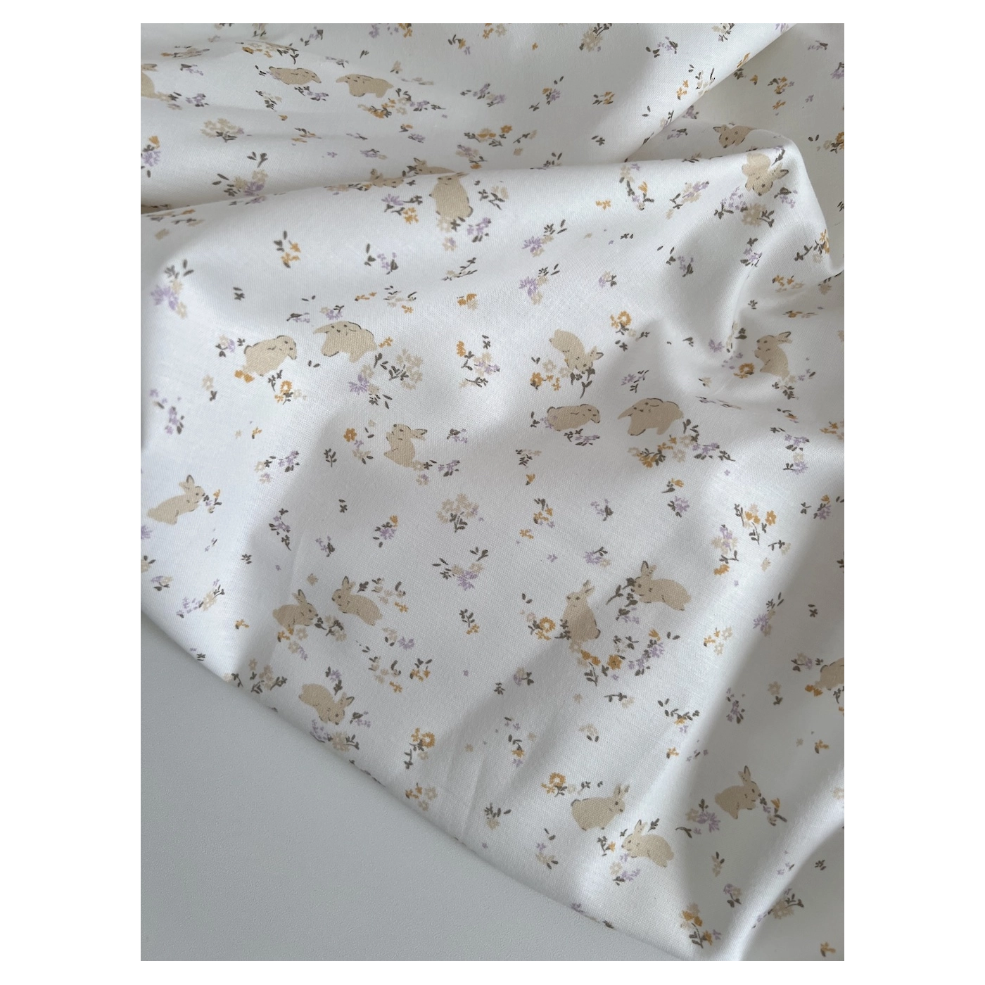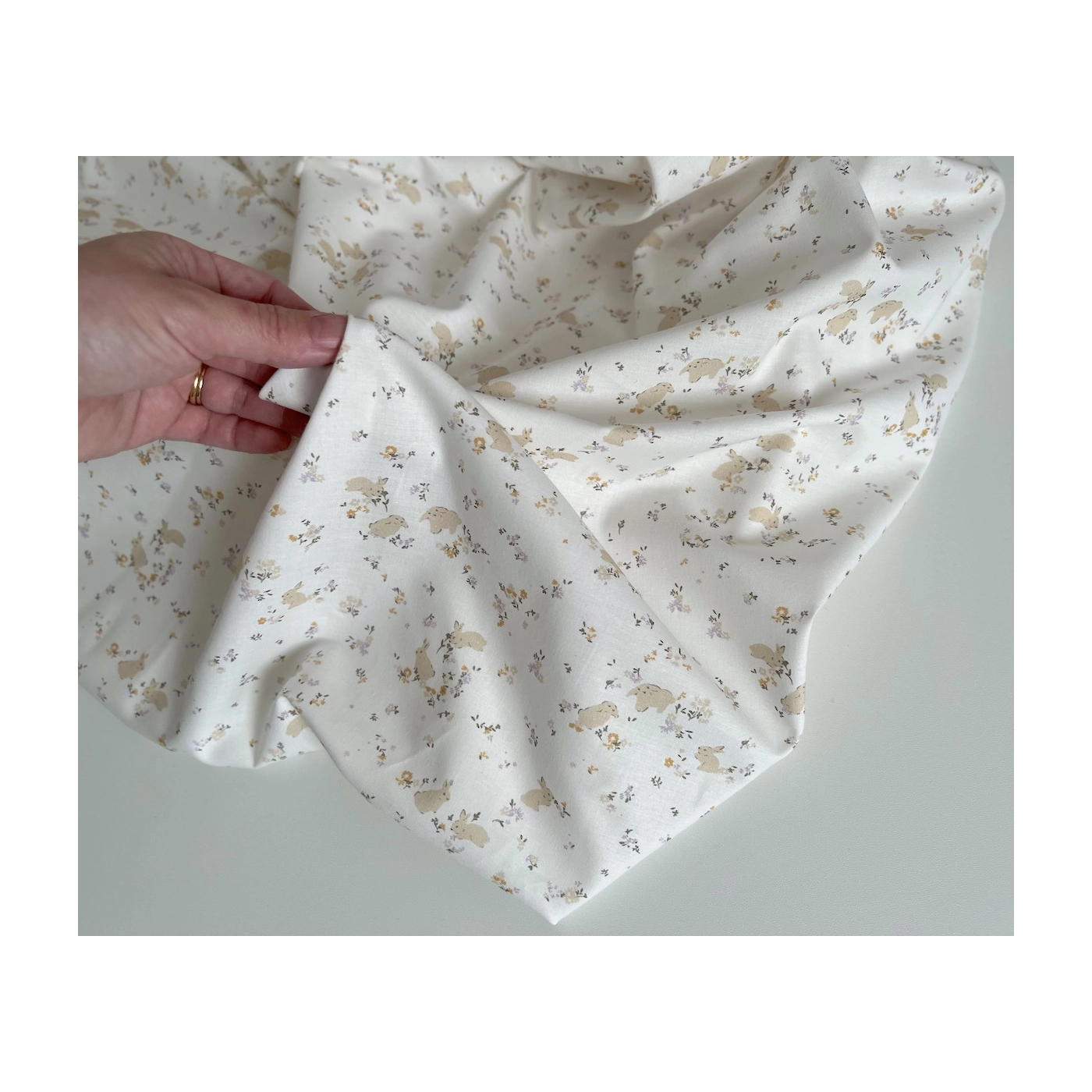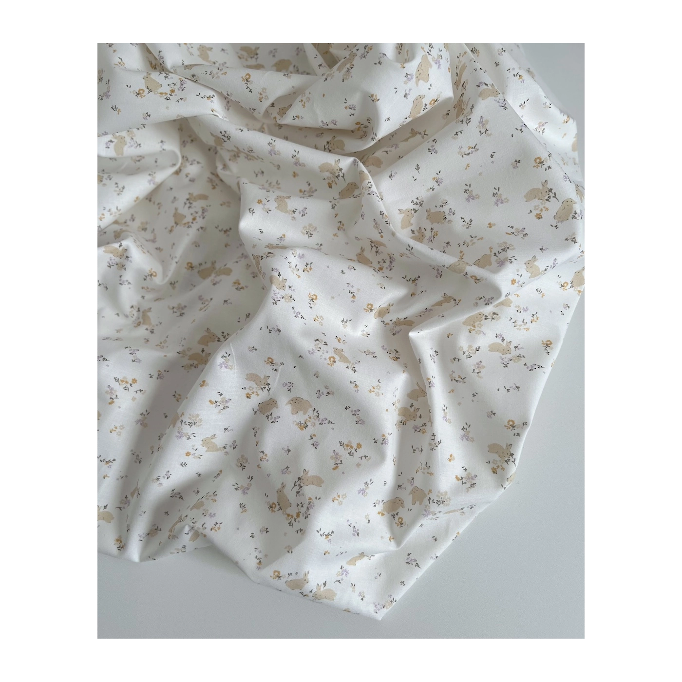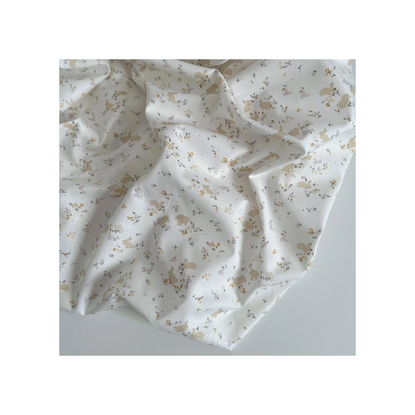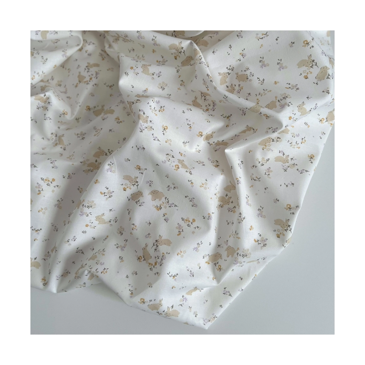 Darius - Popeline de coton BIO imprimé lapins et fleurs