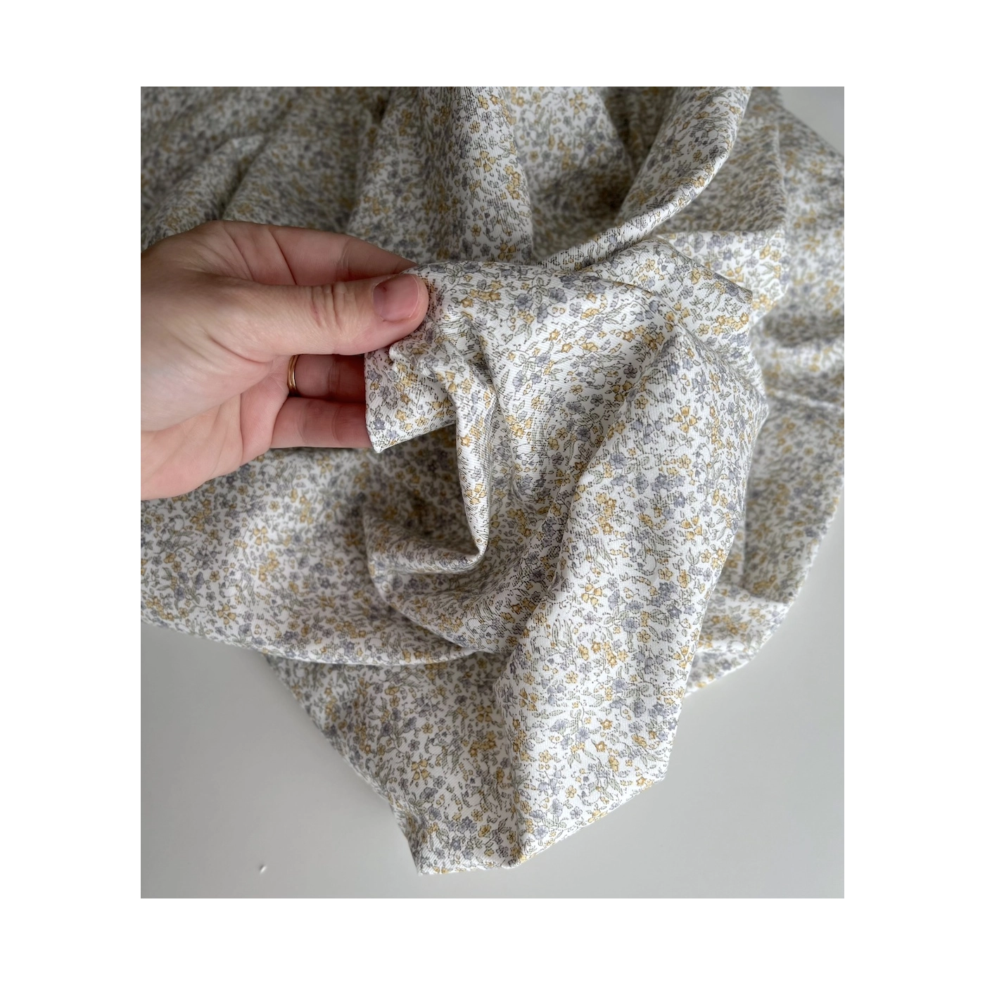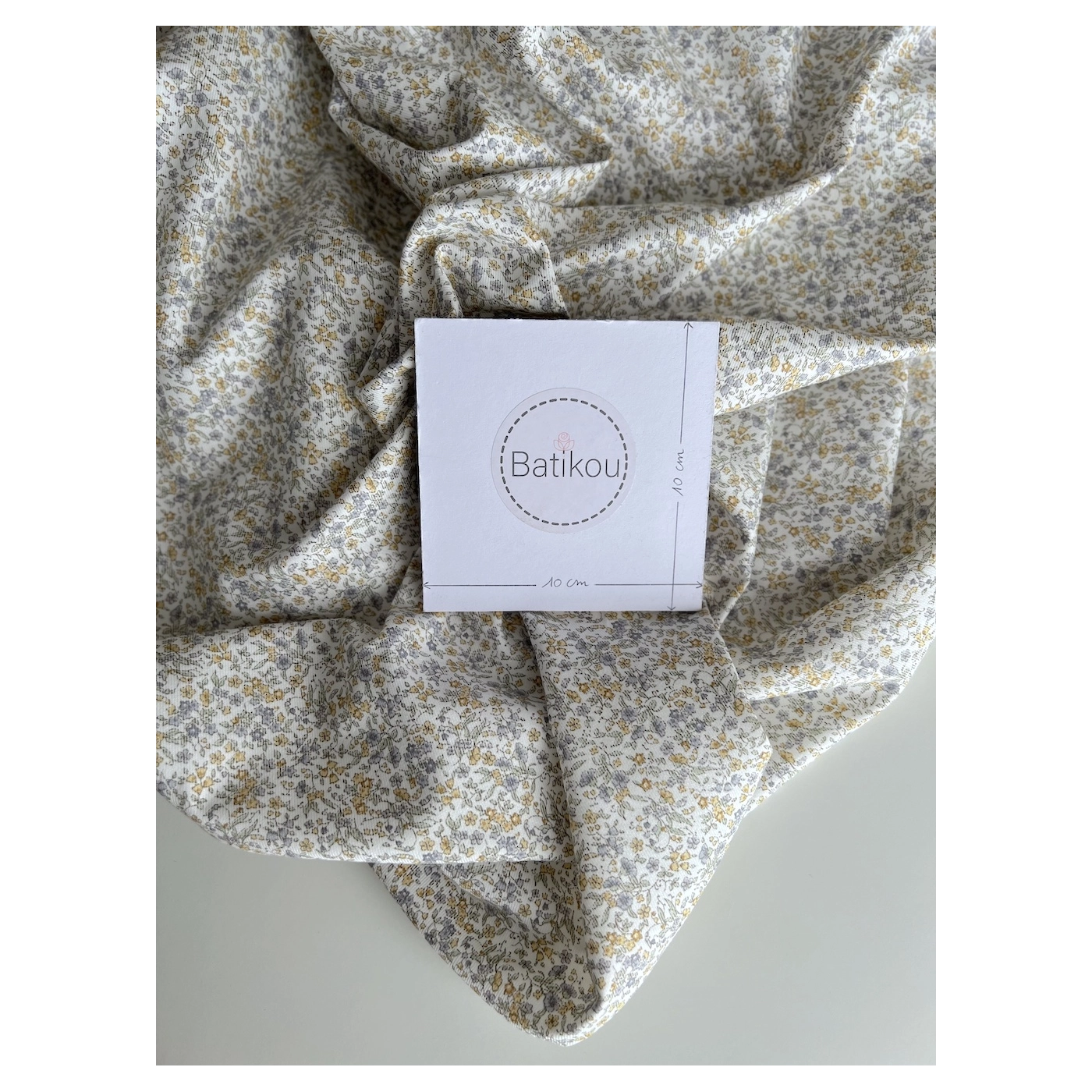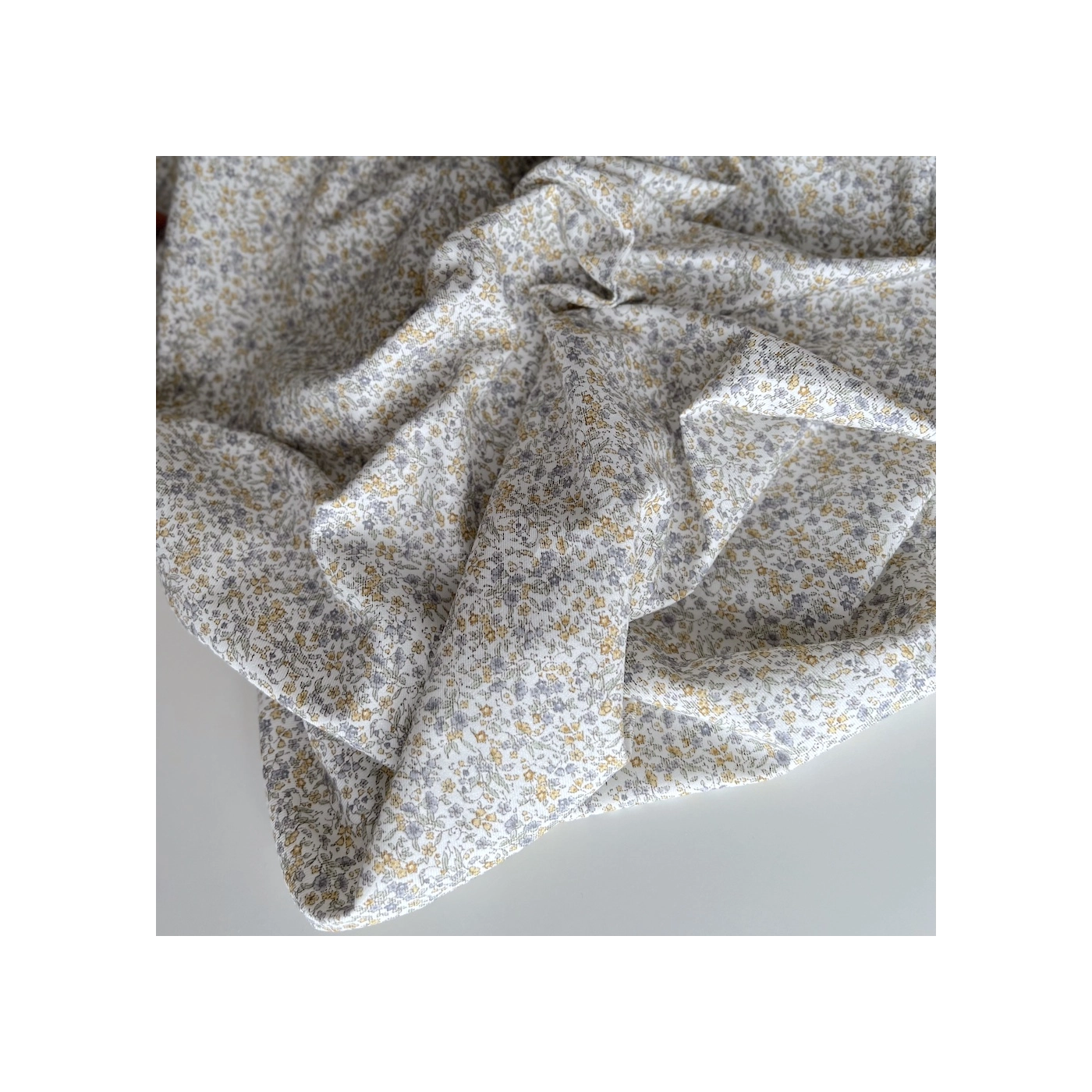 Camille - Tissu sergé / twill de coton organique imprimé fond écru