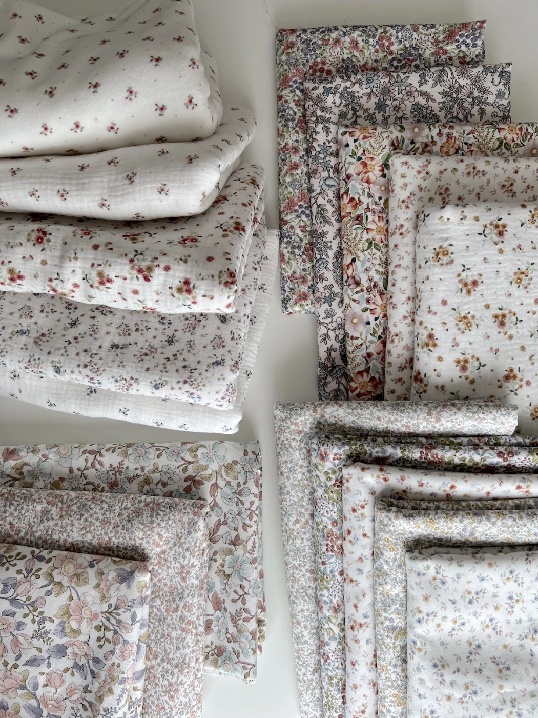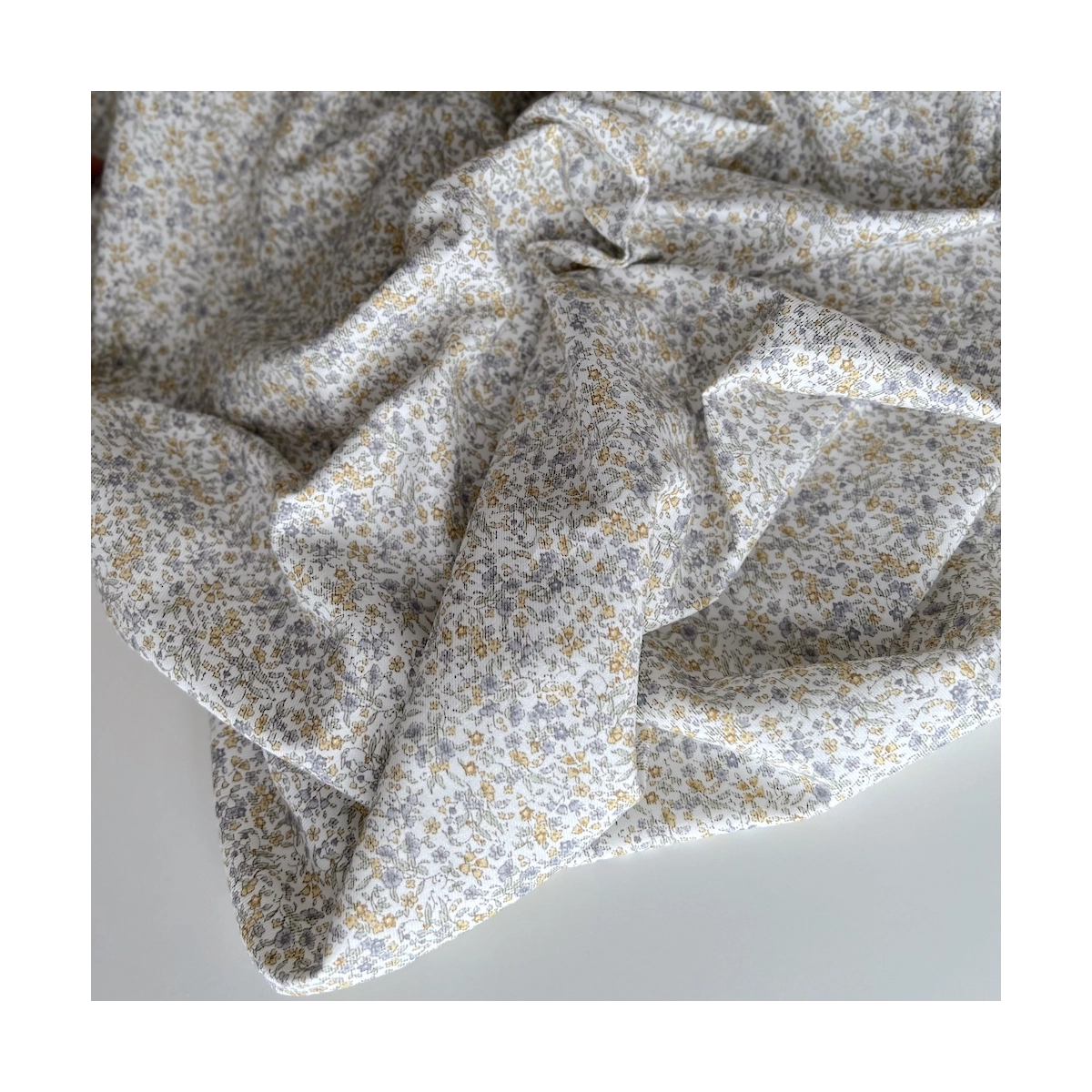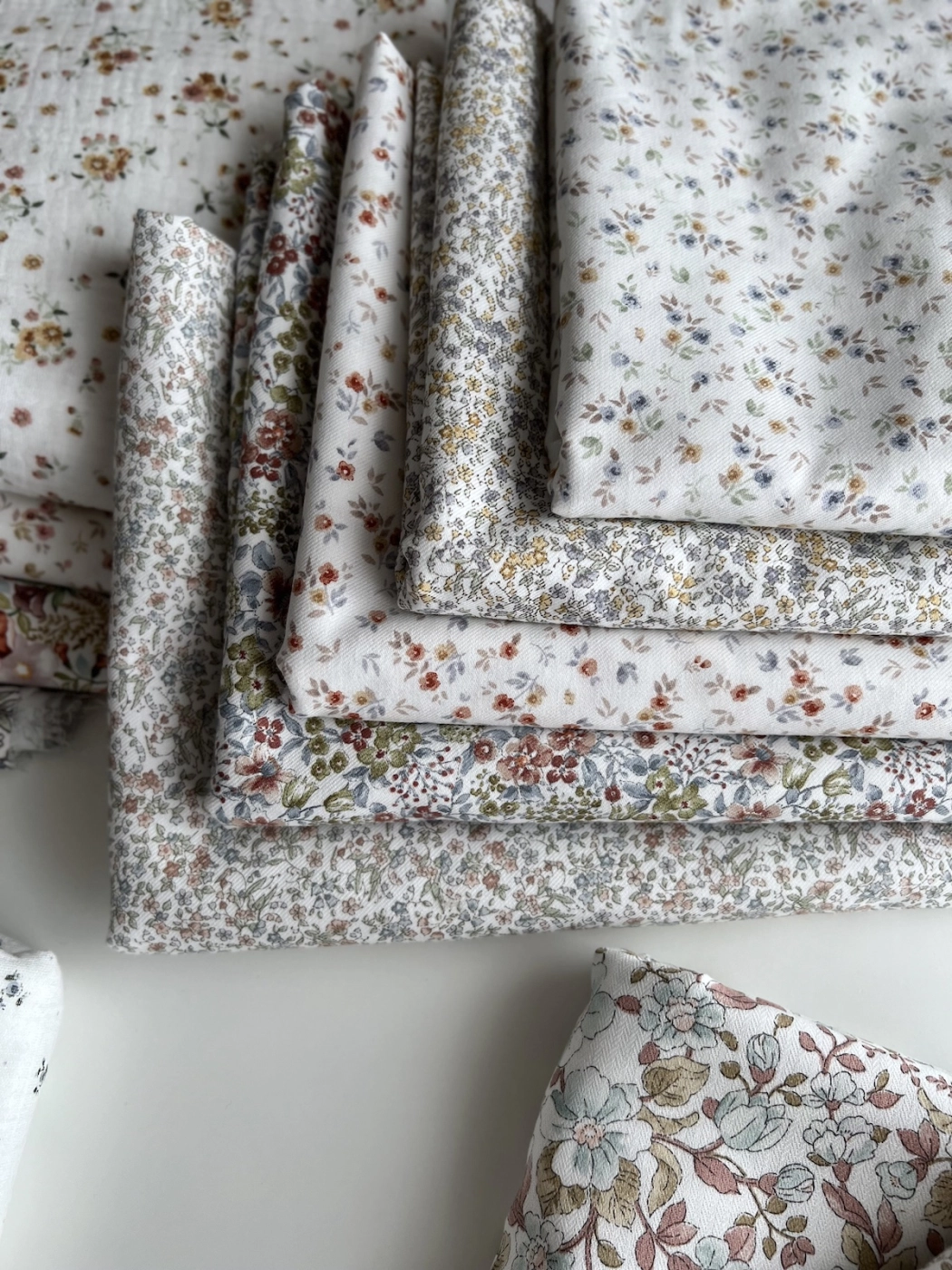 Camille - Tissu sergé / twill de coton organique imprimé fond écru