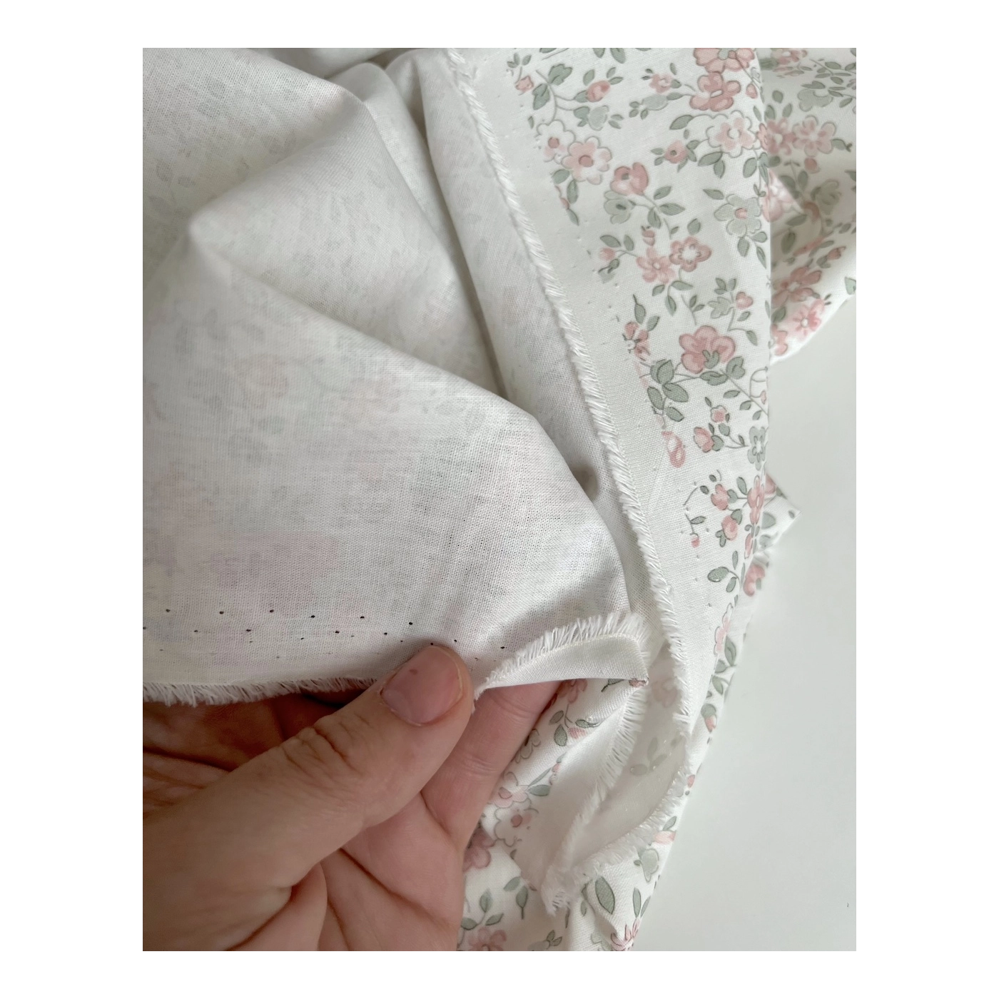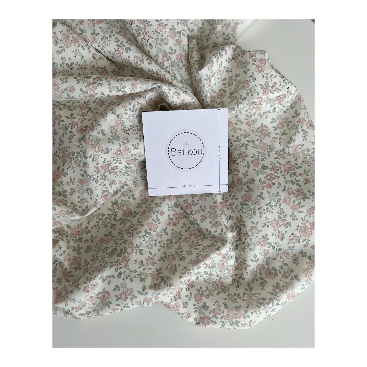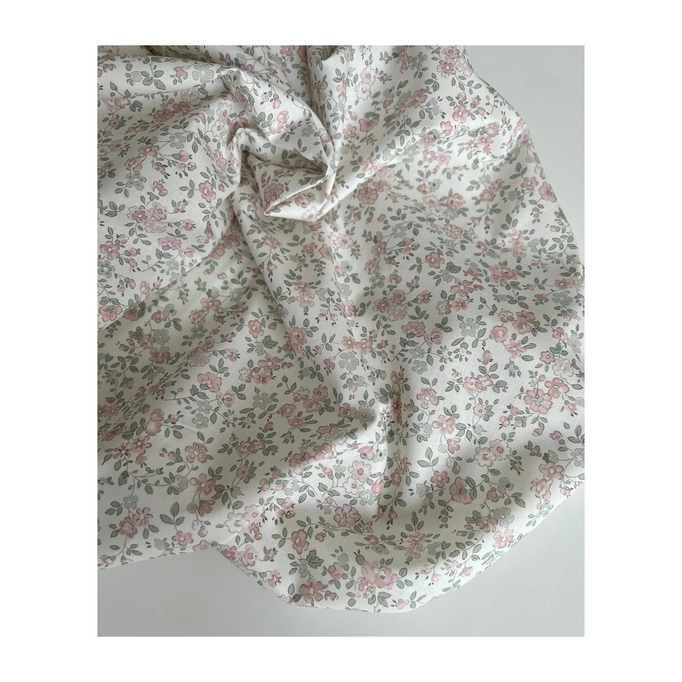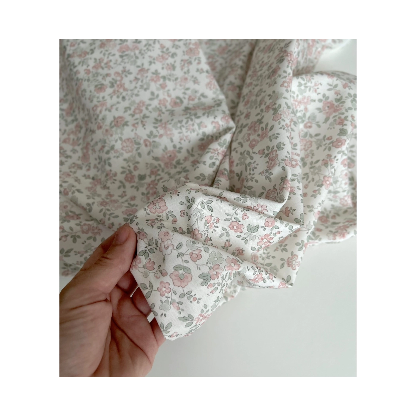 June - Popeline de coton douce BIO imprimé fleuri vert sauge et rose