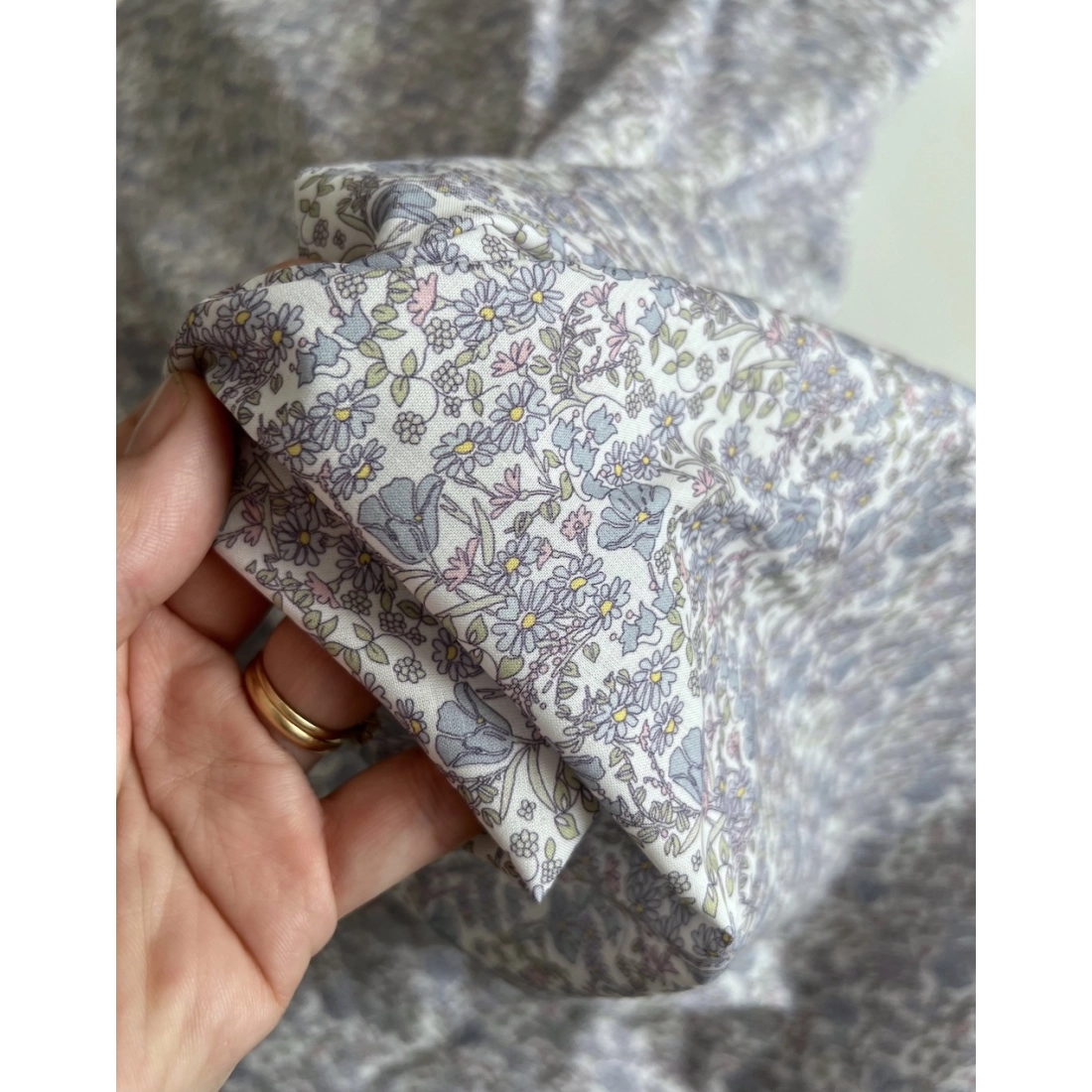 Double gaze de coton imprimés fleuri beige clair