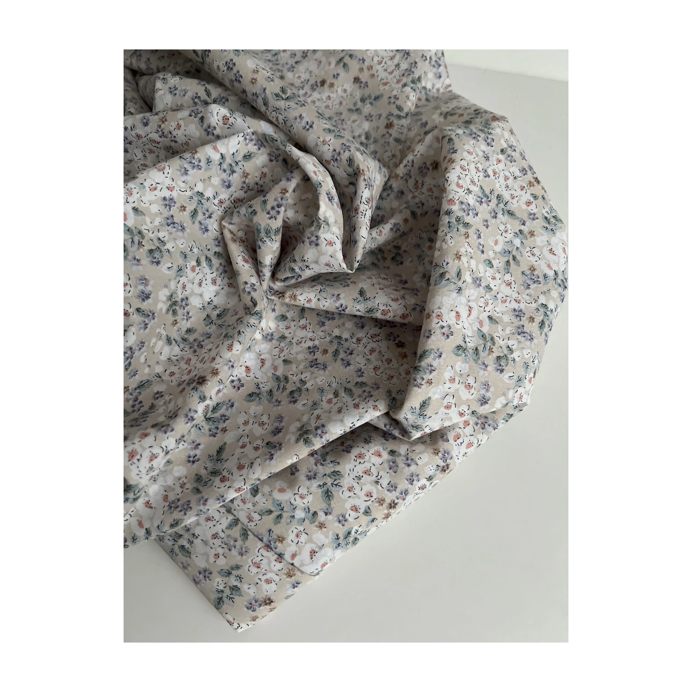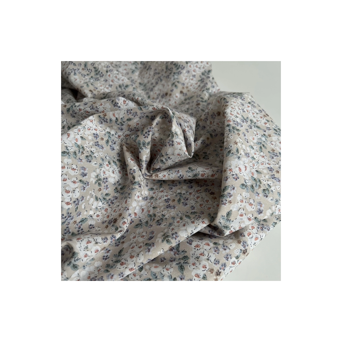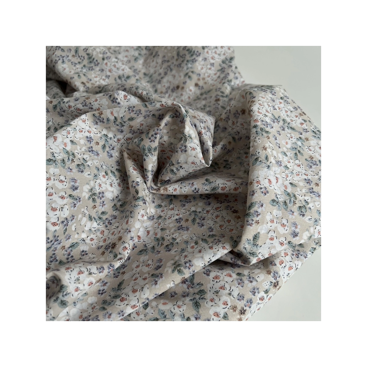 Clarence - Batiste de coton SILKYNE à imprimé fleuri fond beige