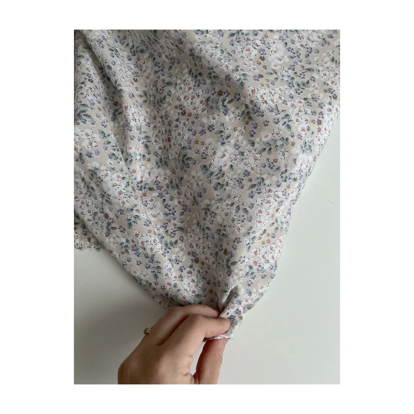 Madeleine - Double gaze de coton fond écru motif fleuri