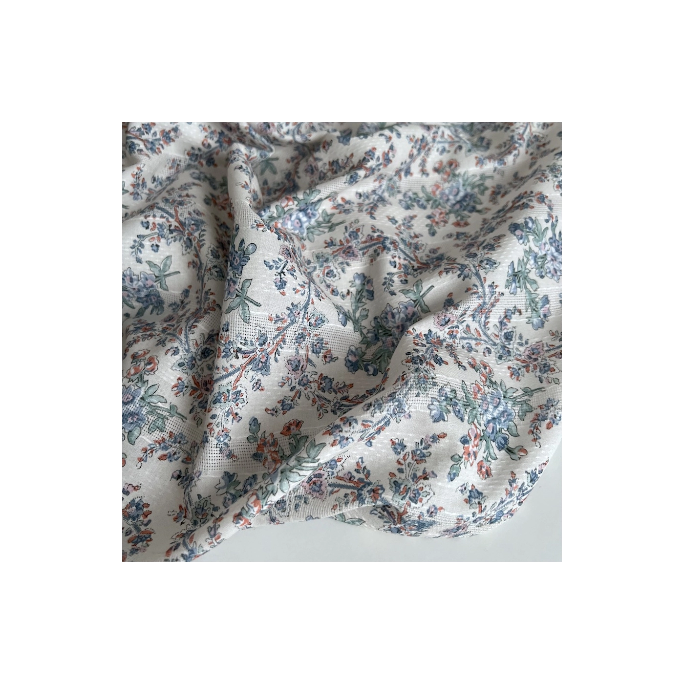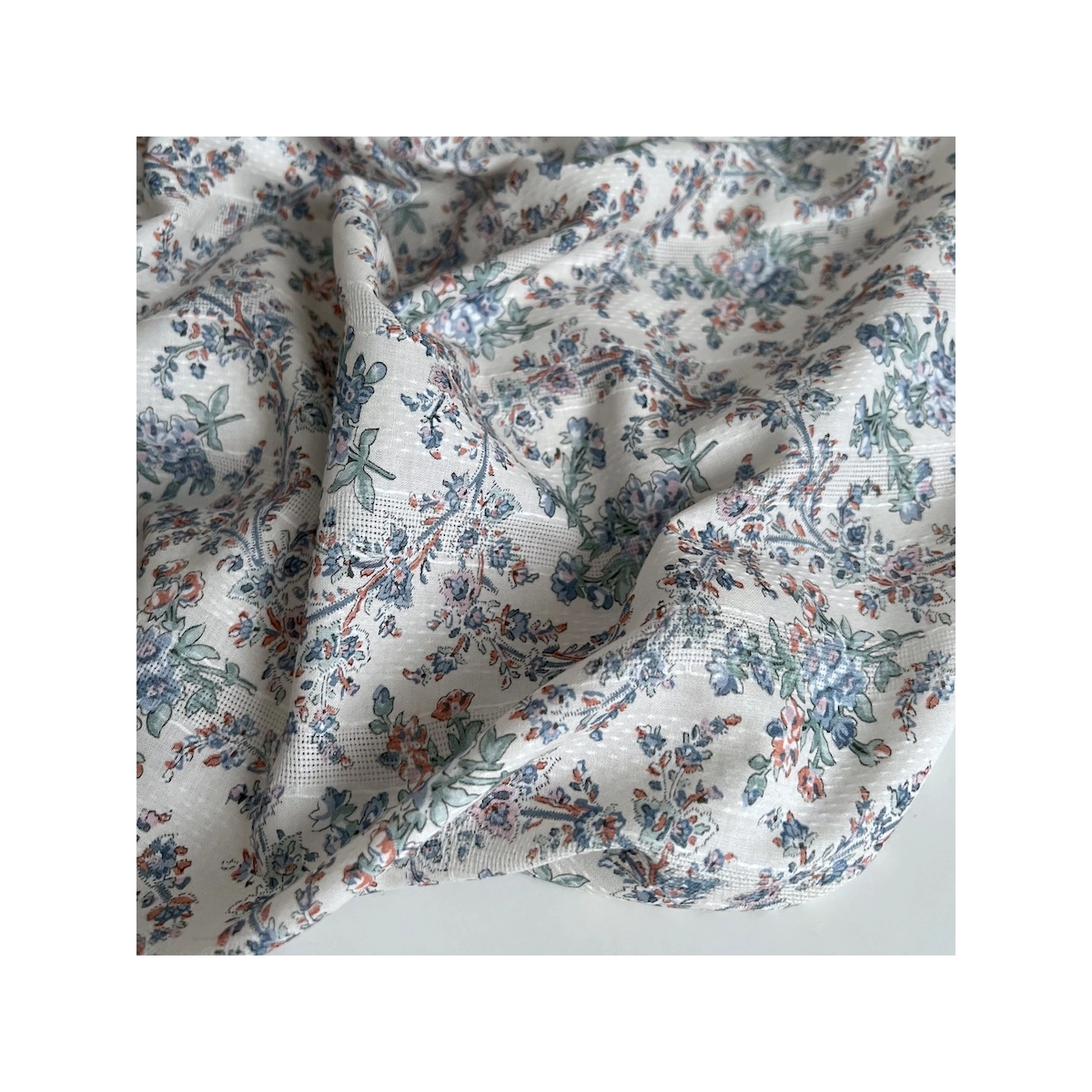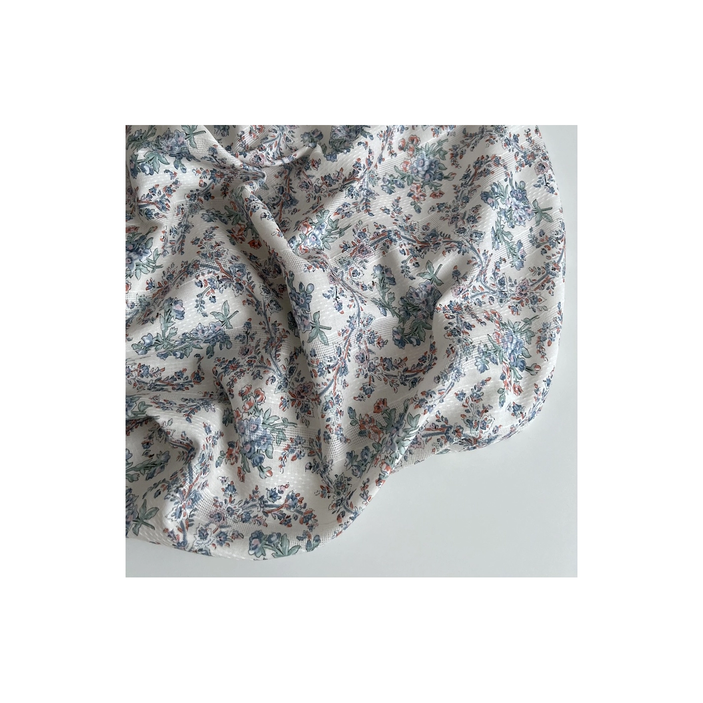 Zina - Voile de coton texturé imprimé fleuri bleu / vert