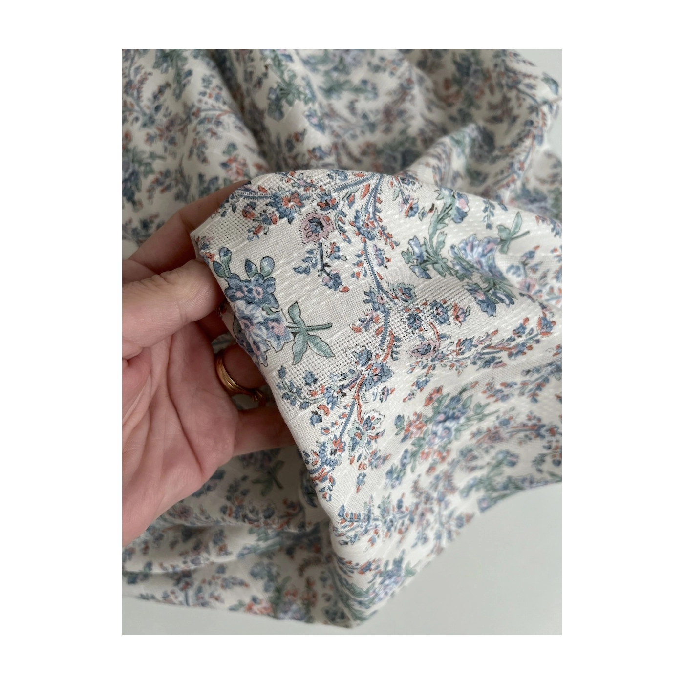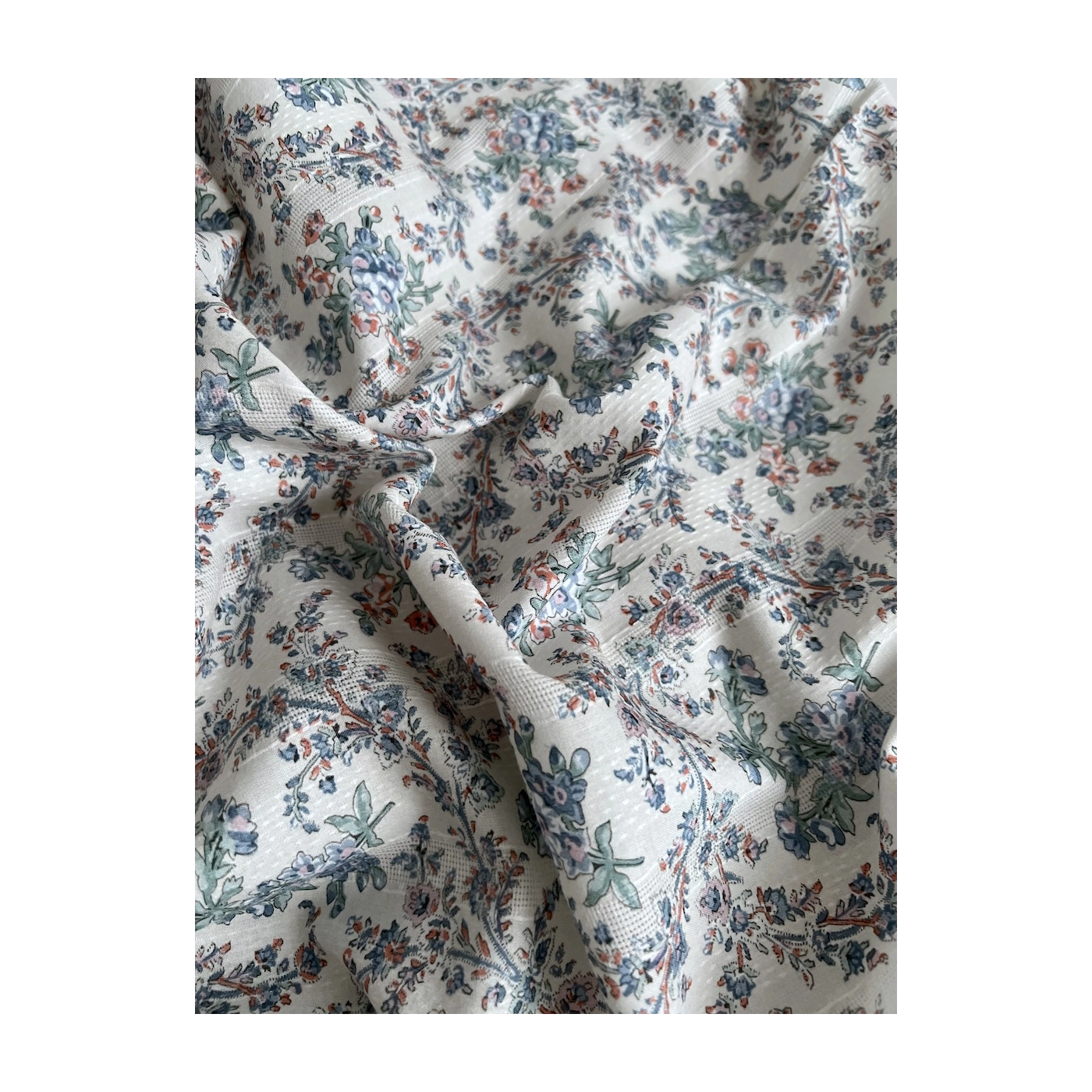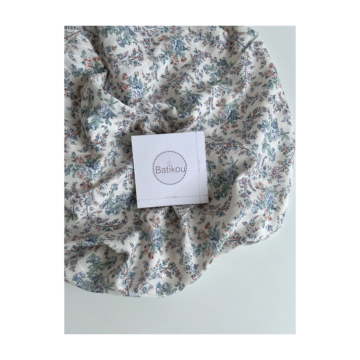 Zina - Voile de coton texturé imprimé fleuri bleu / vert