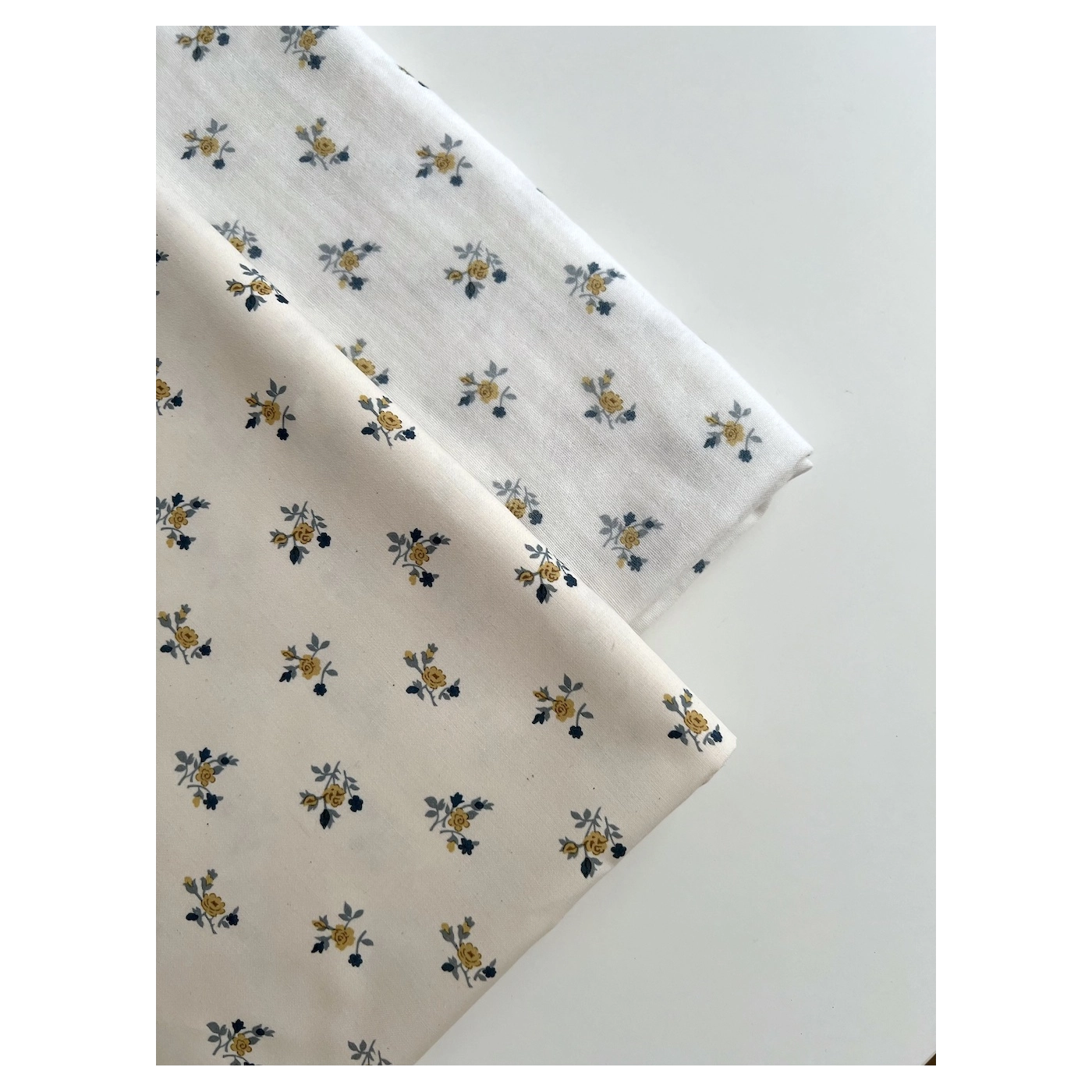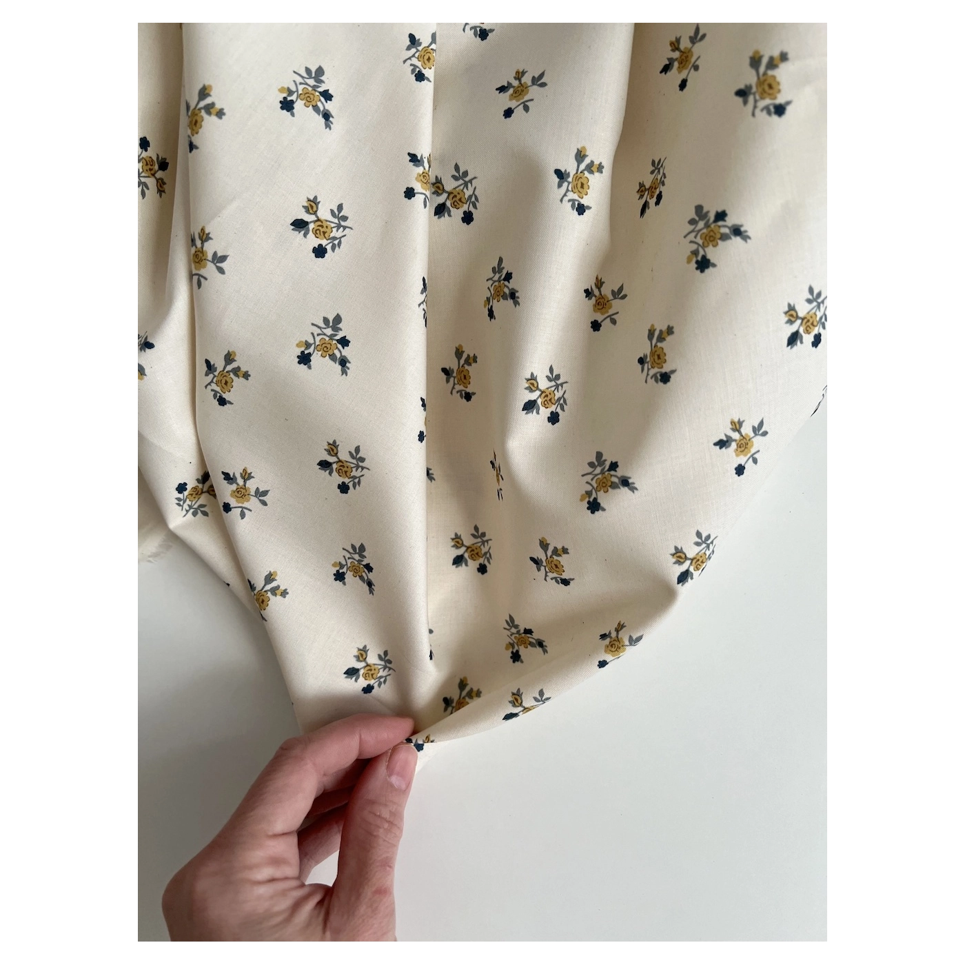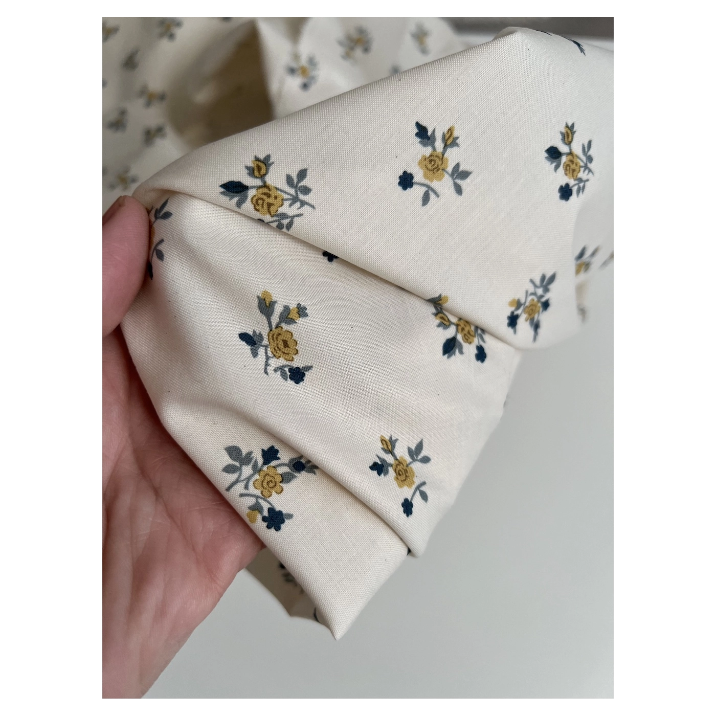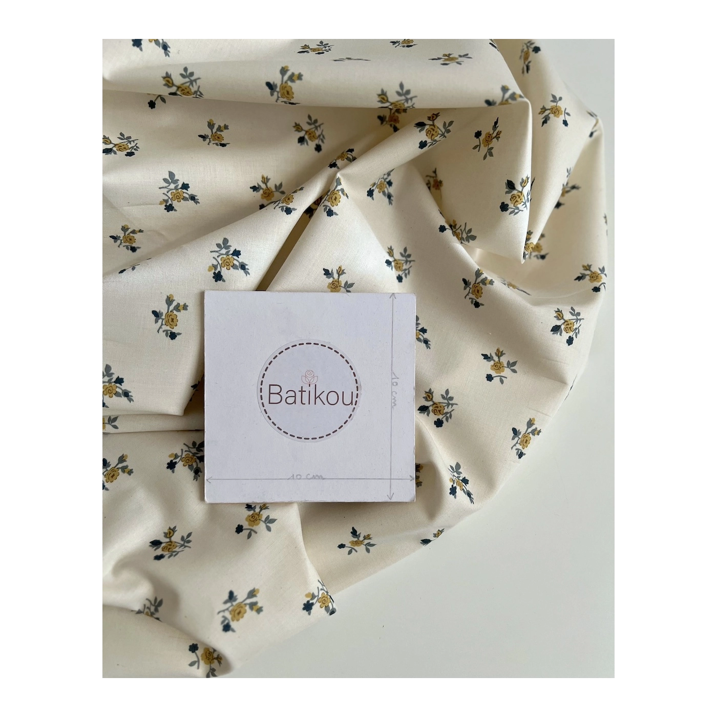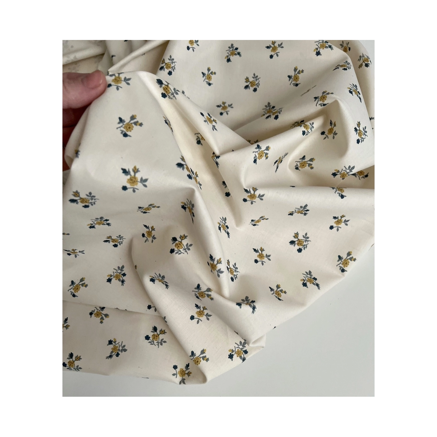 Celine - Popeline douce coton organique fond ivoire imprimé fleuri marine / moutarde