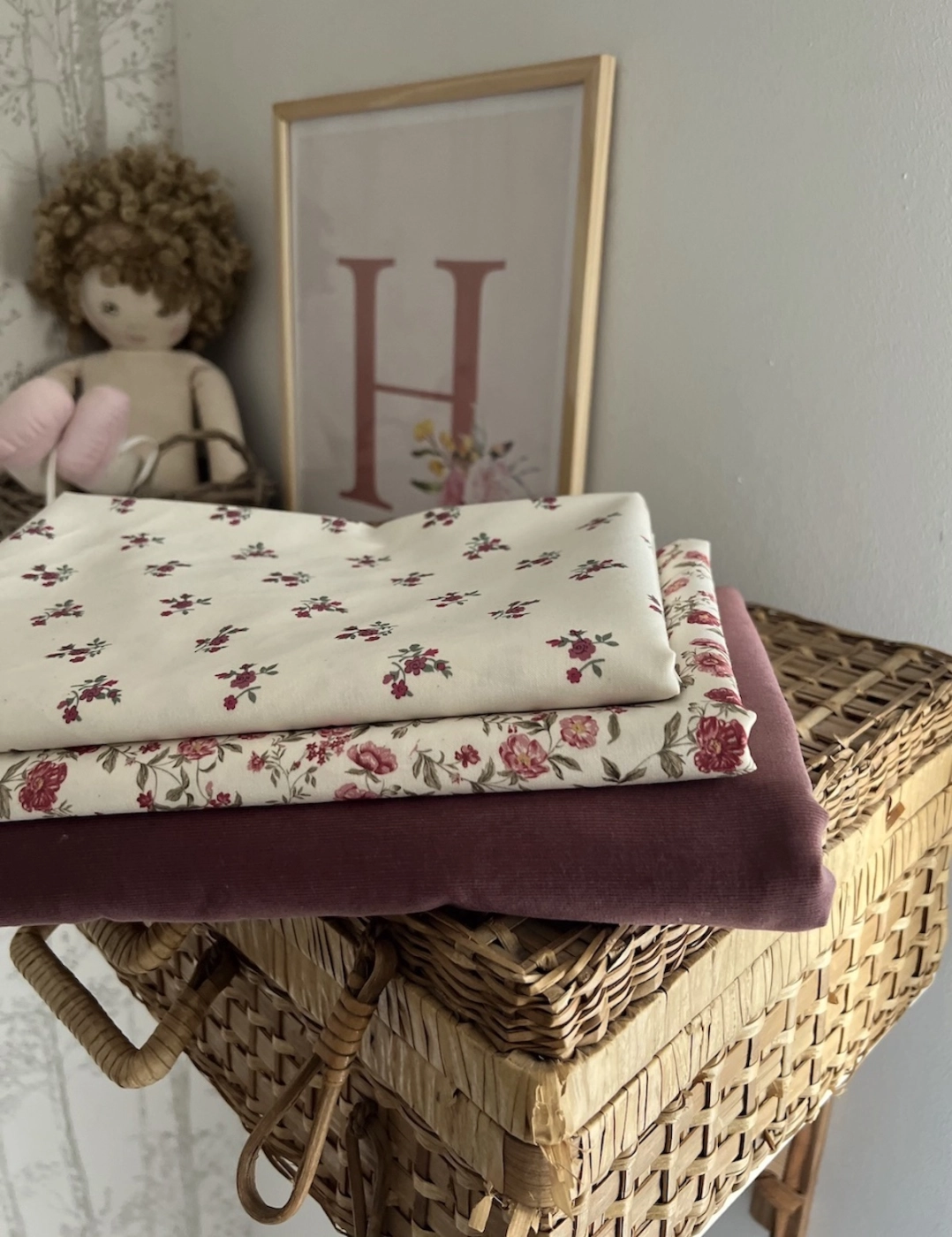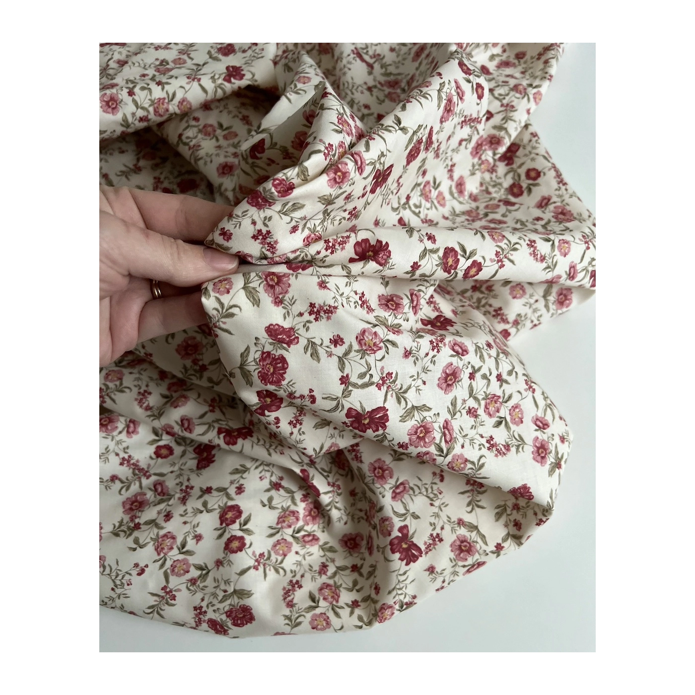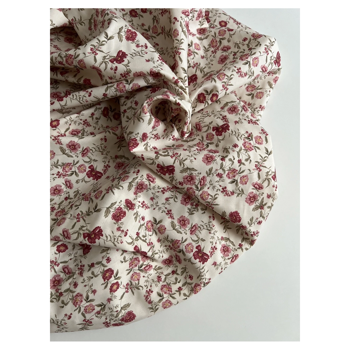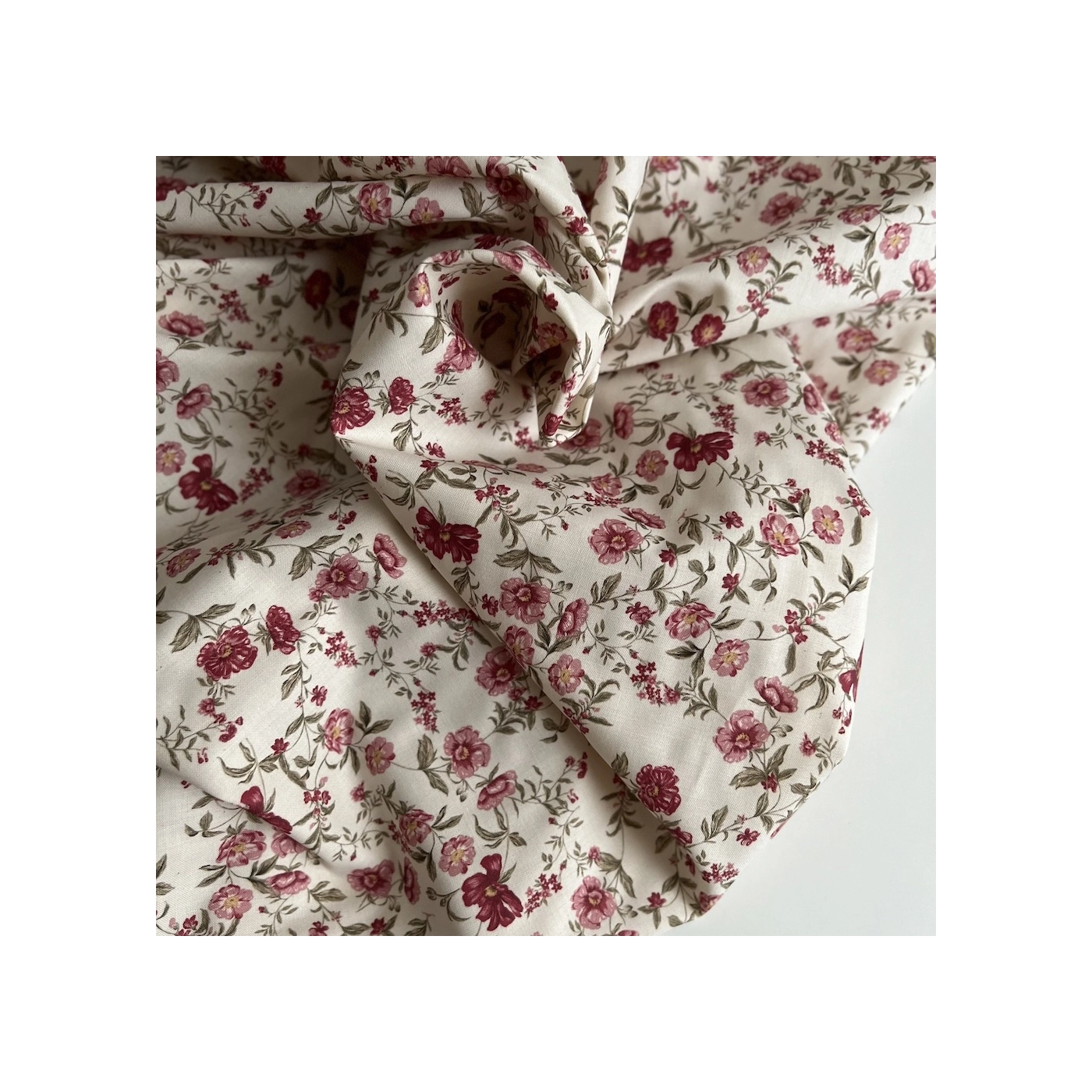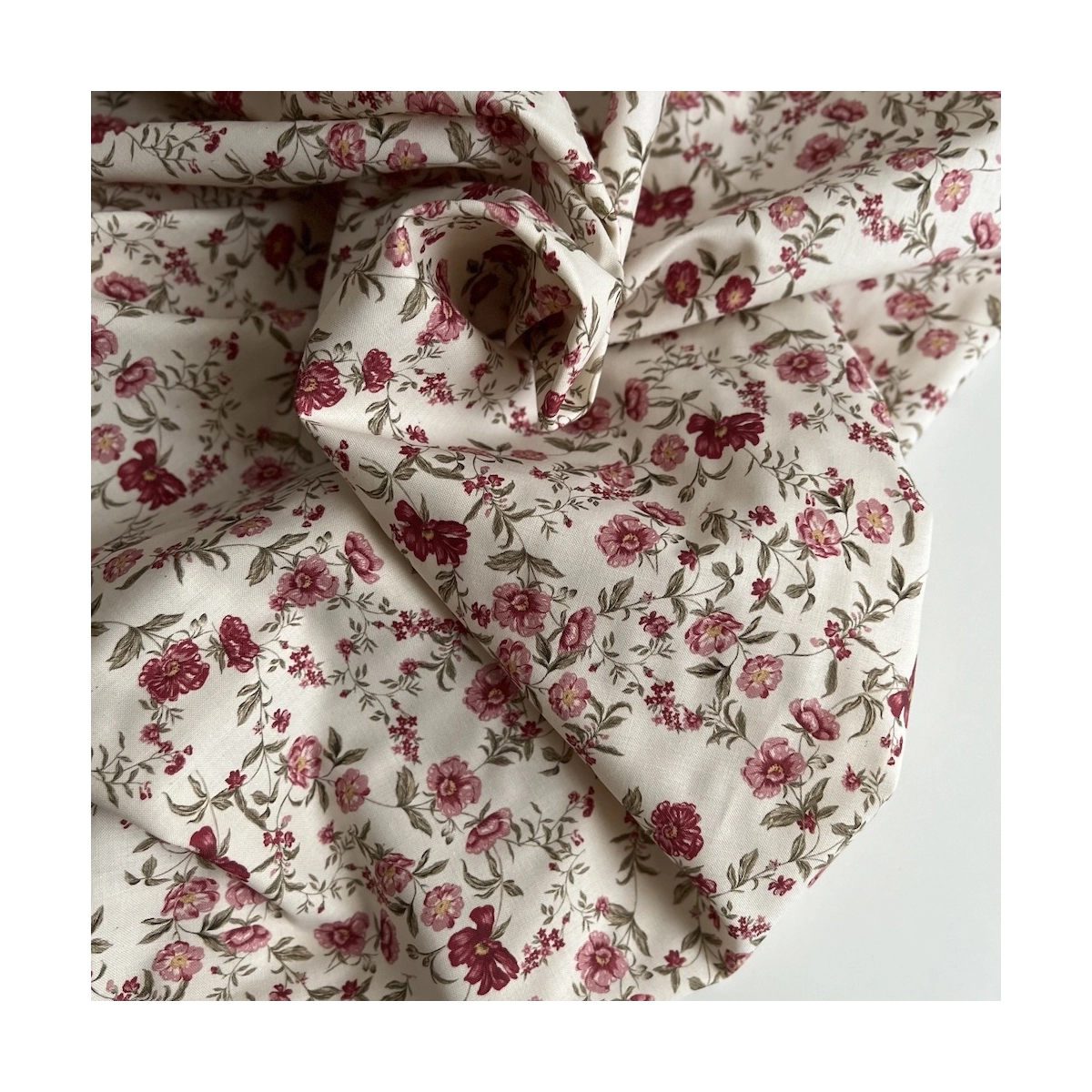 Romy - Popeline de coton organique imprimé fleuri figue / framboise