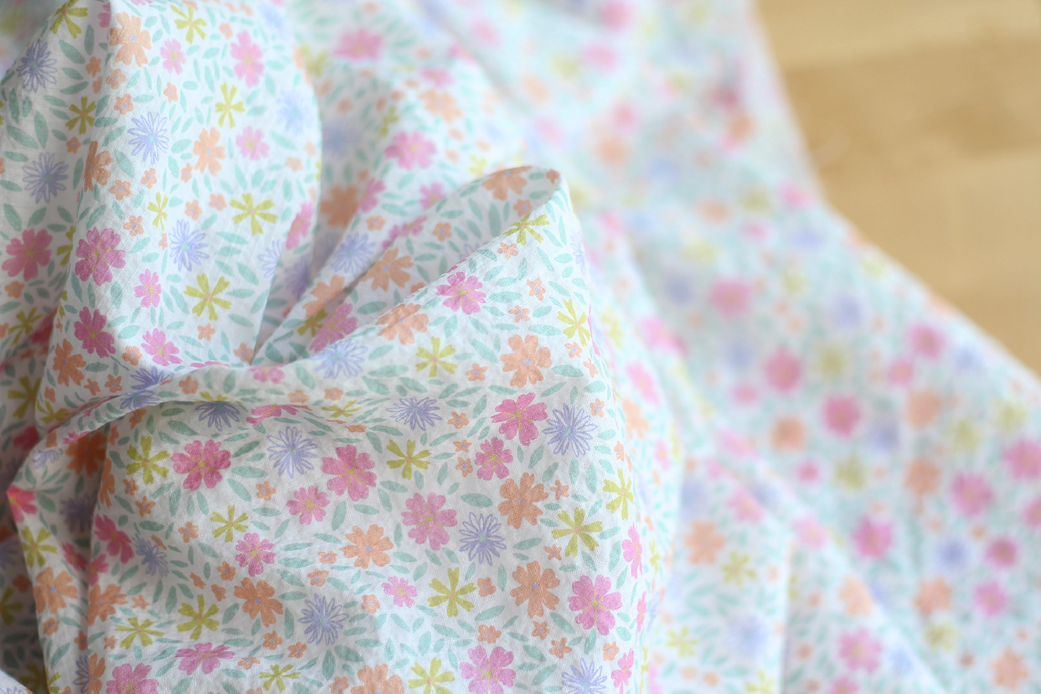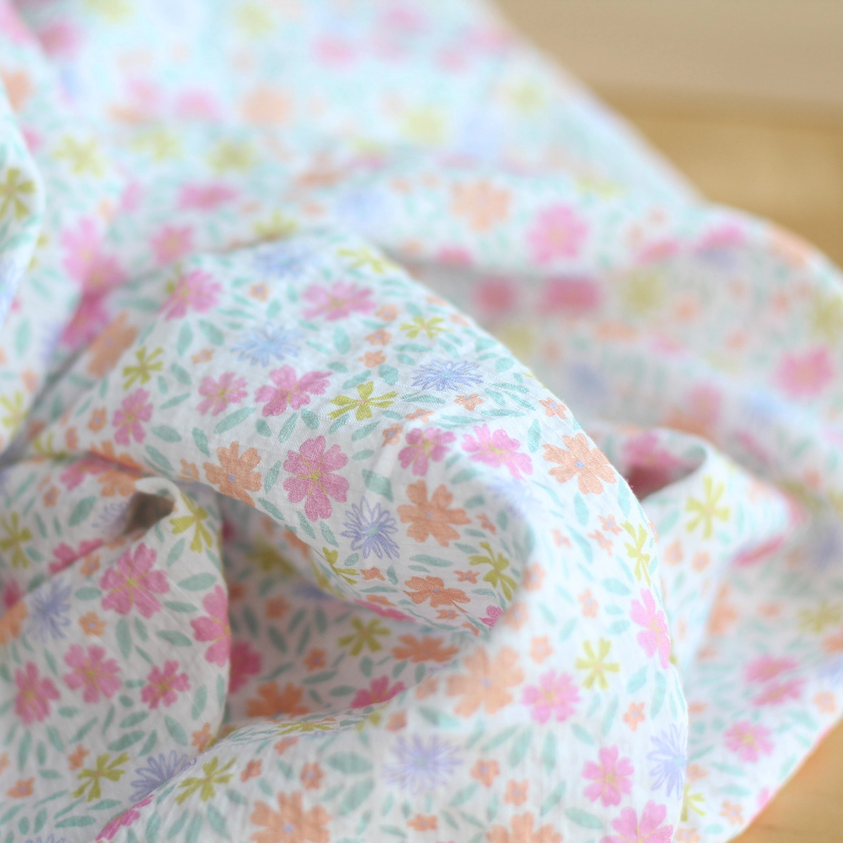 Pauline - Tissu coton texturé gaufré fleuri frais