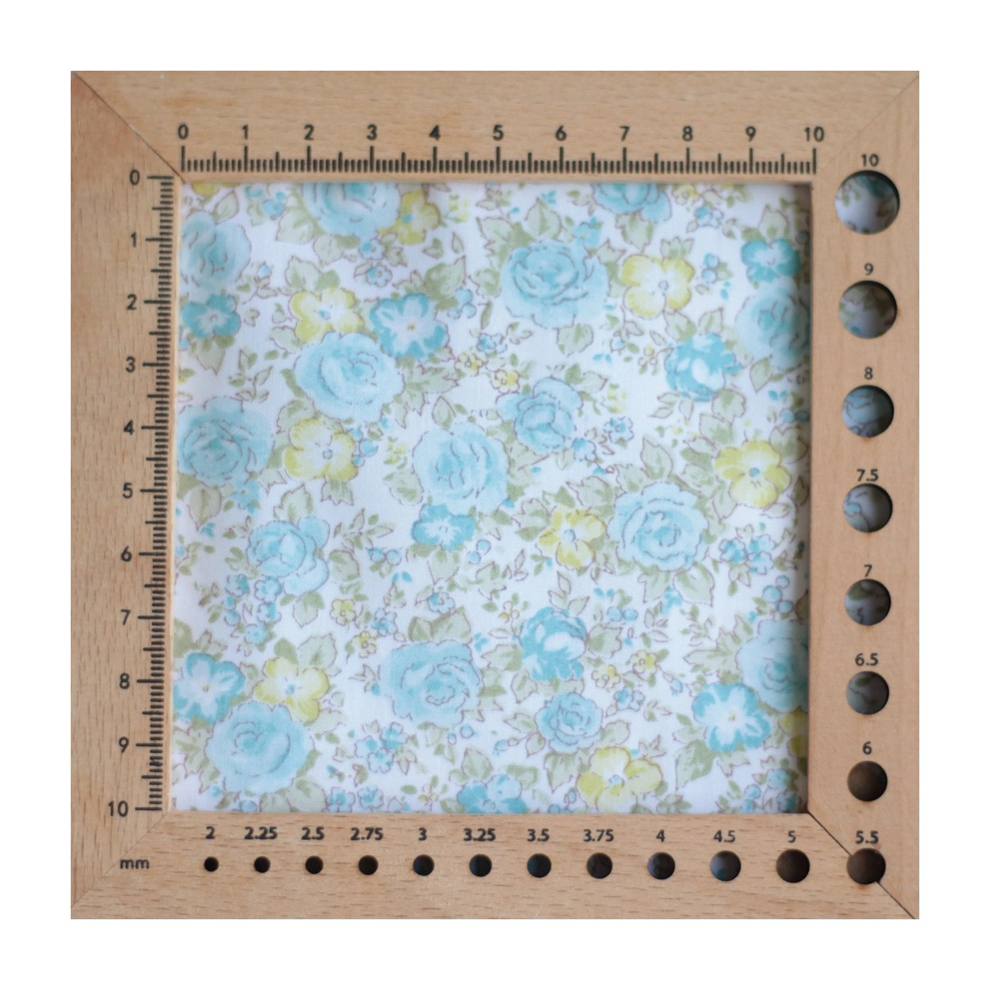 La photo avec le carré blanc permet d'avoir un repère de mesure (le carré fait 10cm de côté) et de couleur, en effet il est blanc optique. Cette indication peut vous permettre de mieux percevoir le rendu du tissu.