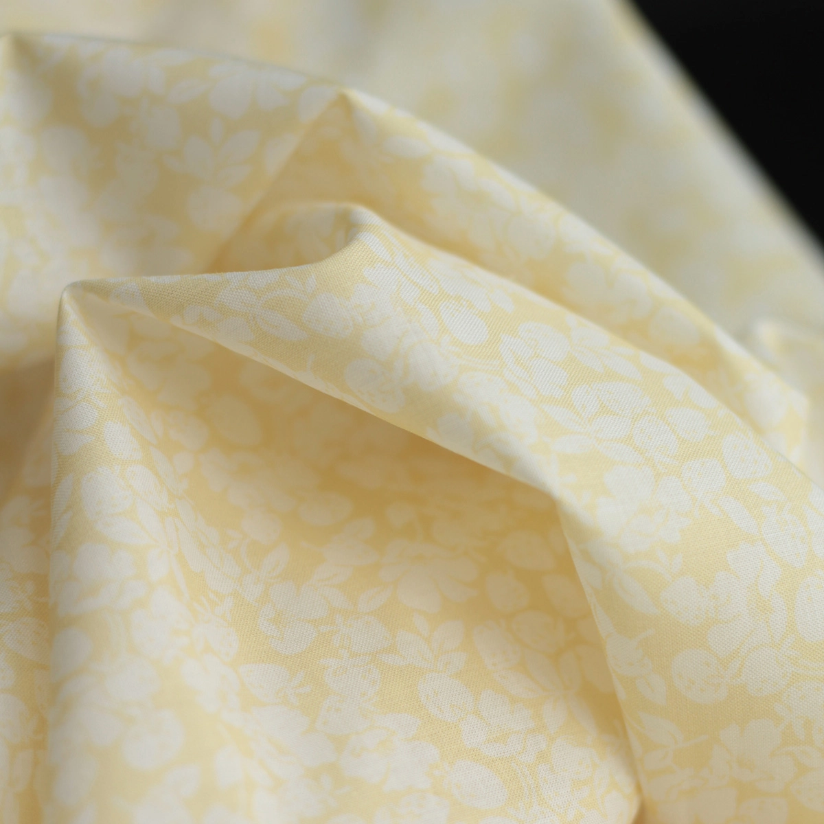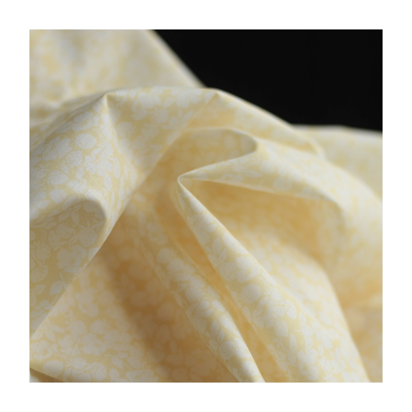 Deva - Batiste de coton douce à imprimé fraises fond jaune pastel