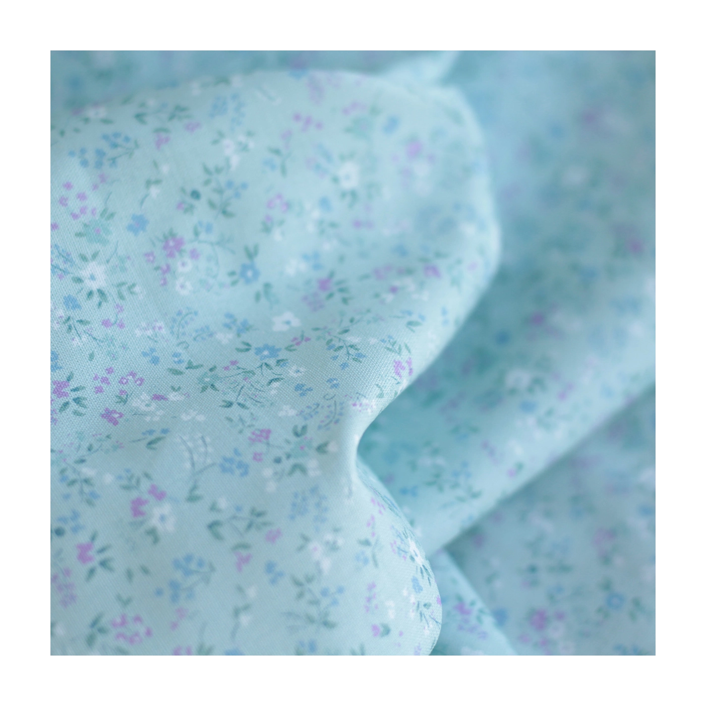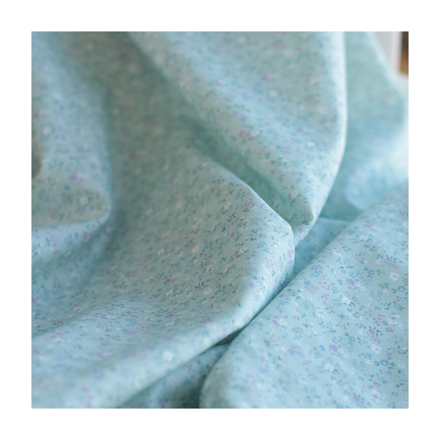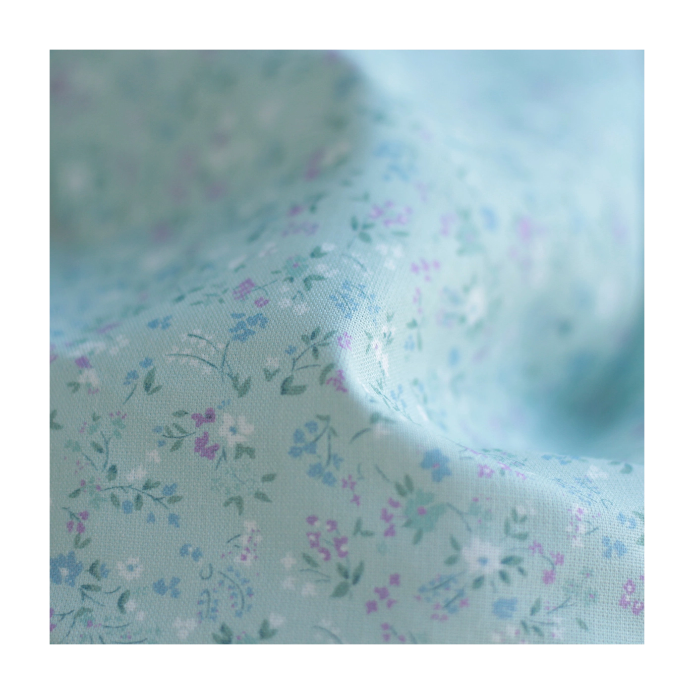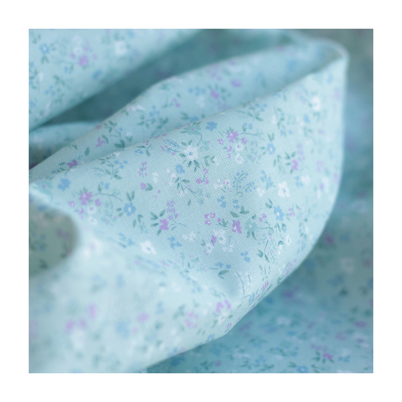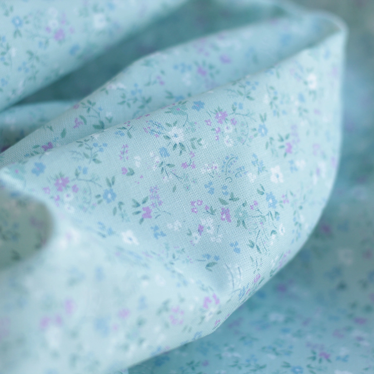 Ingrid - Popeline de coton BIO imprimé fleuri fond celadon