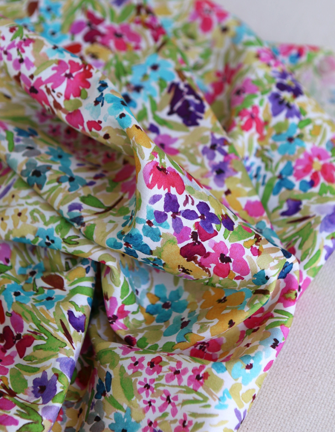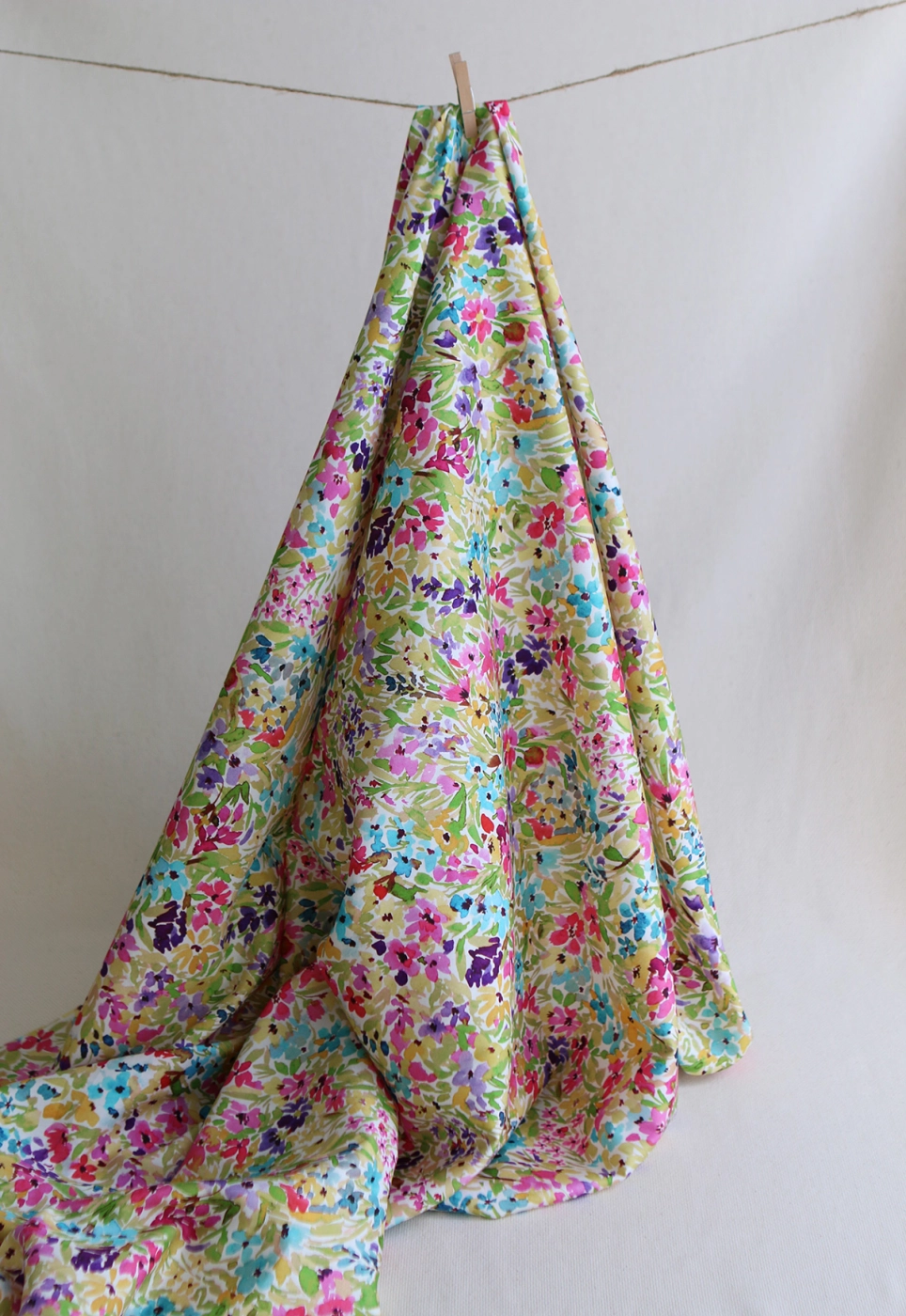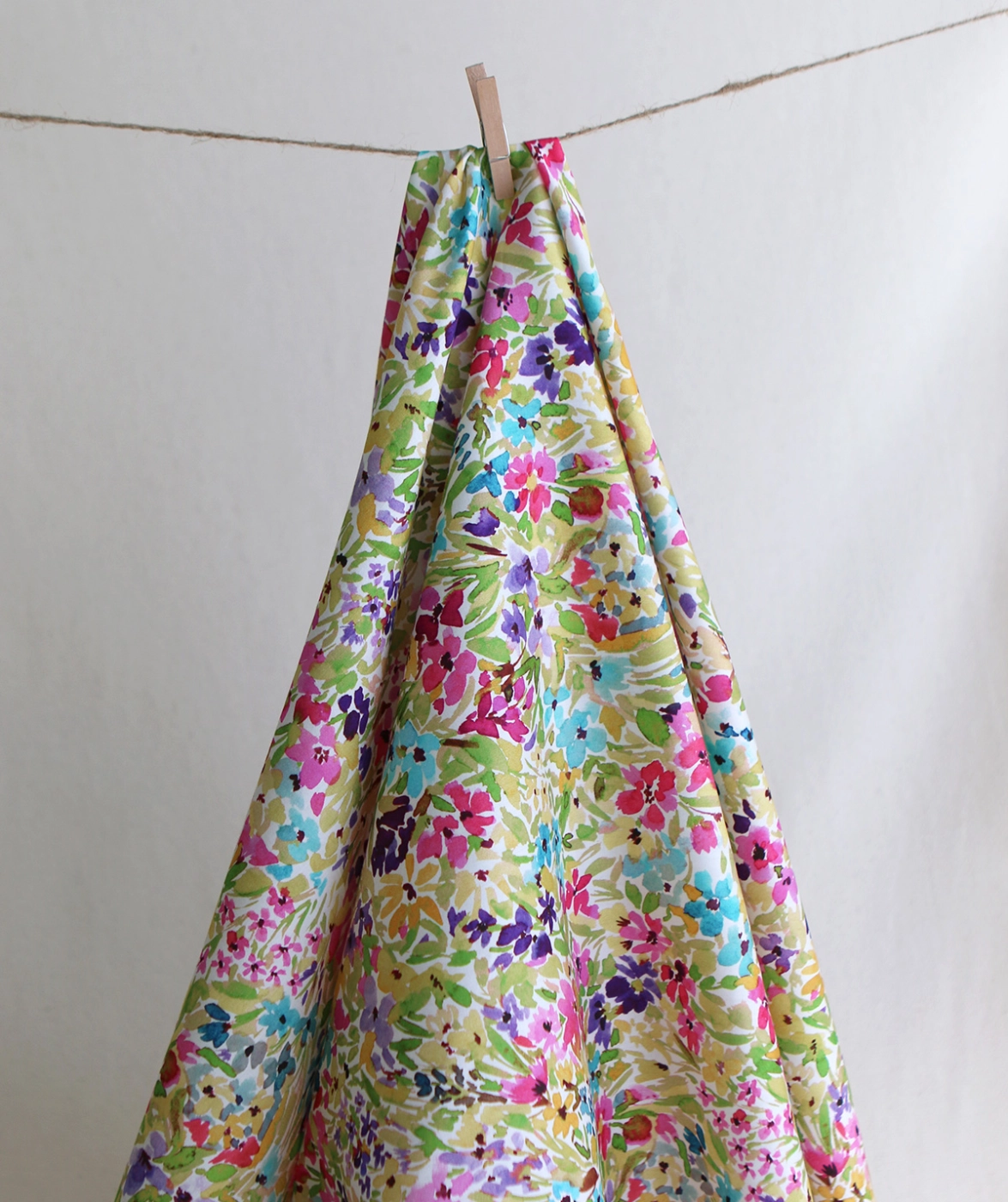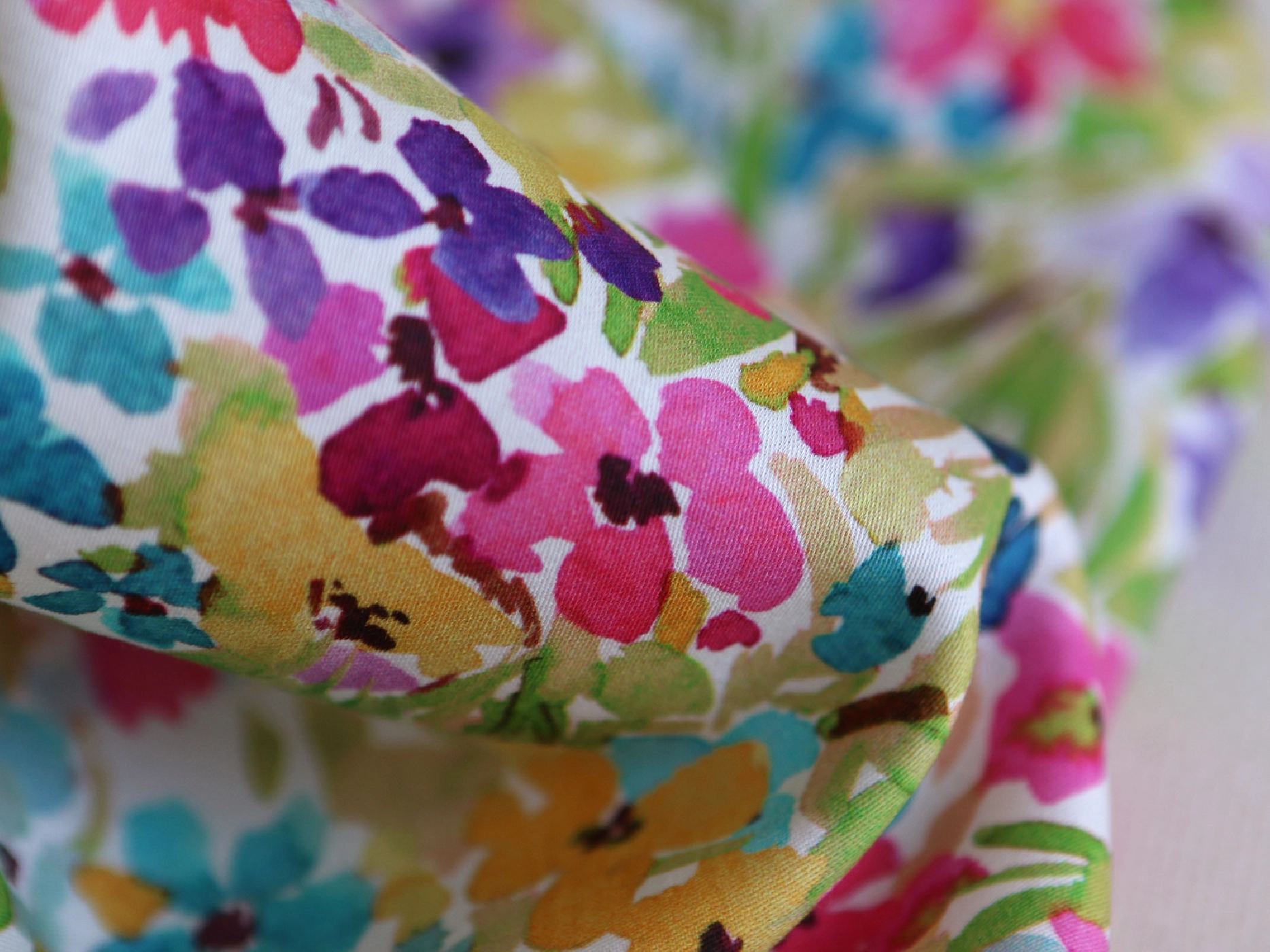 Monica - Coton satiné bio à imprimé fleuri aquarelle