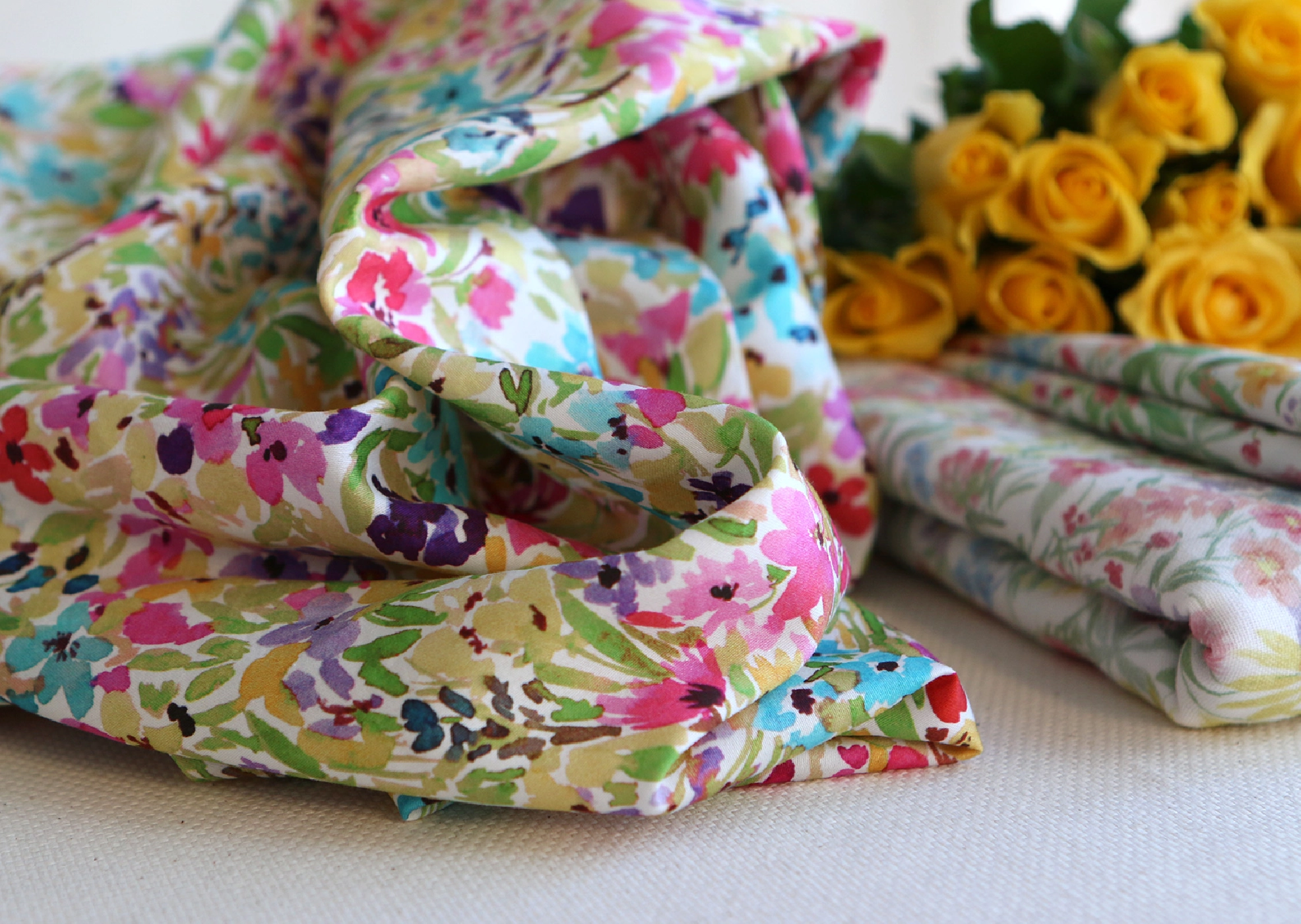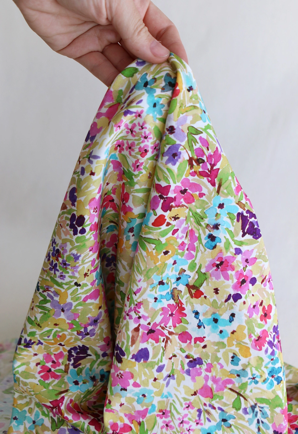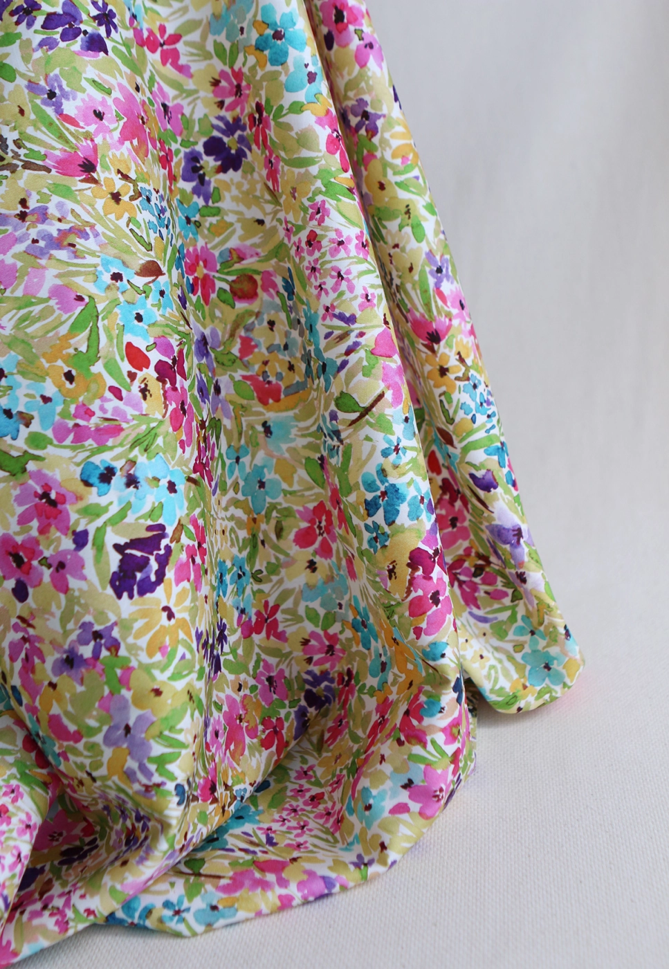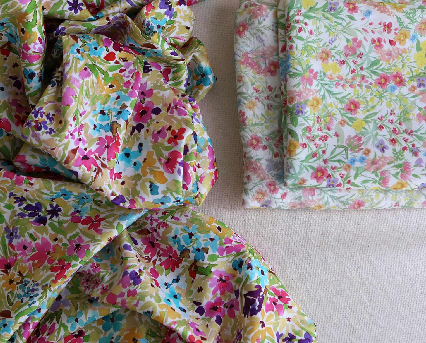 Monica - Coton satiné bio à imprimé fleuri aquarelle