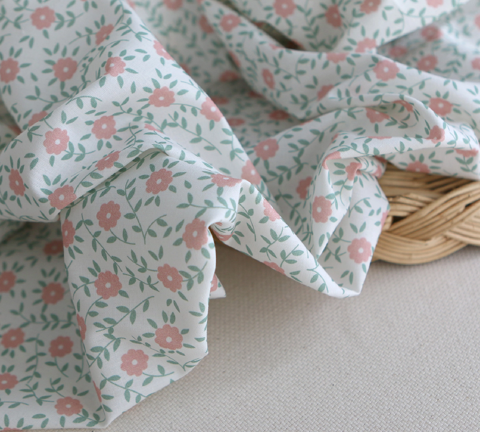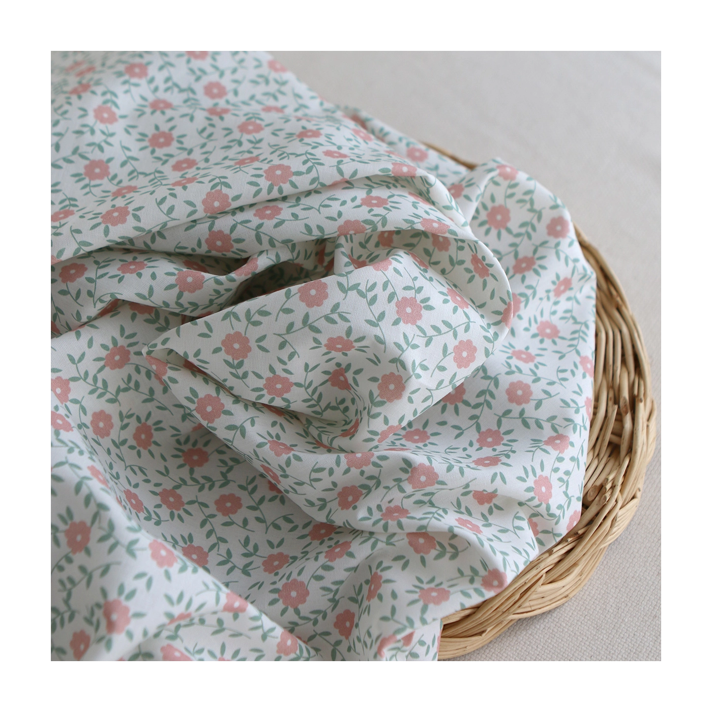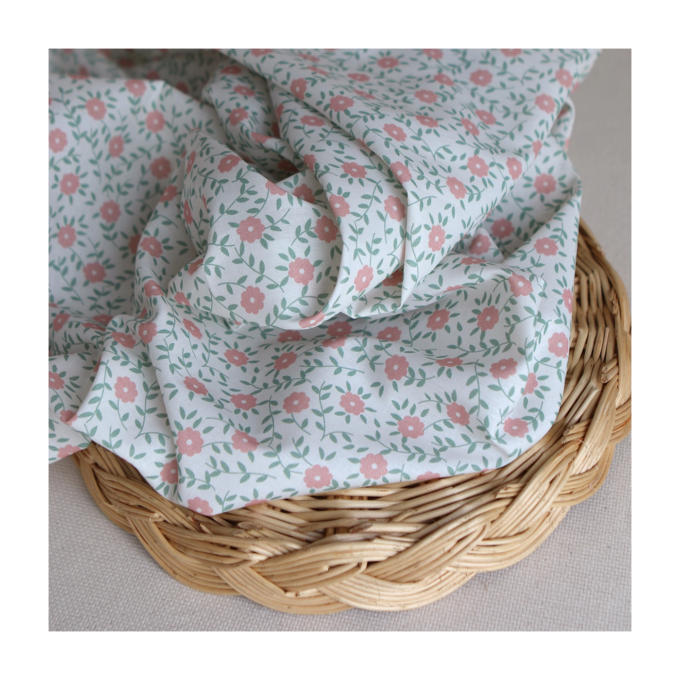 - Coloris fond blanc fleuri corail et sauge