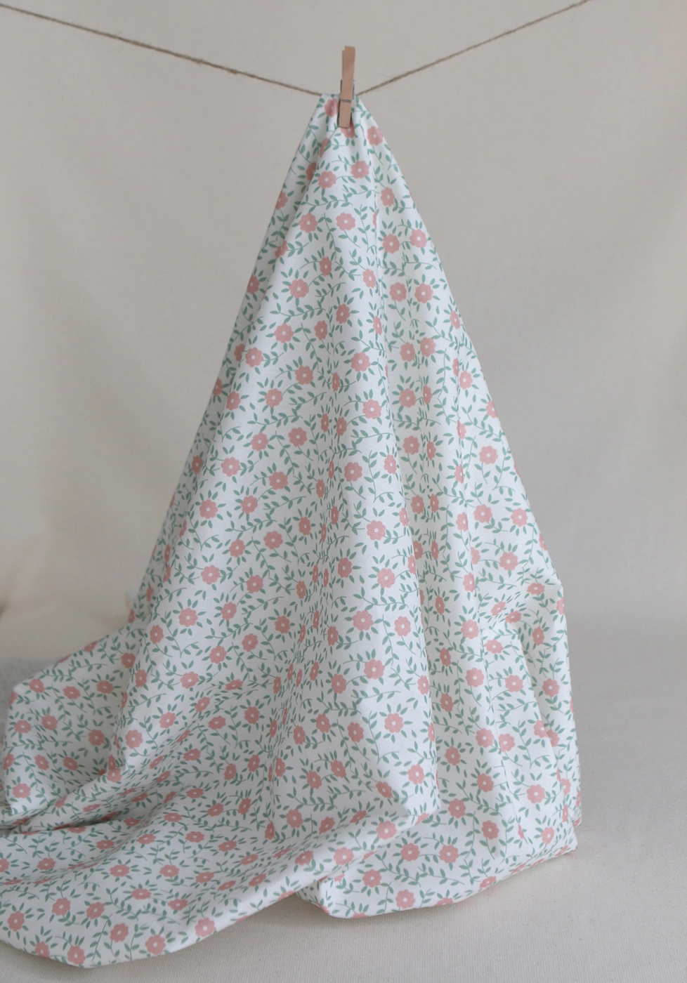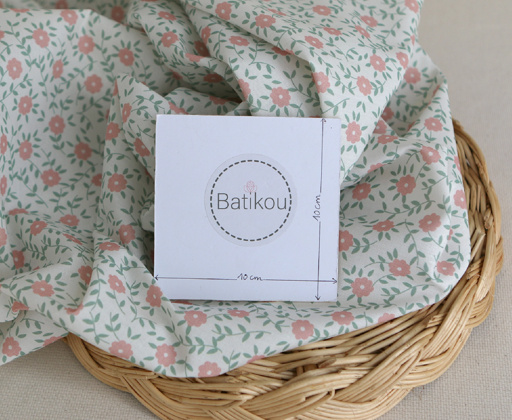 Gaspard - Popeline coton BIO imprimé fleuri corail et sauge