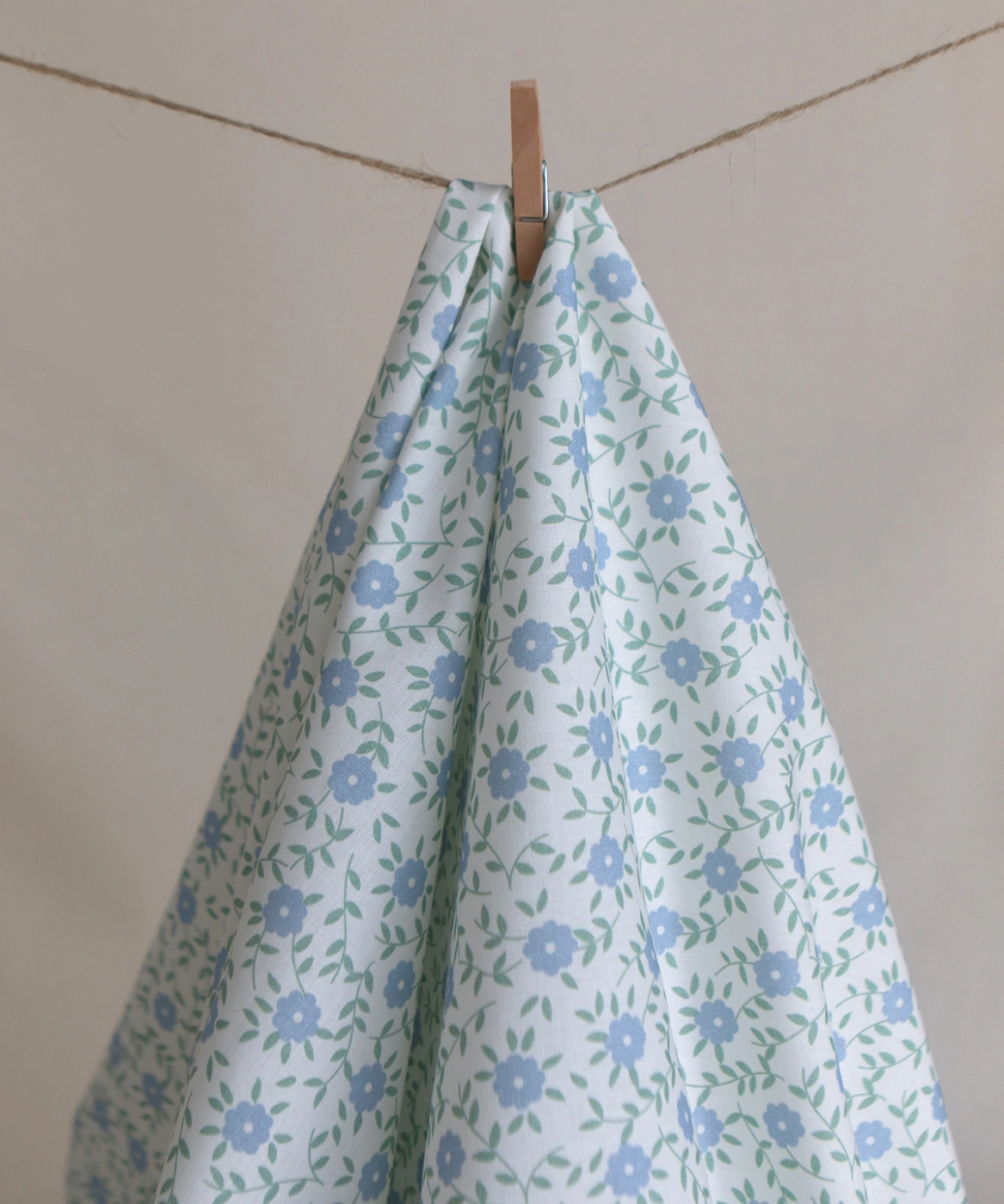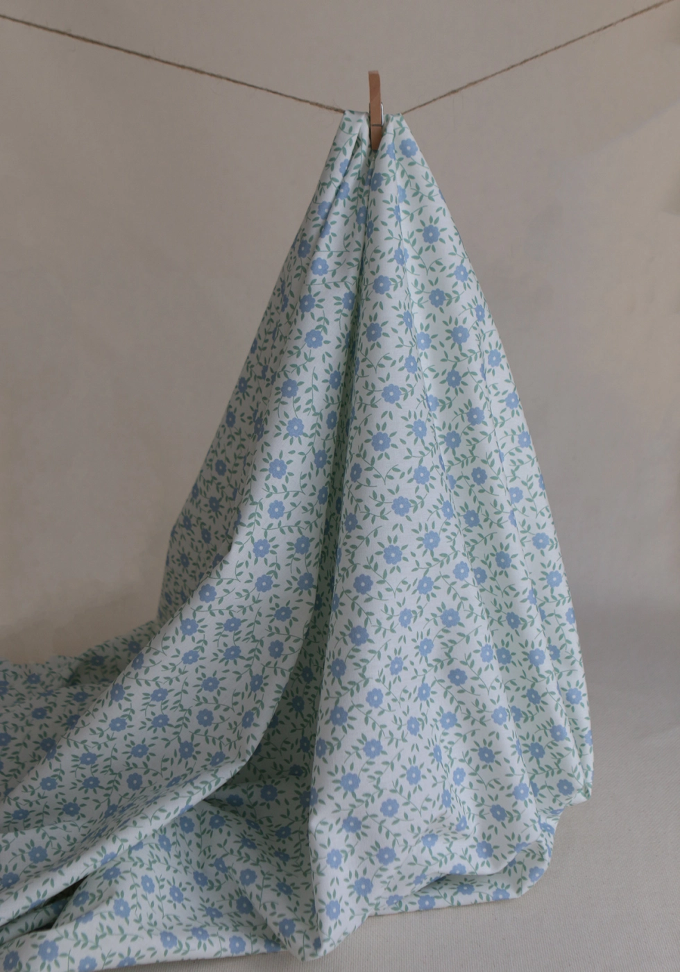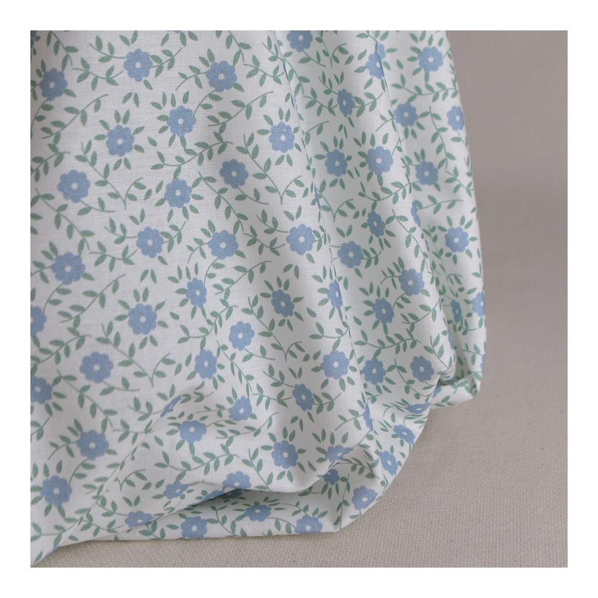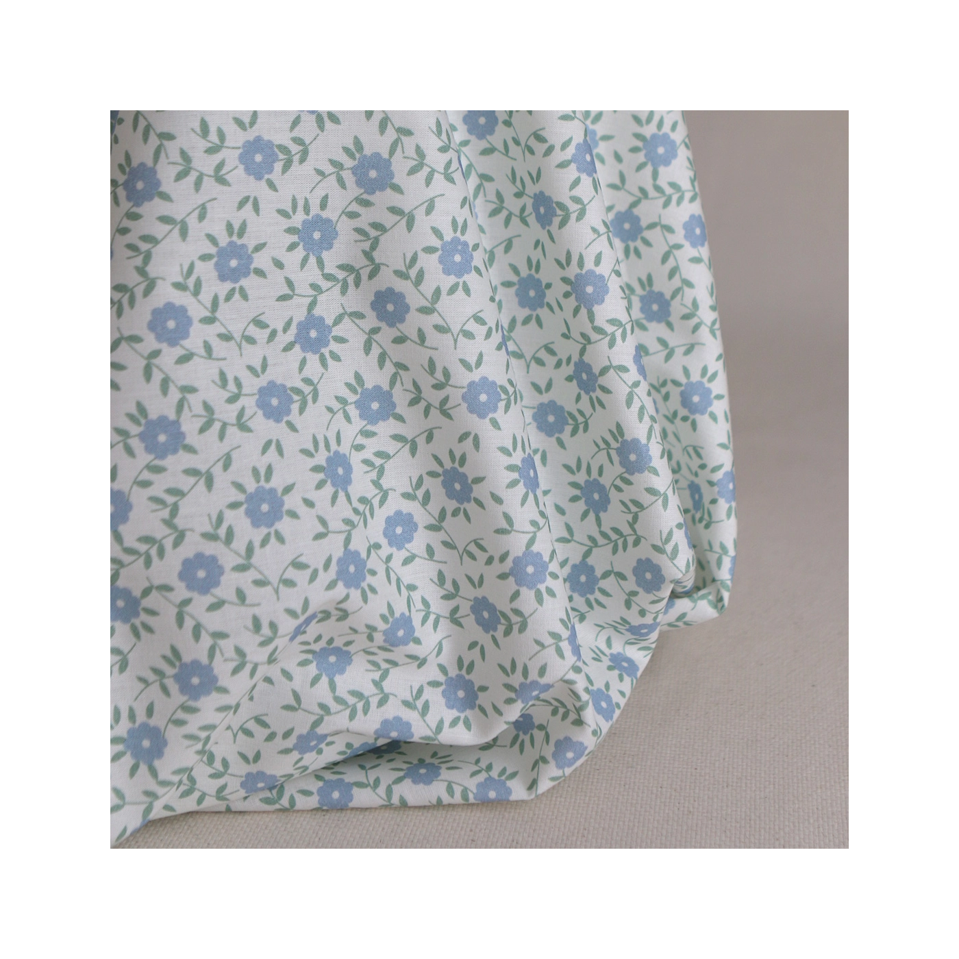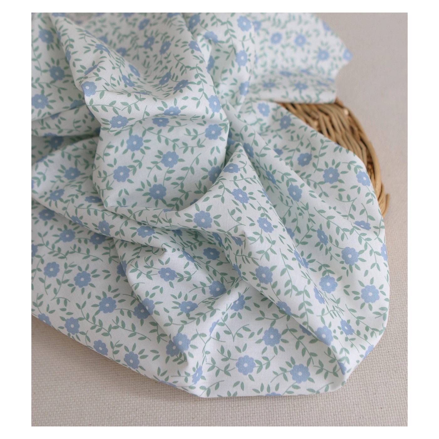Gaspard - Popeline coton BIO imprimé fleuri bleu et sauge
