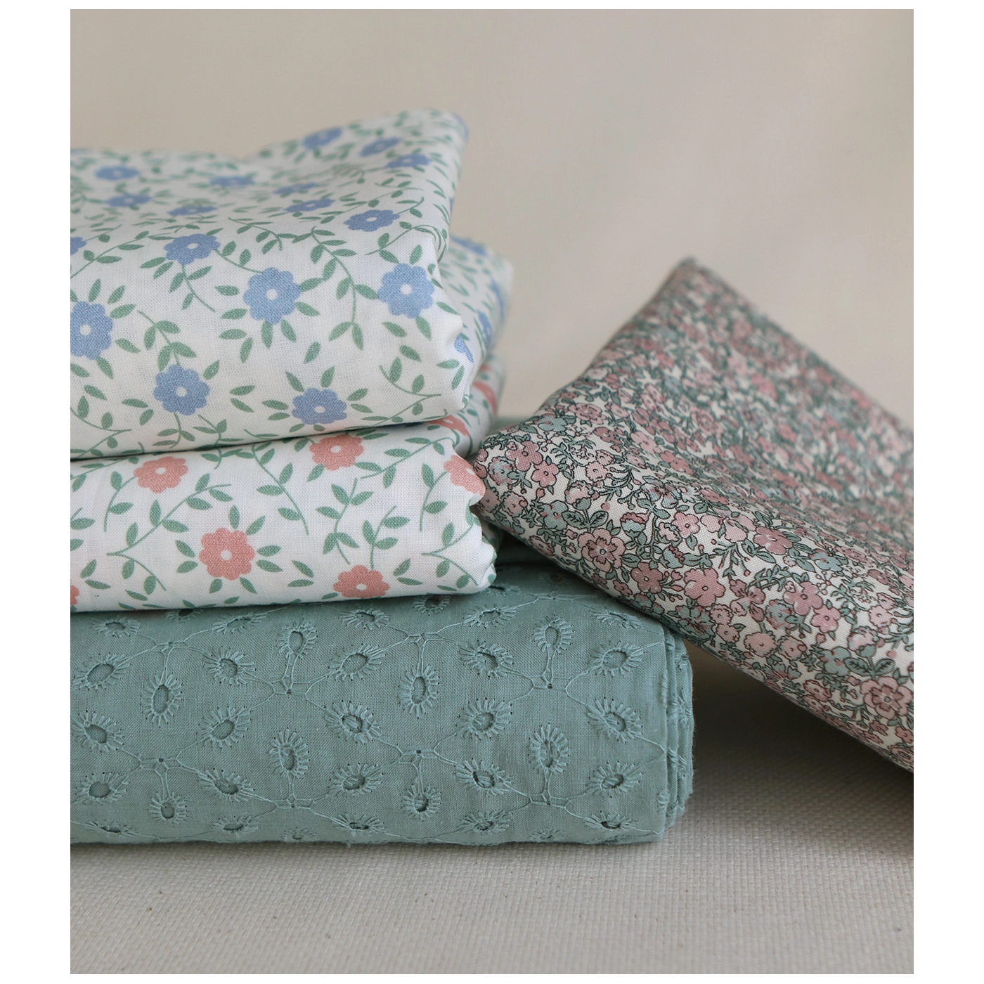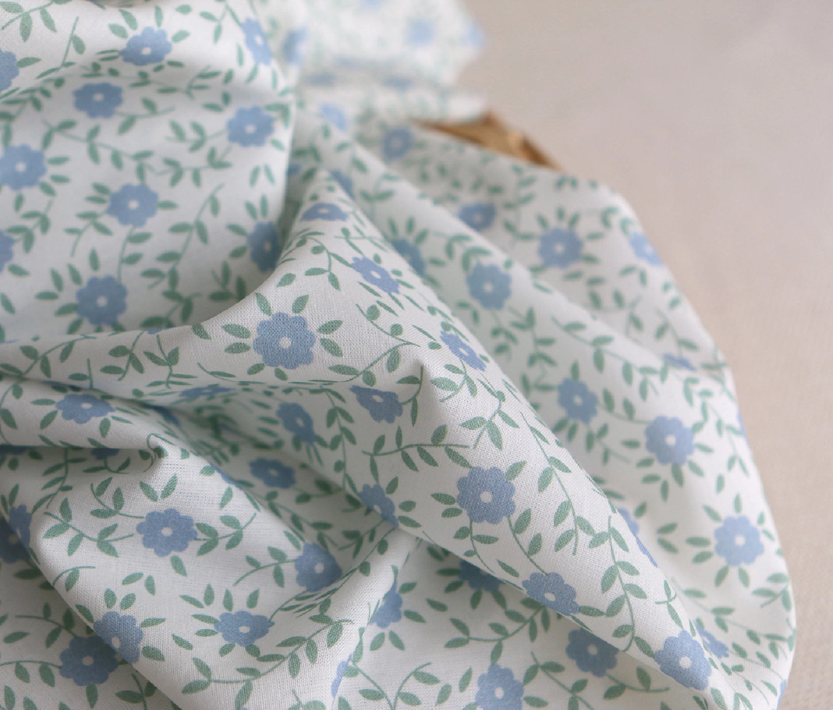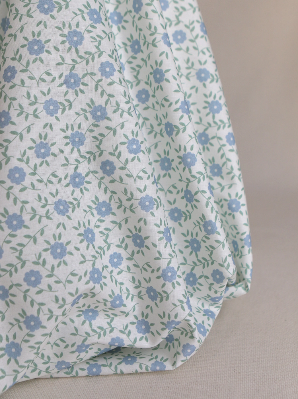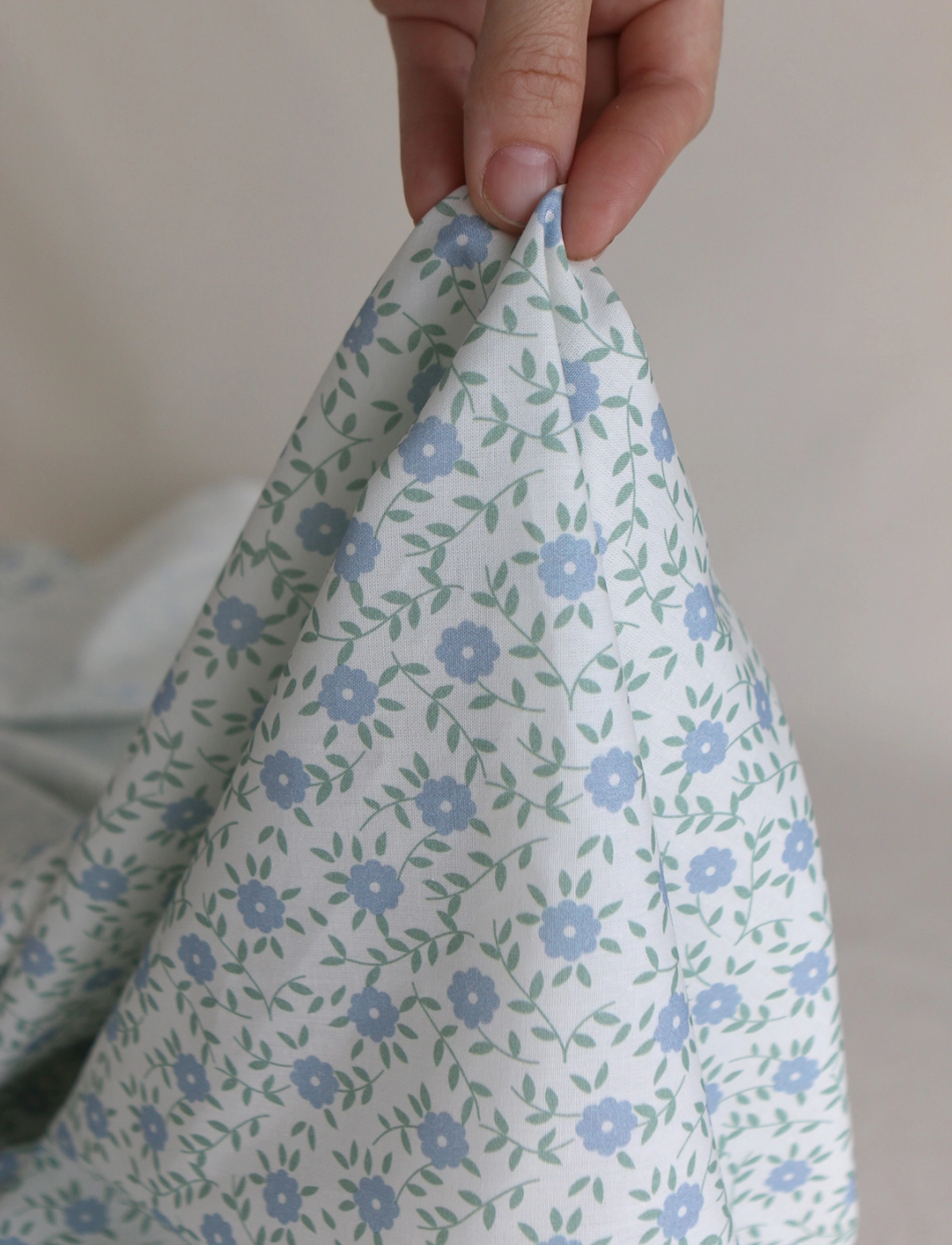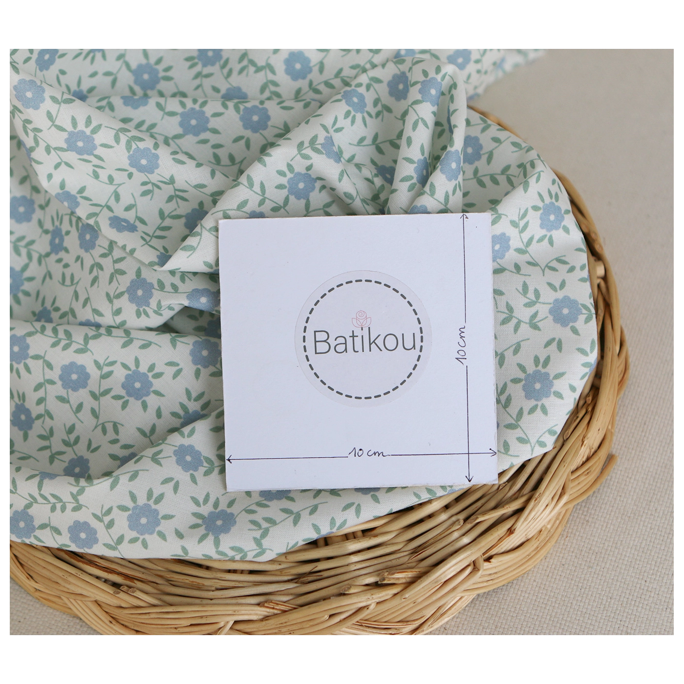Gaspard - Popeline coton BIO imprimé fleuri bleu et sauge